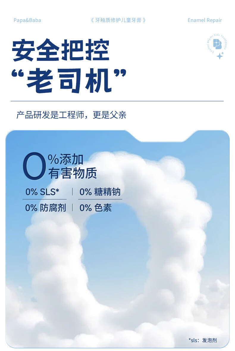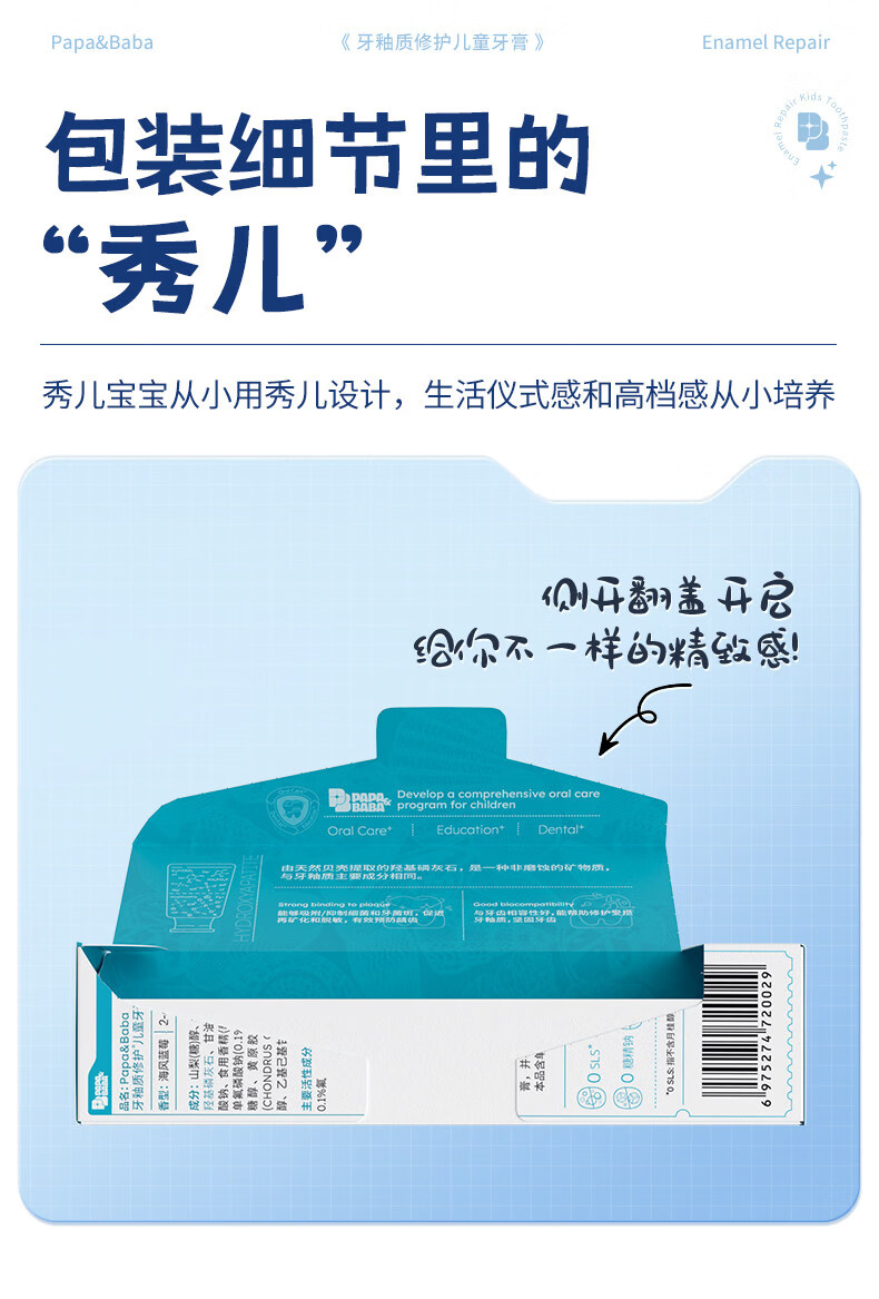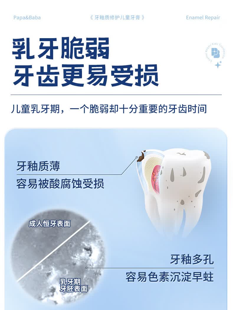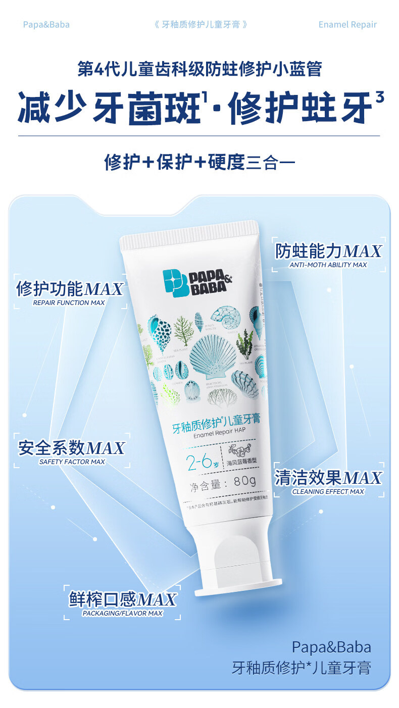 PAPA&BABA泡泡爸爸儿童牙膏修护牙釉质防蛀固齿祛黄呵护口腔护理牙膏 【共160g】2-6岁乳牙期80g*1+小样20g*4