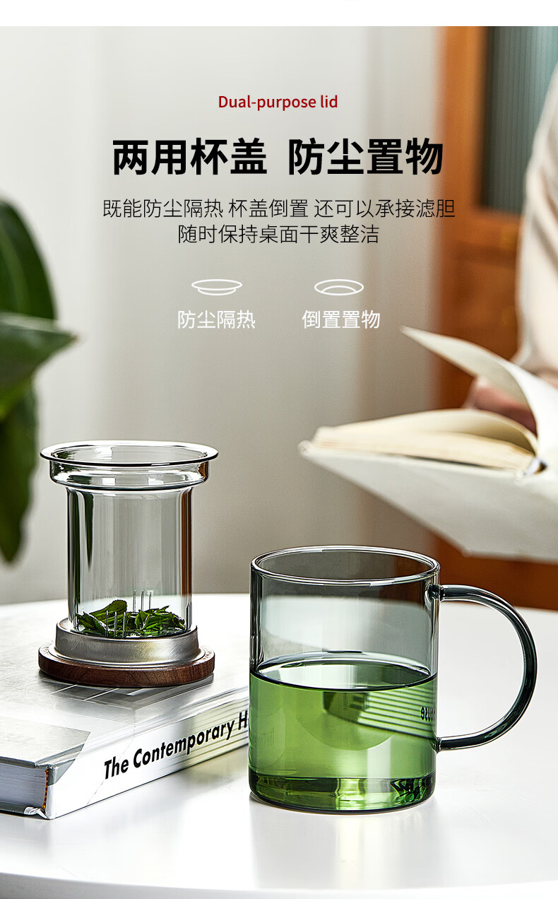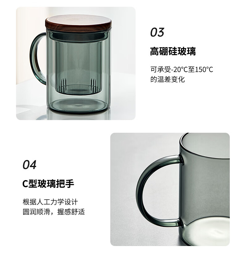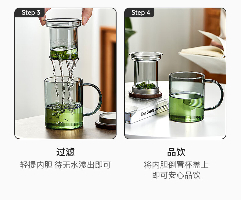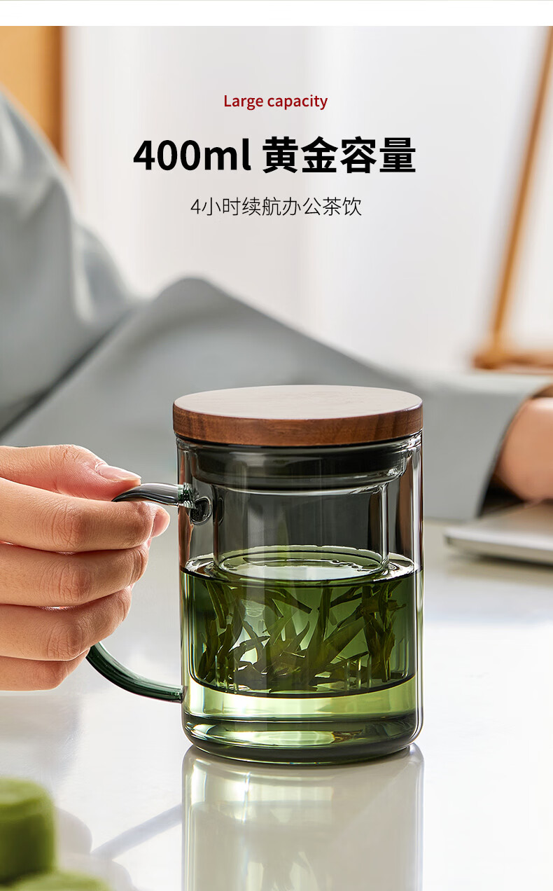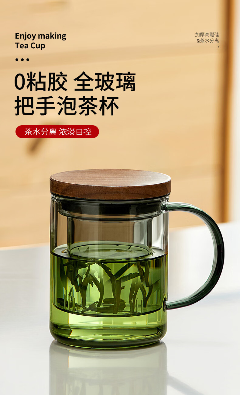 忆壶茶茶杯玻璃泡茶杯茶水分离高硼硅加厚男士高档办公室茶道绿茶杯子 400ML轻奢黑泡茶杯