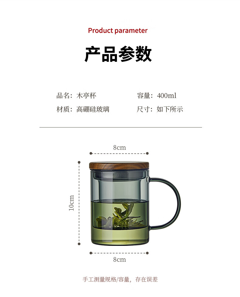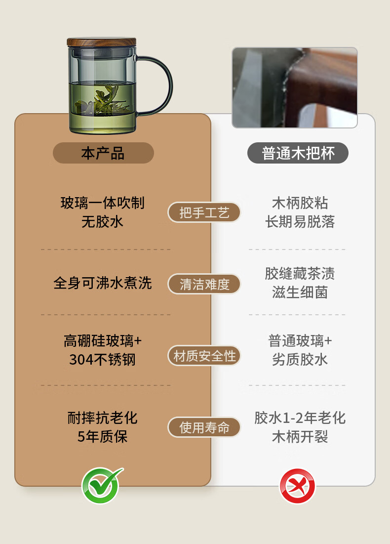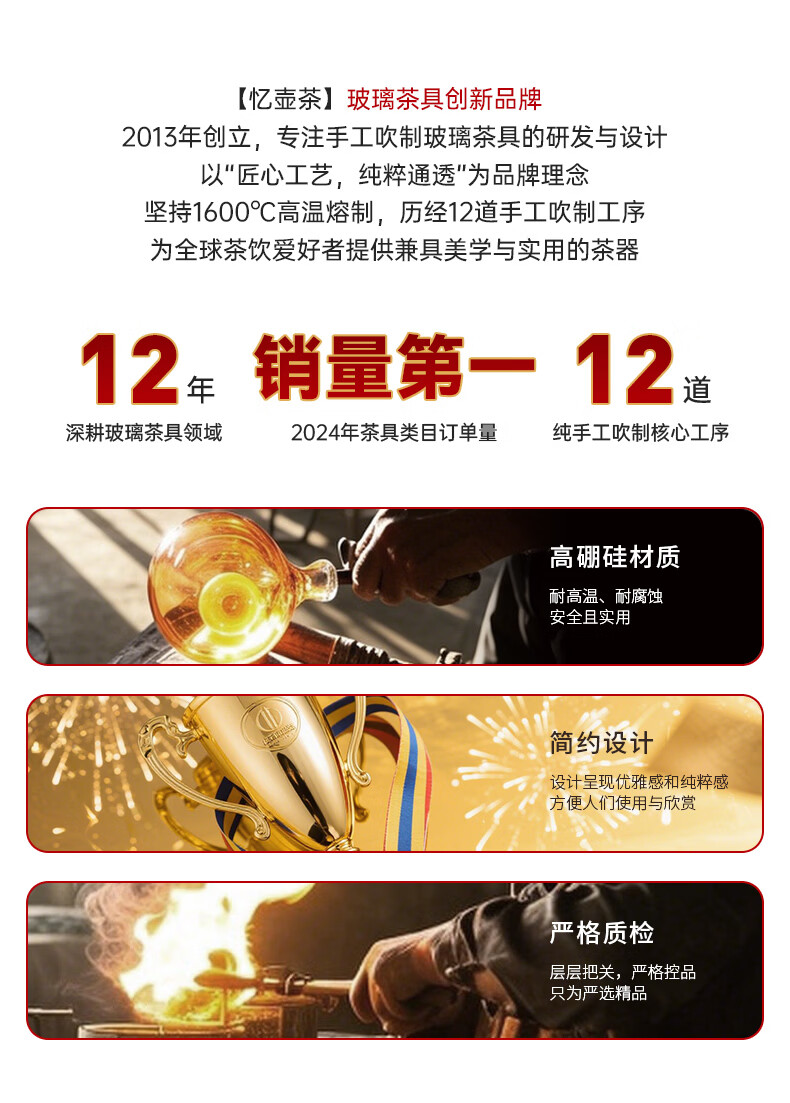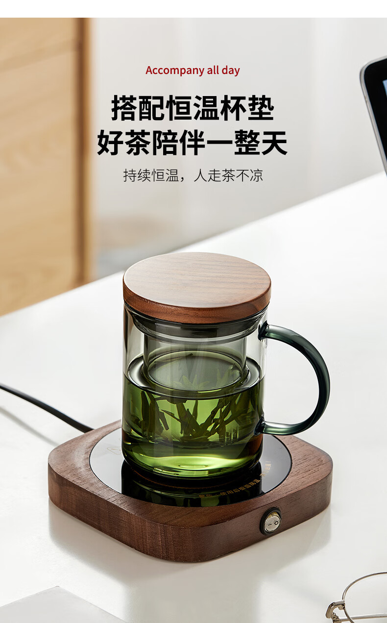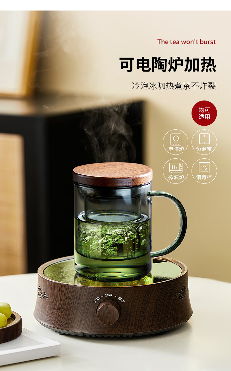 忆壶茶茶杯玻璃泡茶杯茶水分离高硼硅加厚男士高档办公室茶道绿茶杯子 400ML轻奢黑泡茶杯