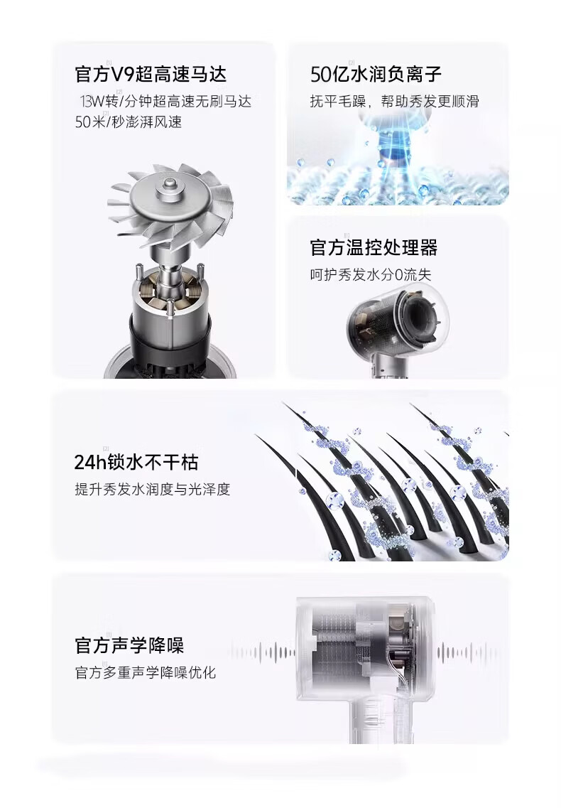 梵梦徕芬高速吹风机大功率负离子家用速干 大风力电吹风筒 中空无叶降噪护发吹风机 实用礼物 陶瓷白-五风嘴【升级版挂架】造型推荐 50亿护发负离子 | 线长1.7米
