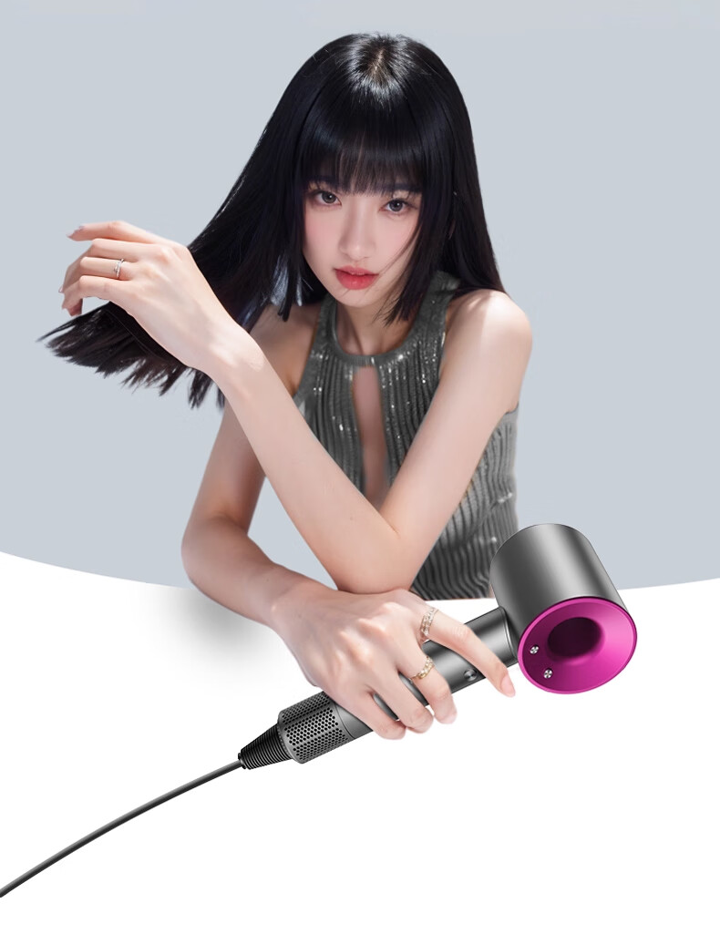 小米白系列吹风机静音发廊负离子护发家用大功率不伤发宿舍电吹风 渐变粉【1800W】大风力+双层隔热