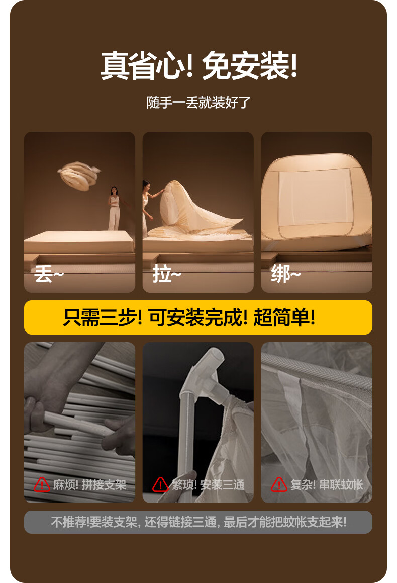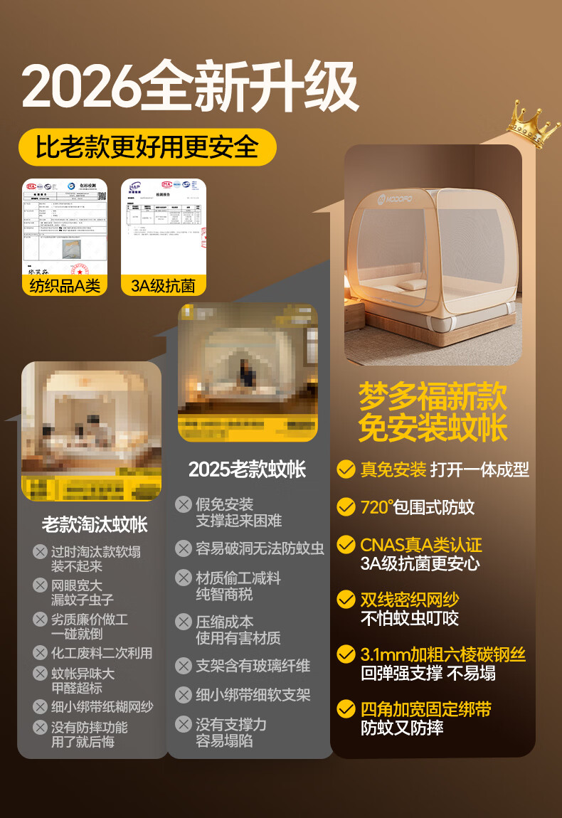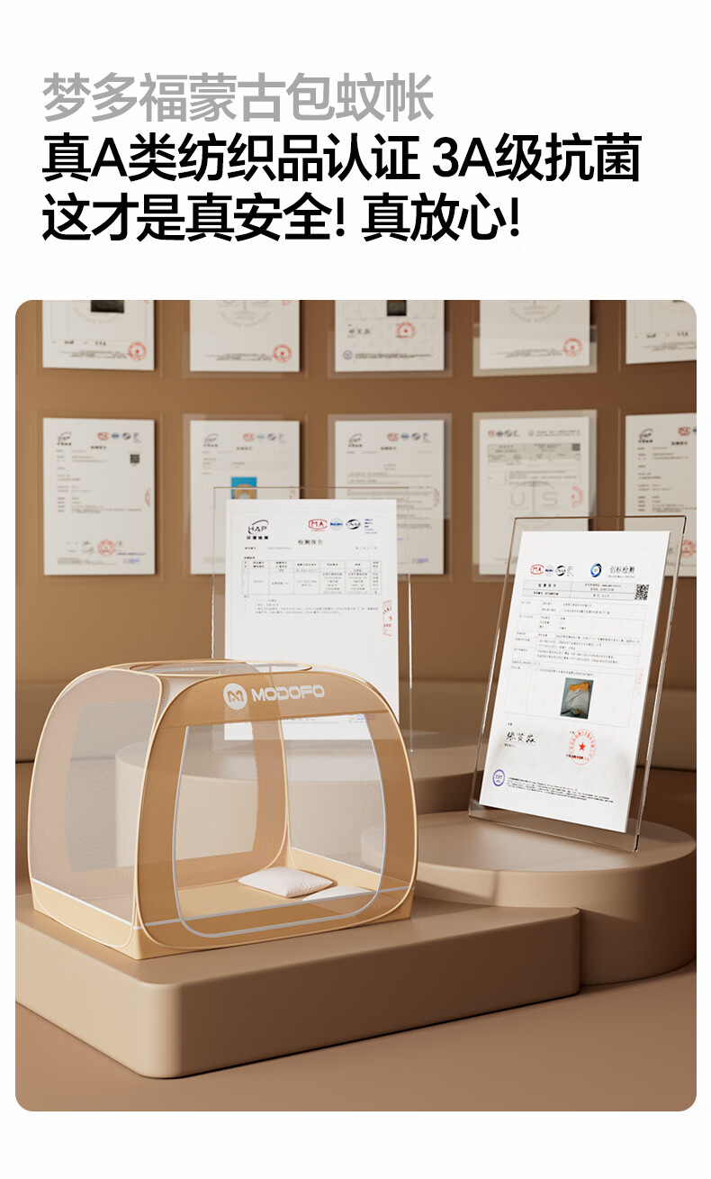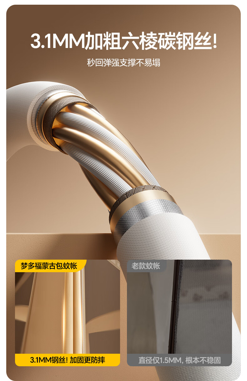 梦多福免安装蒙古包蚊帐2026新款防摔家用卧室全底婴儿全罩式床上帐篷 米黄全底·免安装丨双线超密织丨3.1mm加粗高弹碳钢丝 1.2m*2m*1.7m 一丢即开·无需安装丨真A类母婴级5A抗菌
