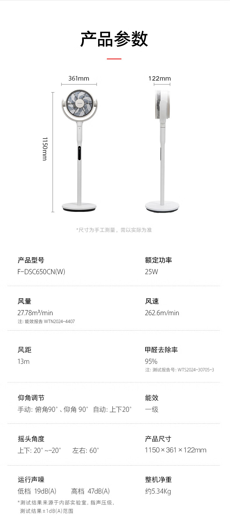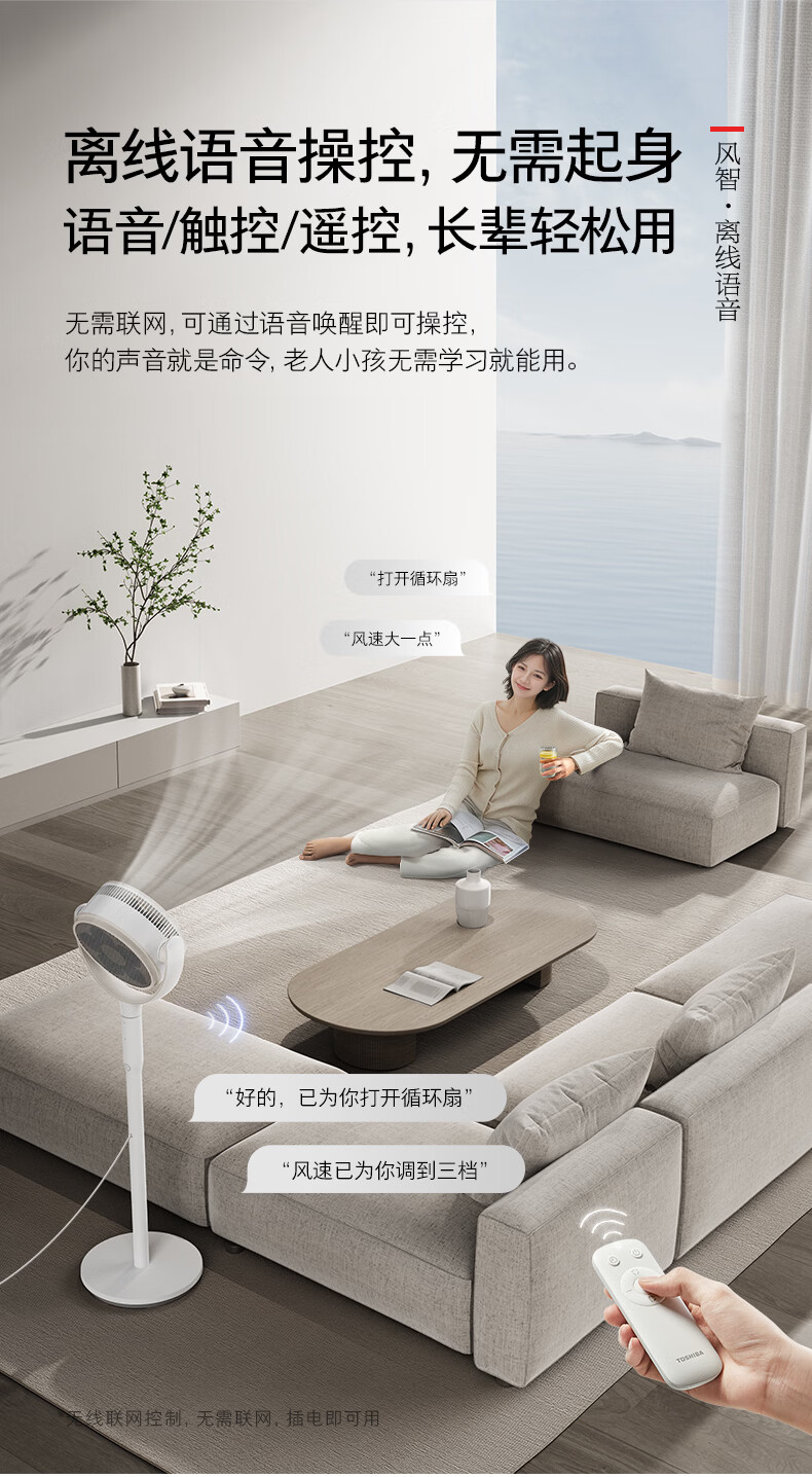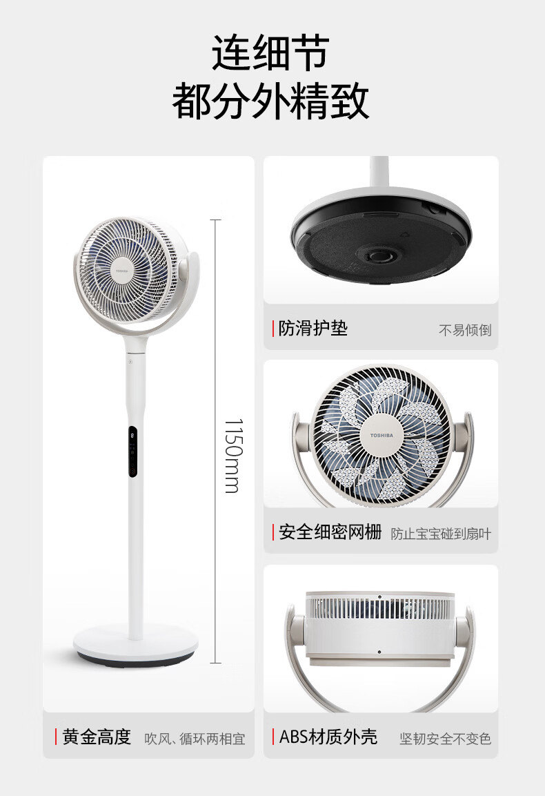 东芝(TOSHIBA)【花信风SE】电风扇落地扇直流变频电风扇轻音卧室一级能效立式空气循环扇除甲醛F-DSC650CN(W)
