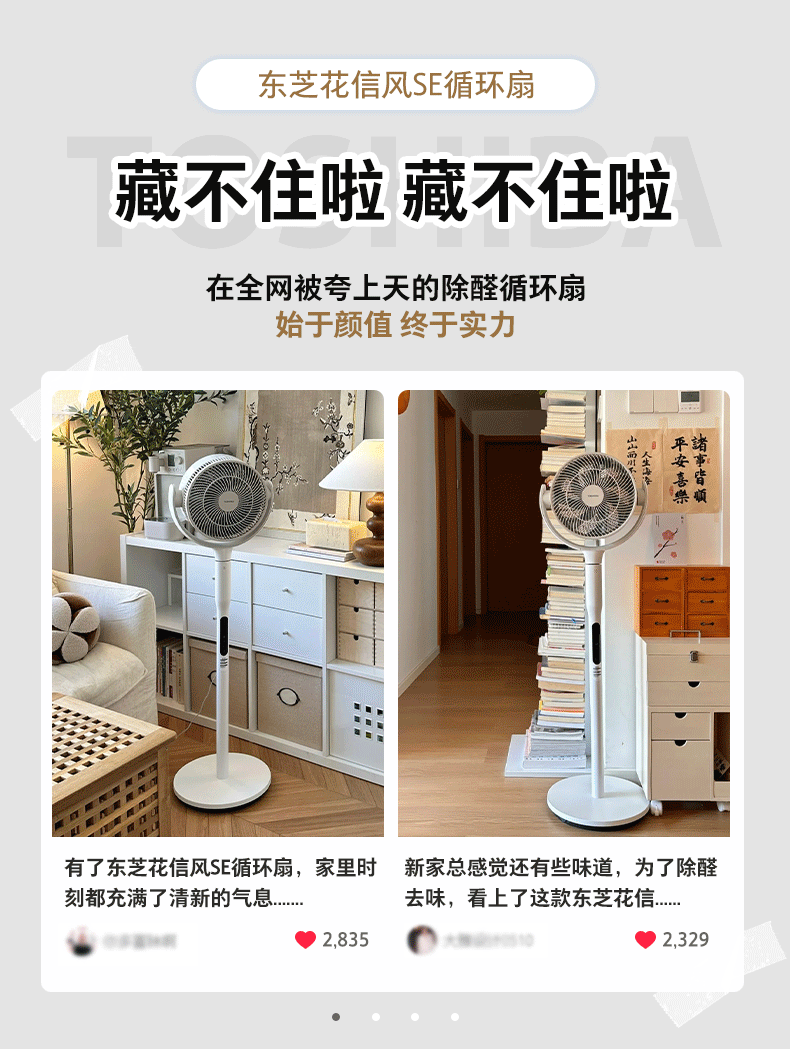 东芝(TOSHIBA)东芝【花信风】风扇空气循环扇0耗材除醛净化双扇叶卧室电风扇静音卧室超静音一级能效DSC900CN(H)