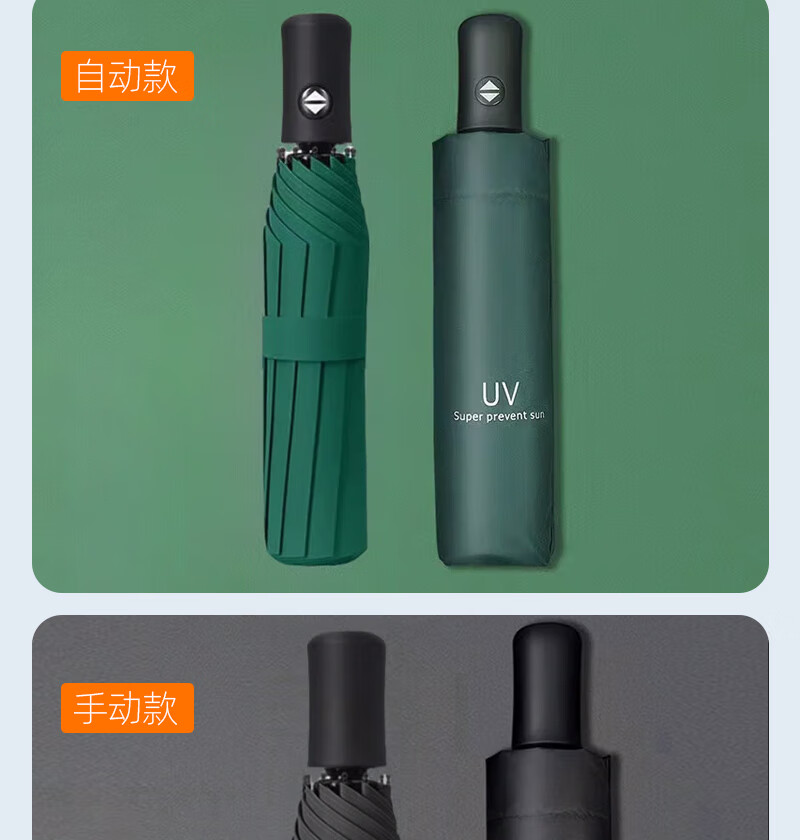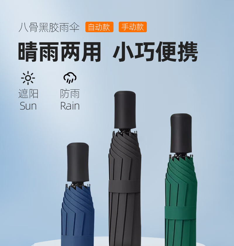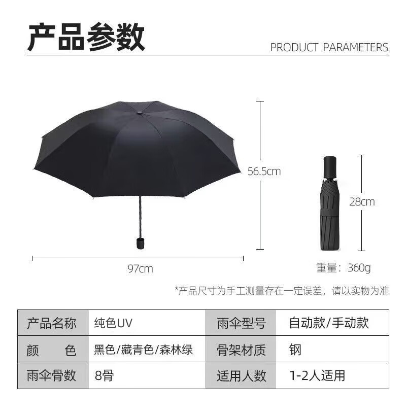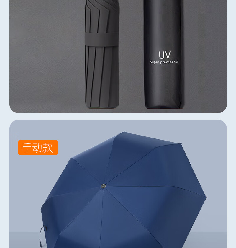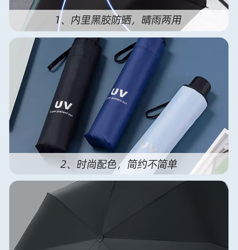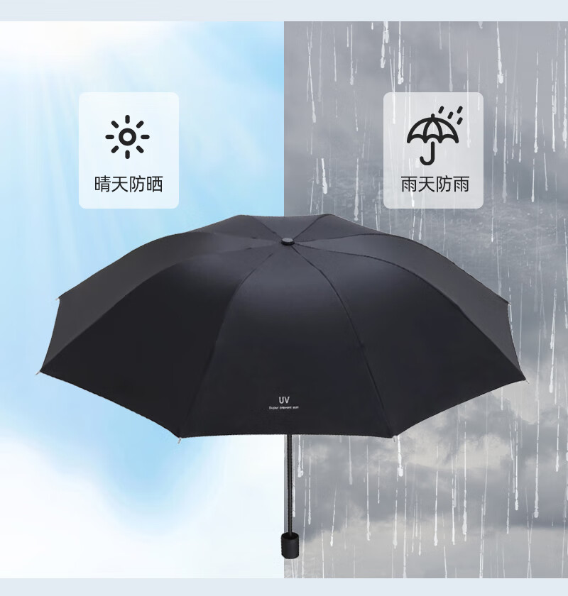 【爆款8骨雨伞】手动UV折叠黑胶防晒防外线紫遮阳晴雨两用伞 【手动款8骨】黑色UV