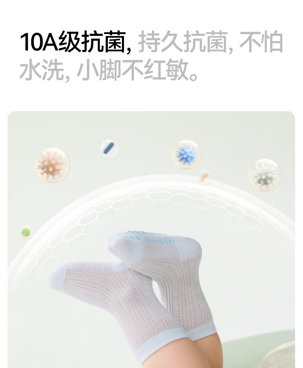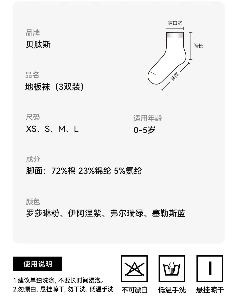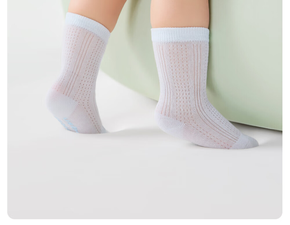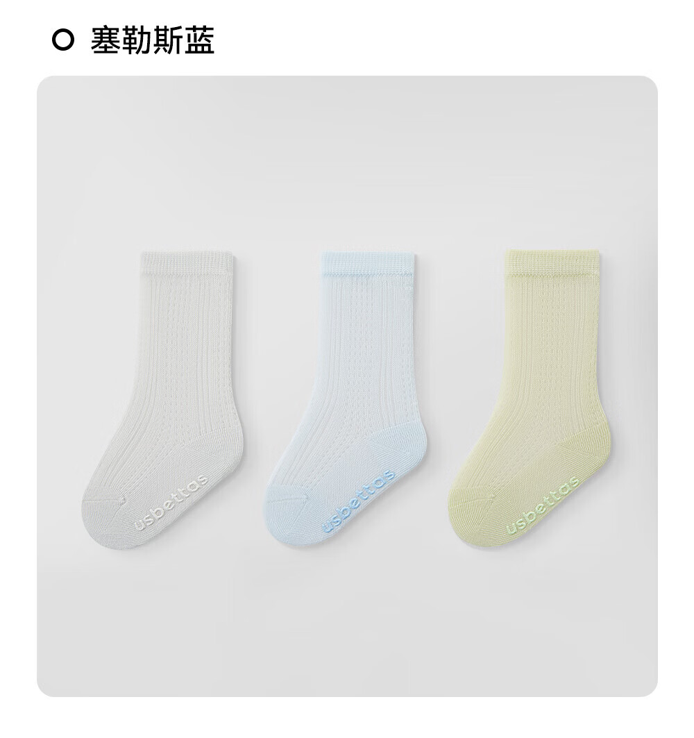 贝肽斯婴儿地板袜春夏季新生婴儿袜子室内防滑宝宝隔凉袜男女童中筒袜 塞勒斯蓝 3双 1-3岁 【适合脚长12-14cm】