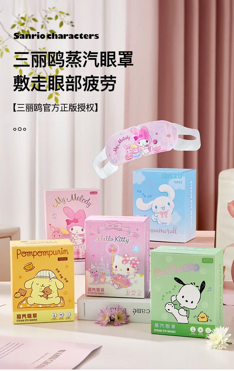 MARSICA三丽鸥蒸汽眼罩叶黄素儿童学生热敷舒缓眼疲劳护眼睡眠遮光眼贴 5盒50片【全家福超值装】