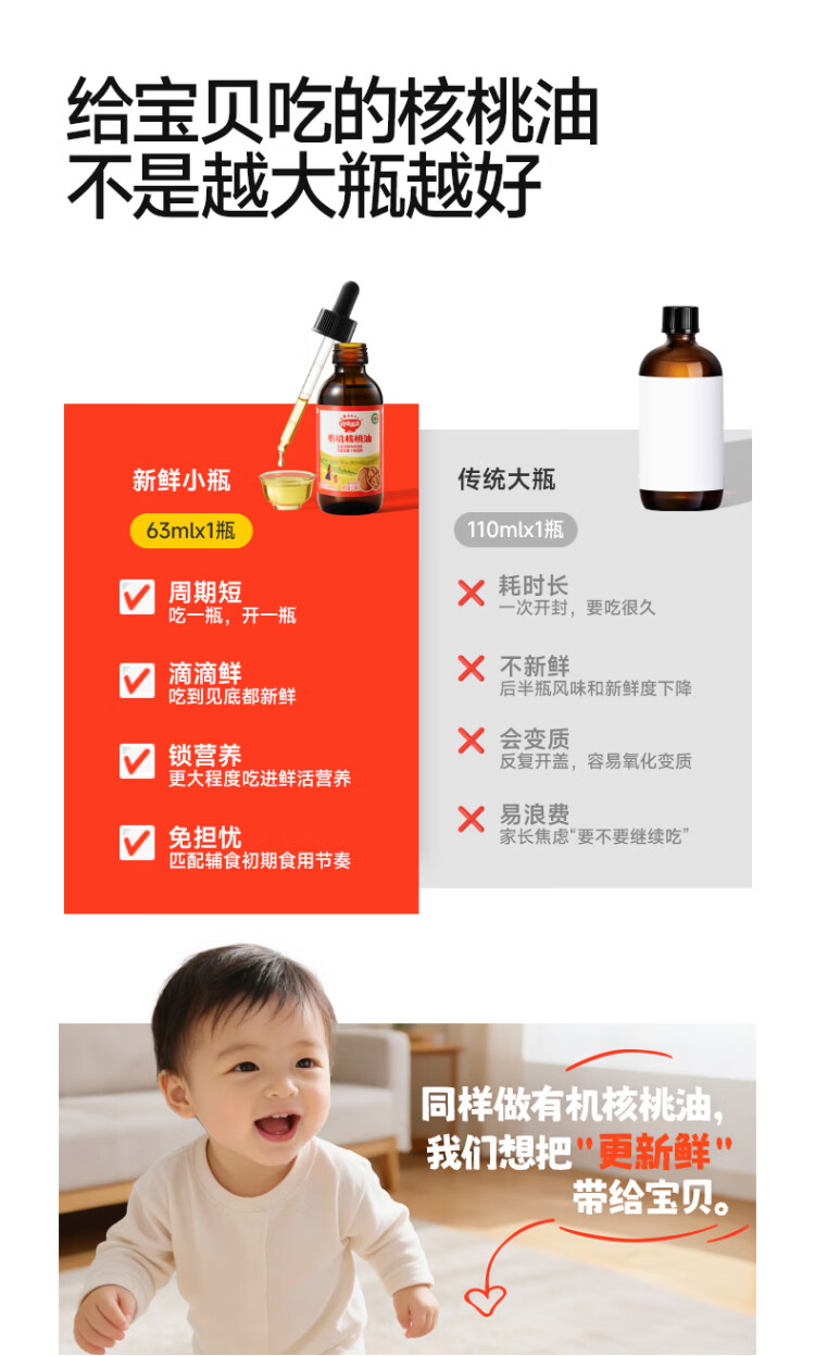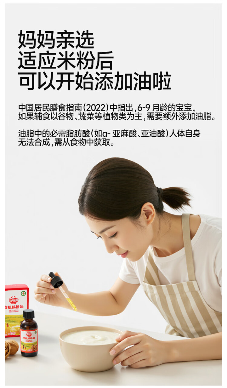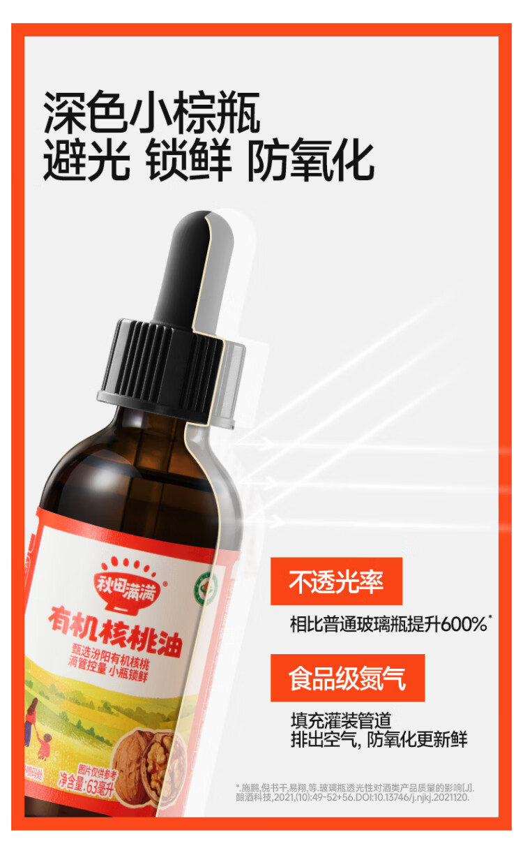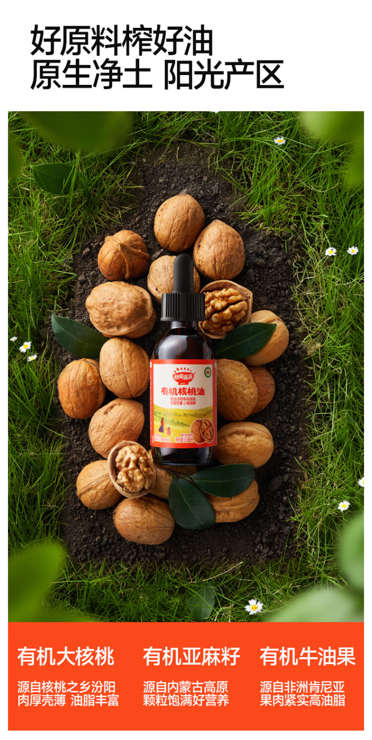 秋田满满有机核桃油 儿童核桃油牛油果油亚麻籽食用油-享婴儿营养食谱 有机核桃油63mL