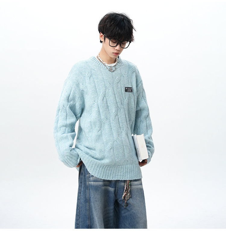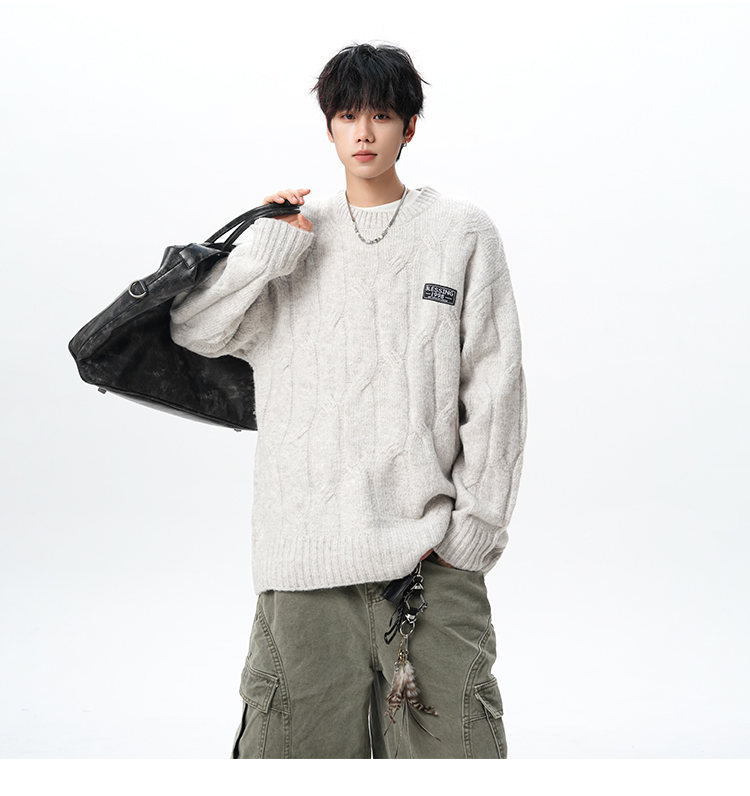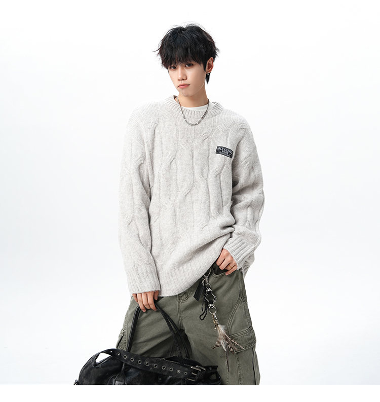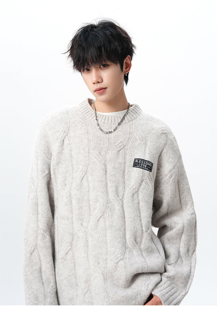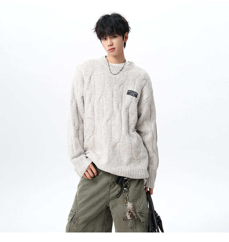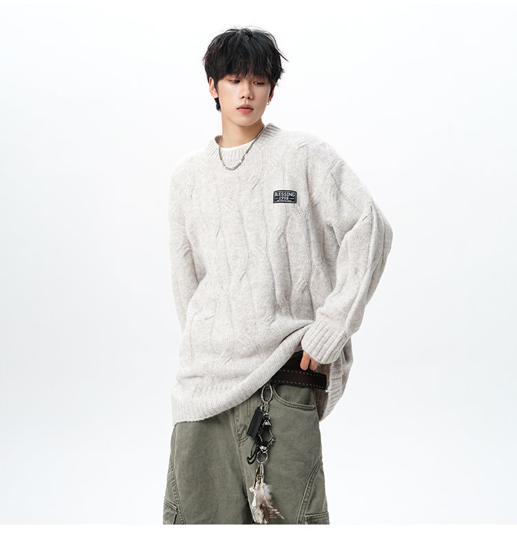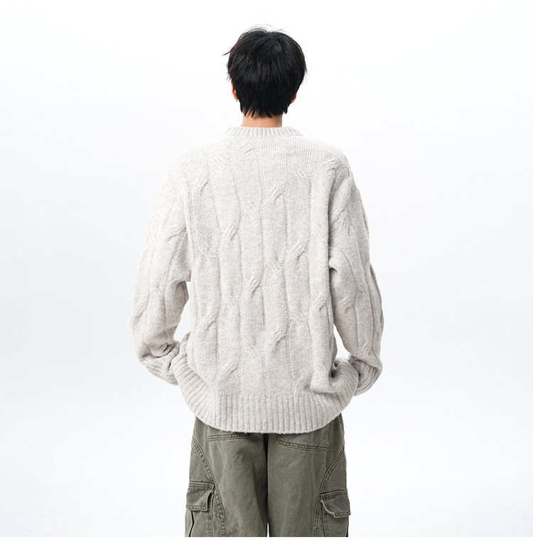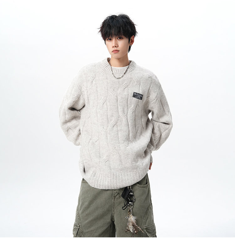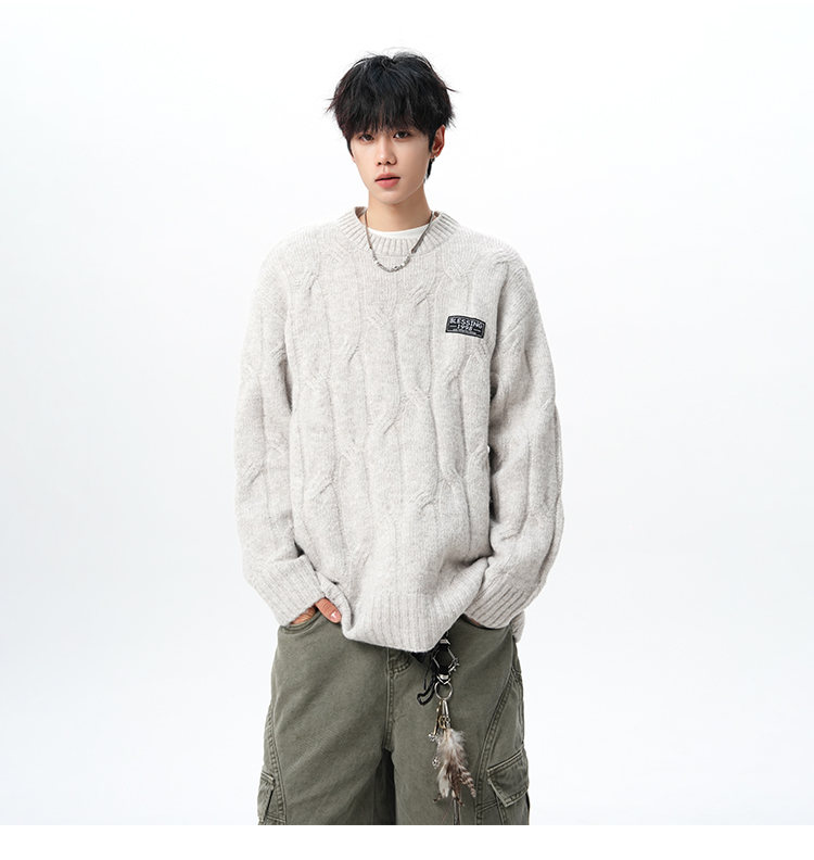 NEW OR MODE复古慵懒风麻花毛衣男女冬季新款加绒保暖宽松情侣休闲羊毛打底衫 米色 M 【建议90-110斤】