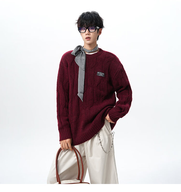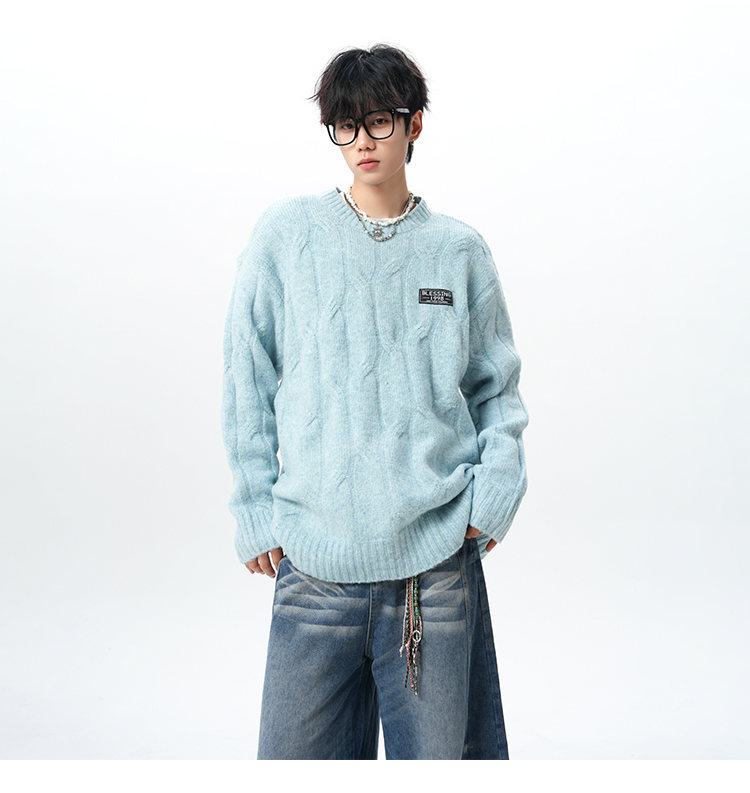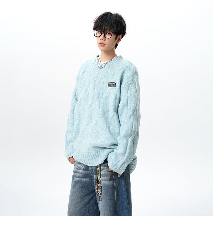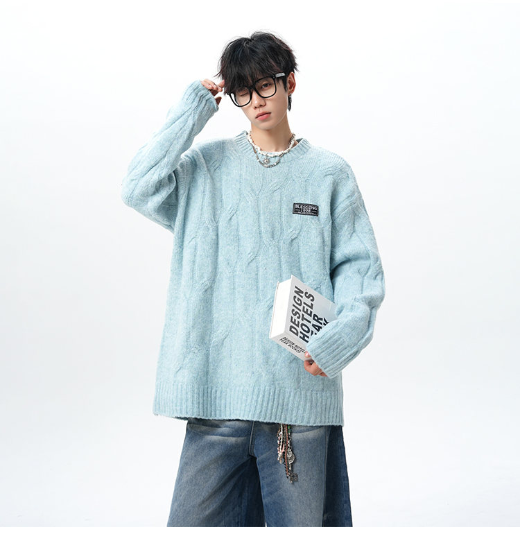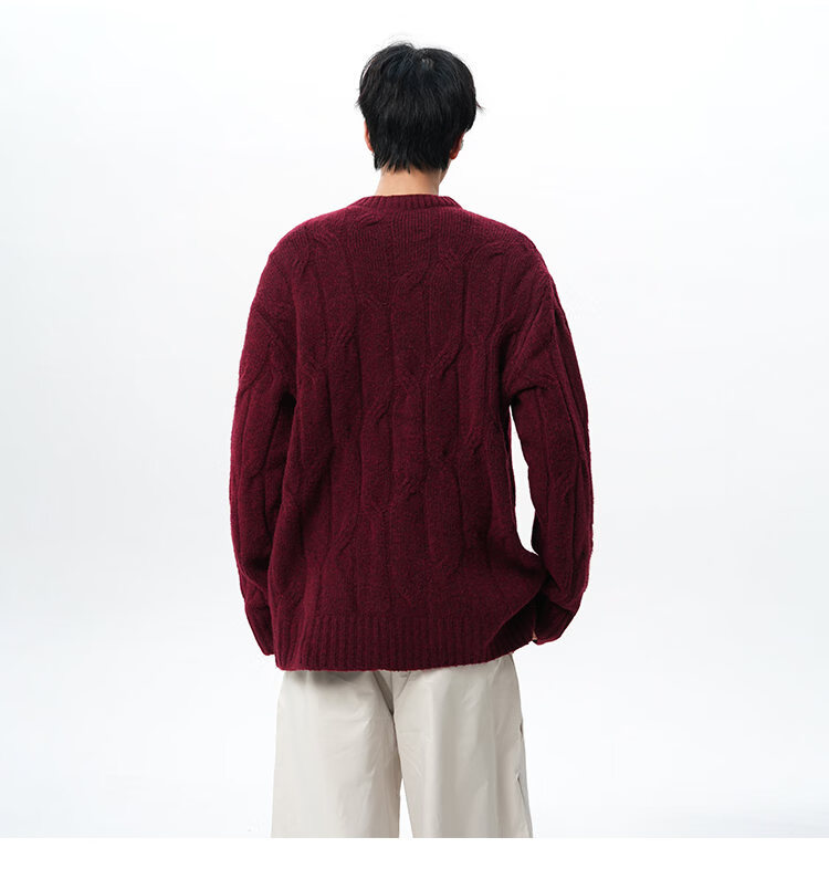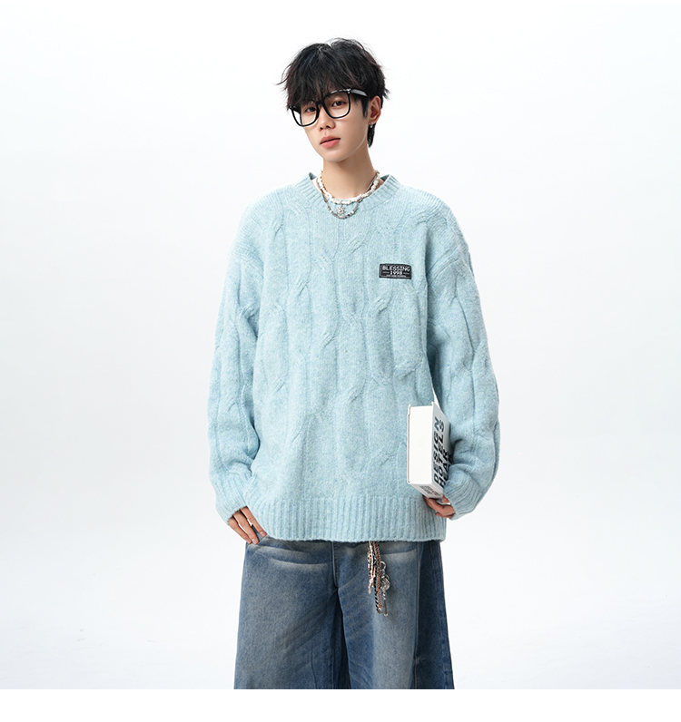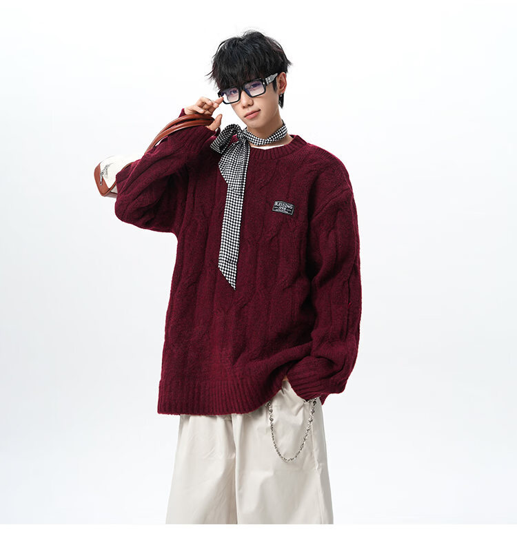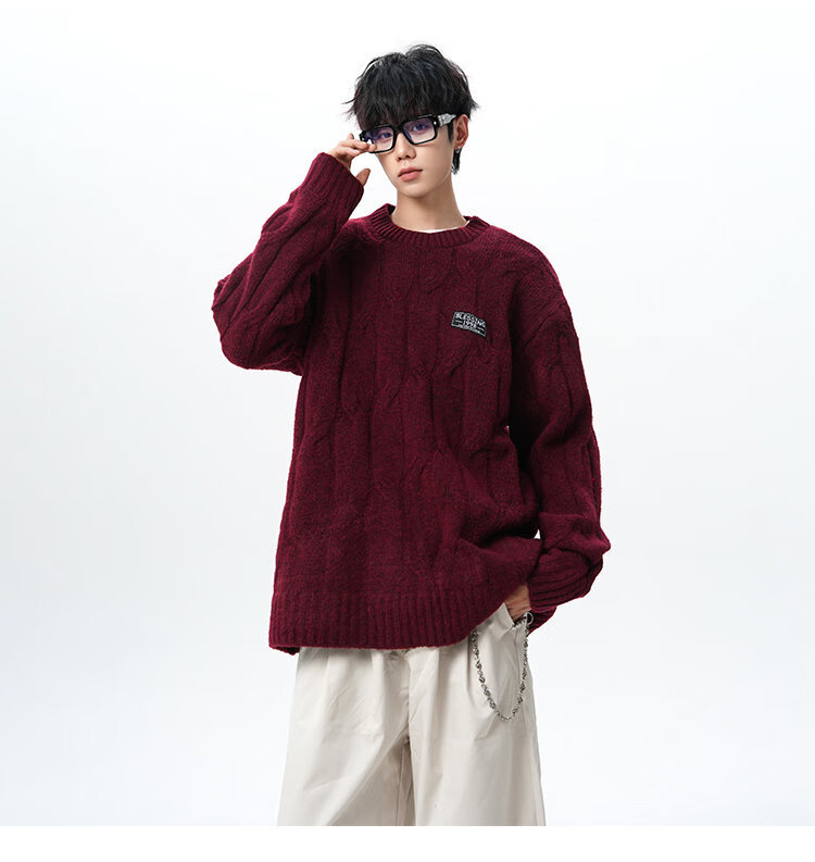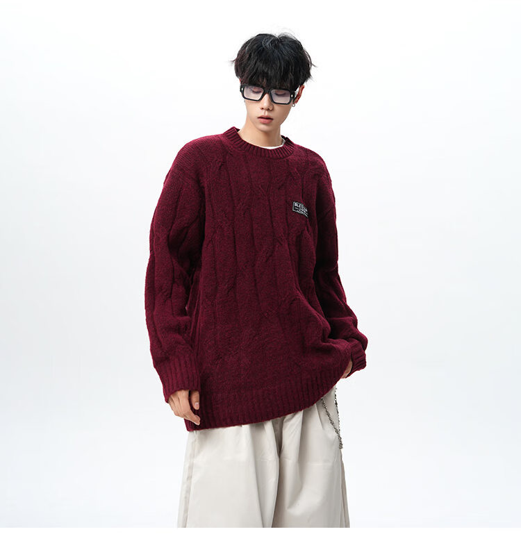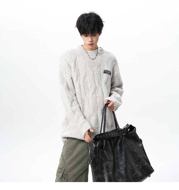 NEW OR MODE复古慵懒风麻花毛衣男女冬季新款加绒保暖宽松情侣休闲羊毛打底衫 米色 M 【建议90-110斤】