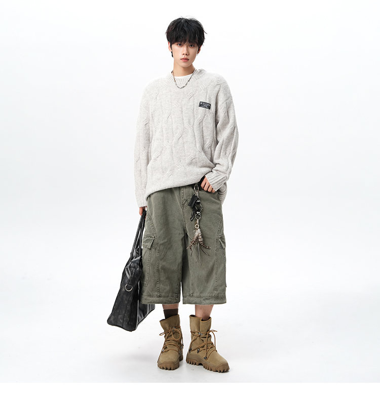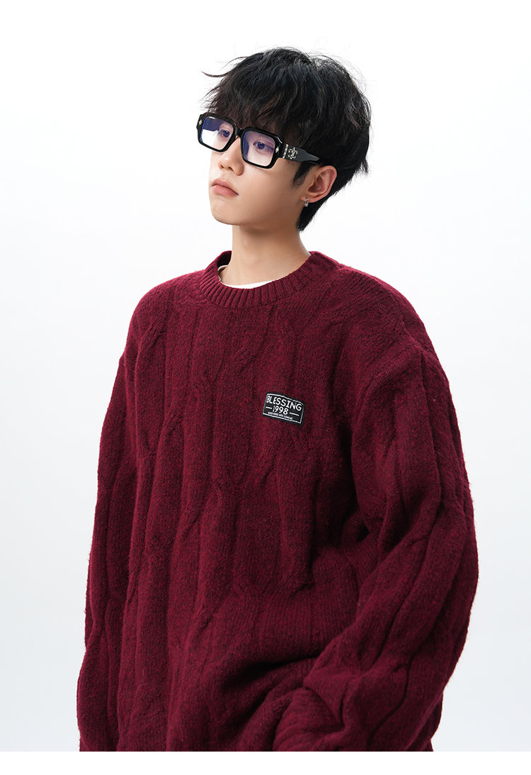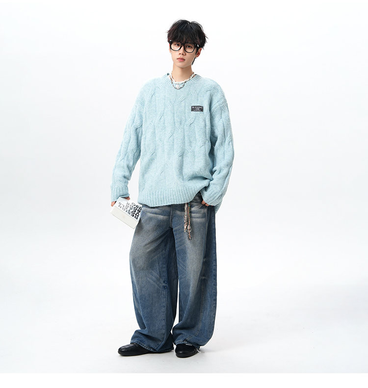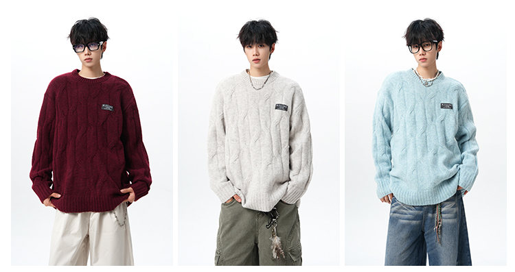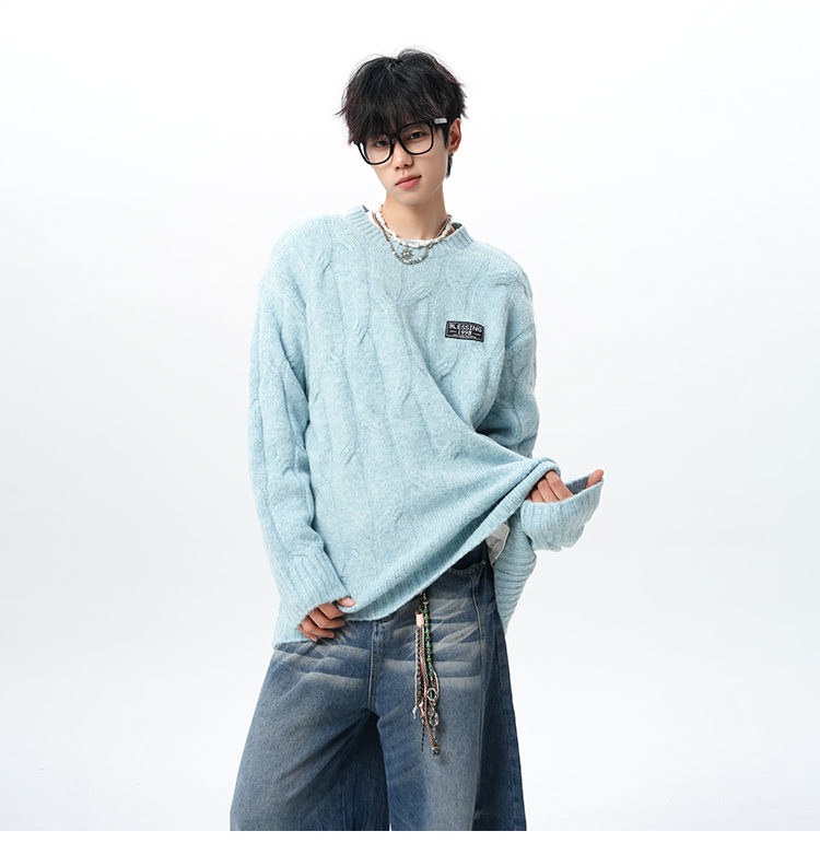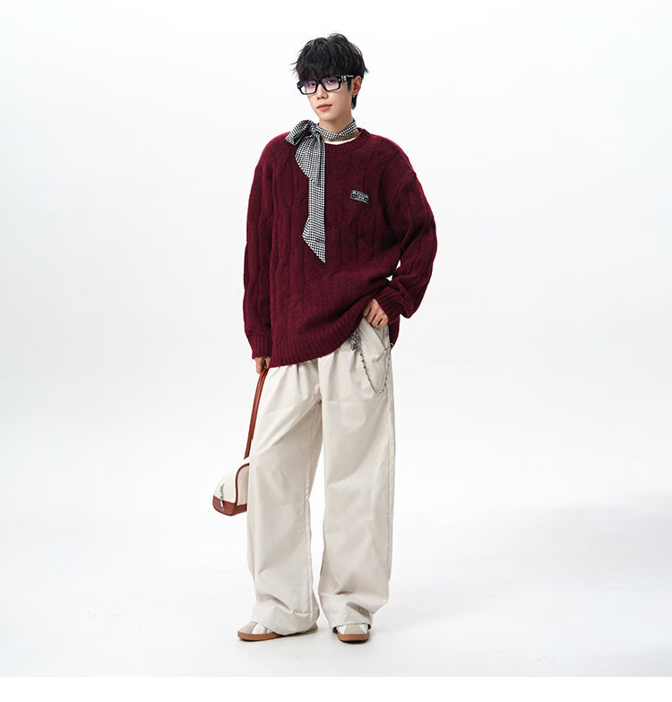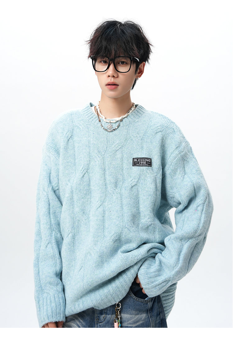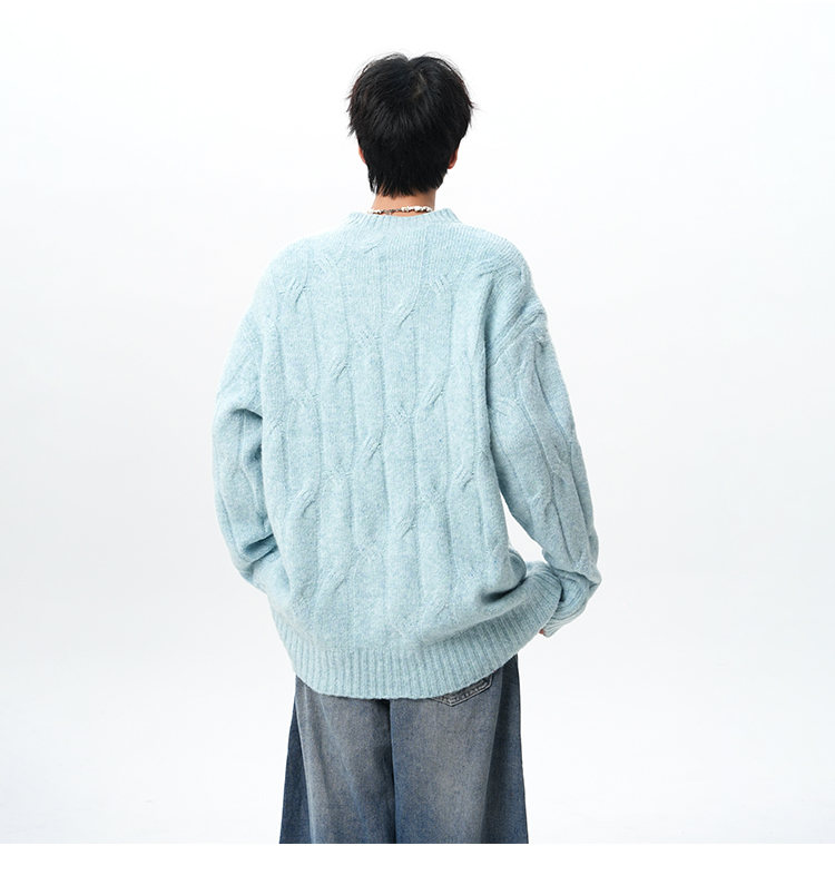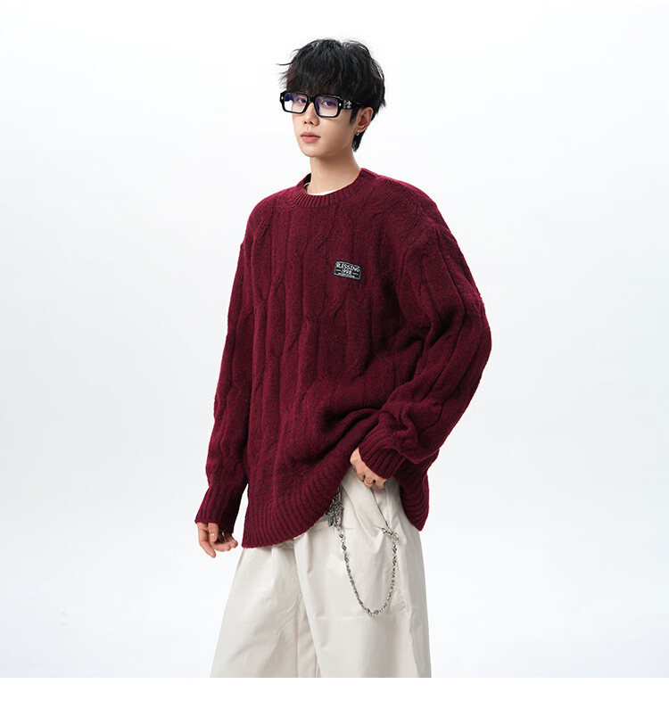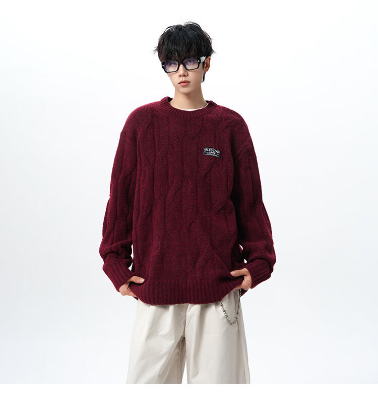 NEW OR MODE复古慵懒风麻花毛衣男女冬季新款加绒保暖宽松情侣休闲羊毛打底衫 米色 M 【建议90-110斤】