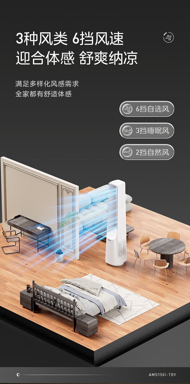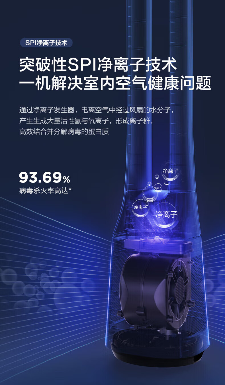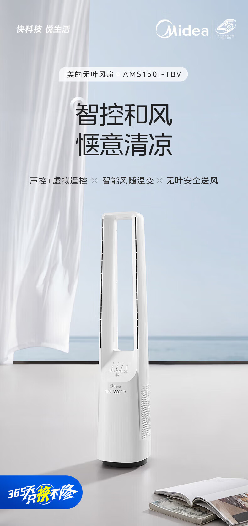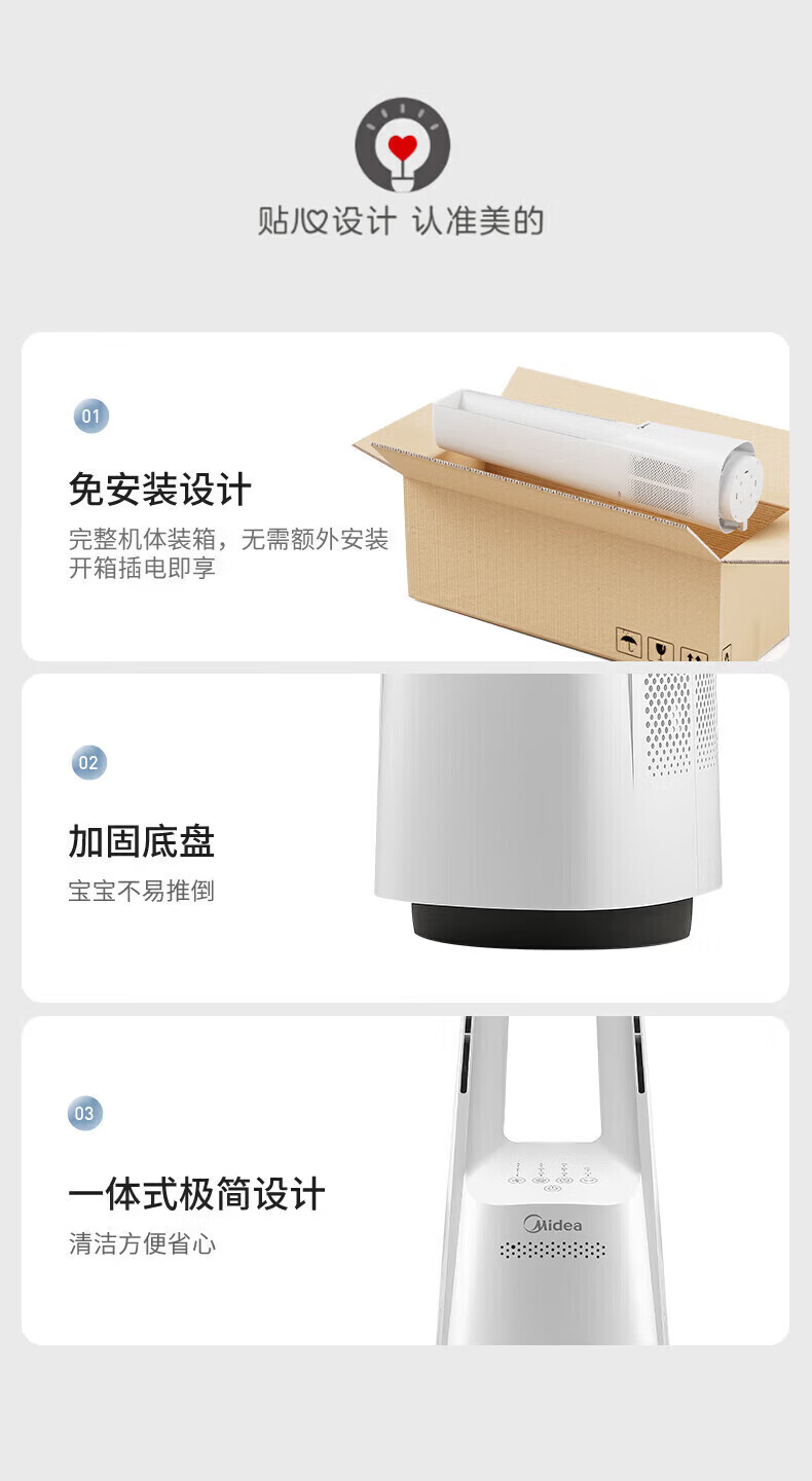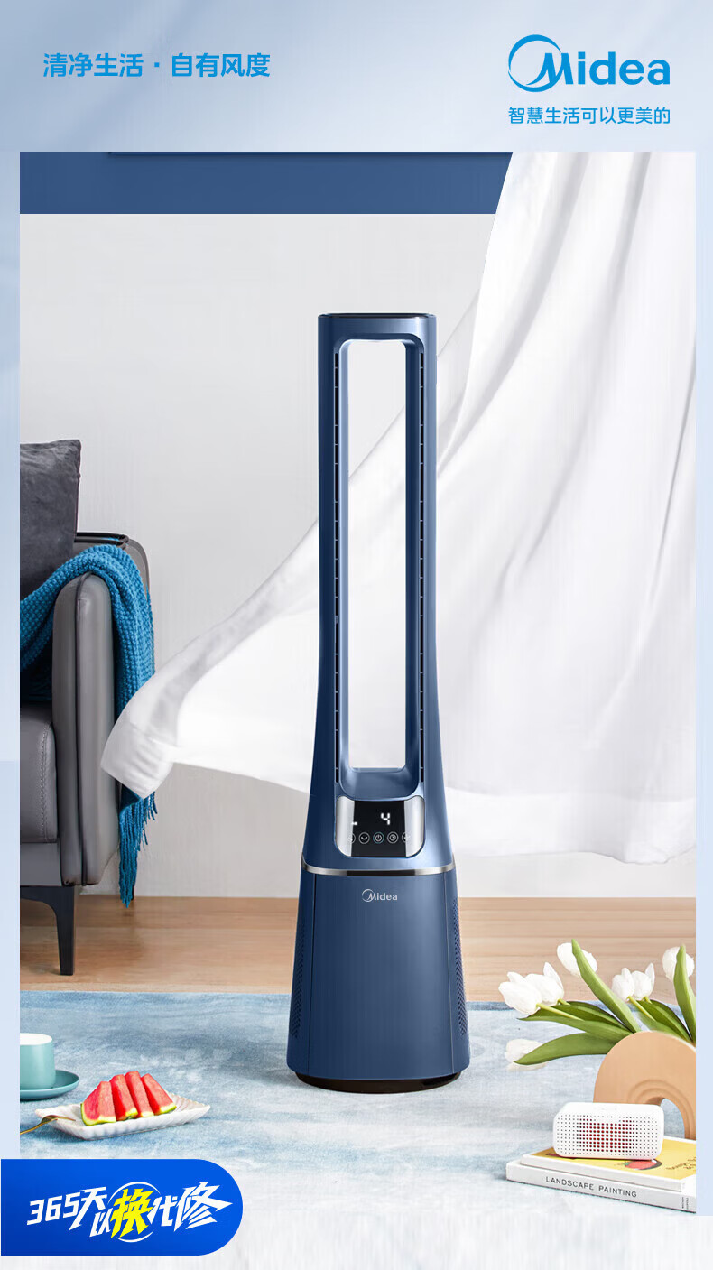 美的(Midea)无叶风扇家用电风扇智能落地扇卧室办公室轻音风随温变定时立式落地塔扇家电一体机APP遥控智控 【白色语音遥控款】7h定时 风随温变