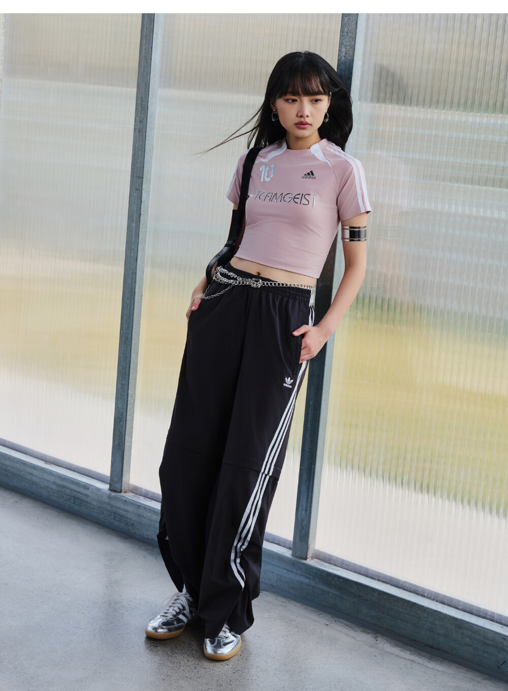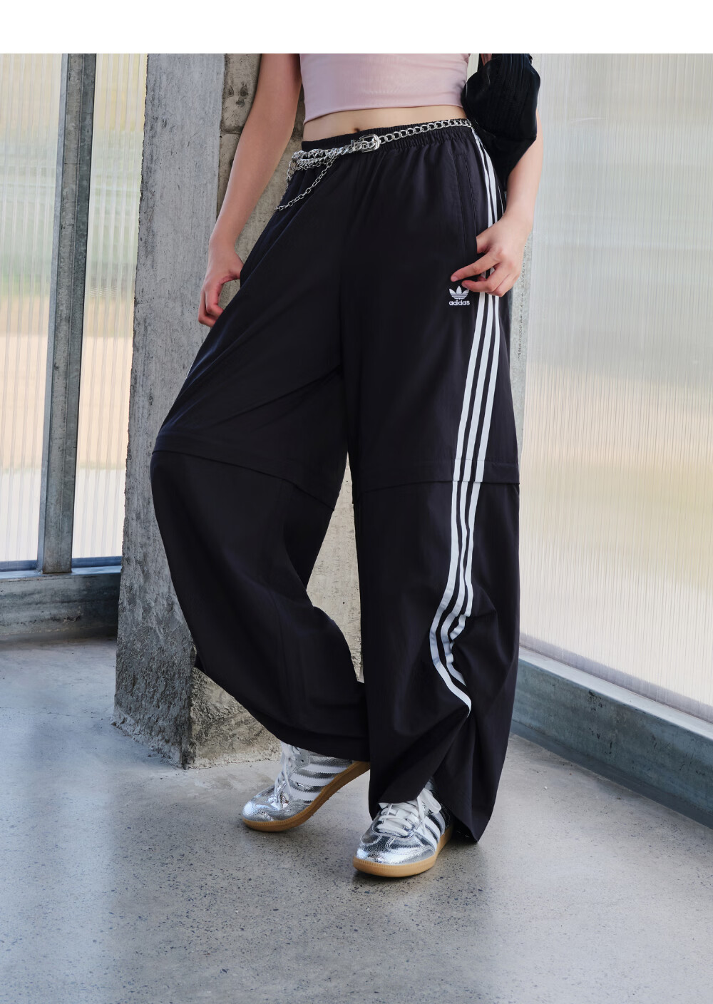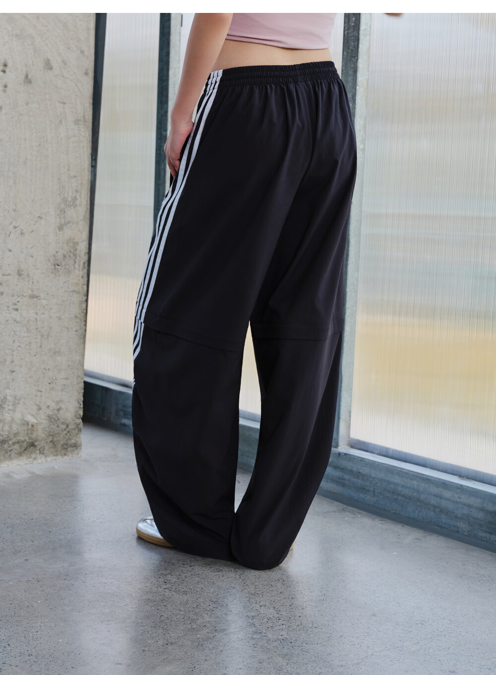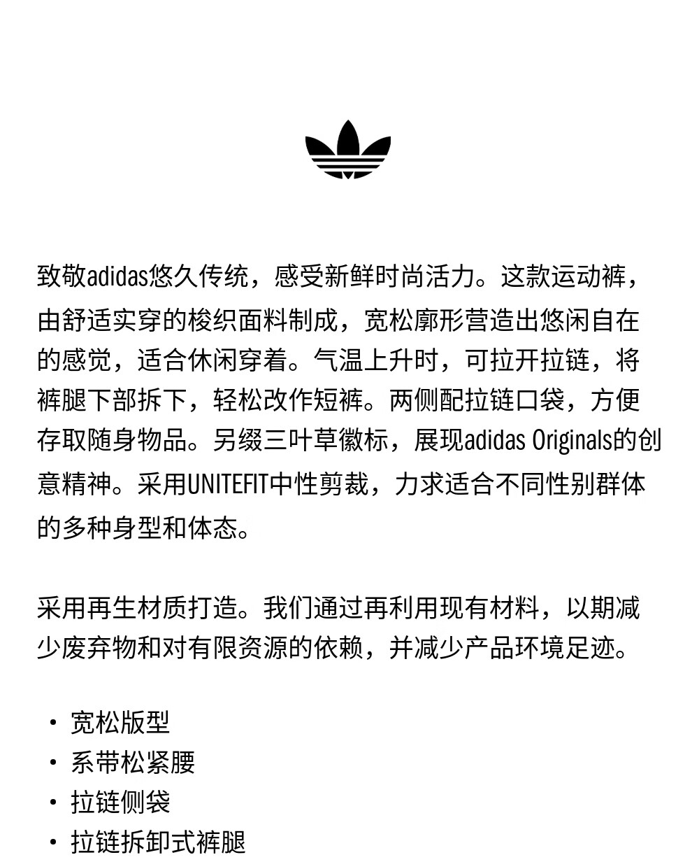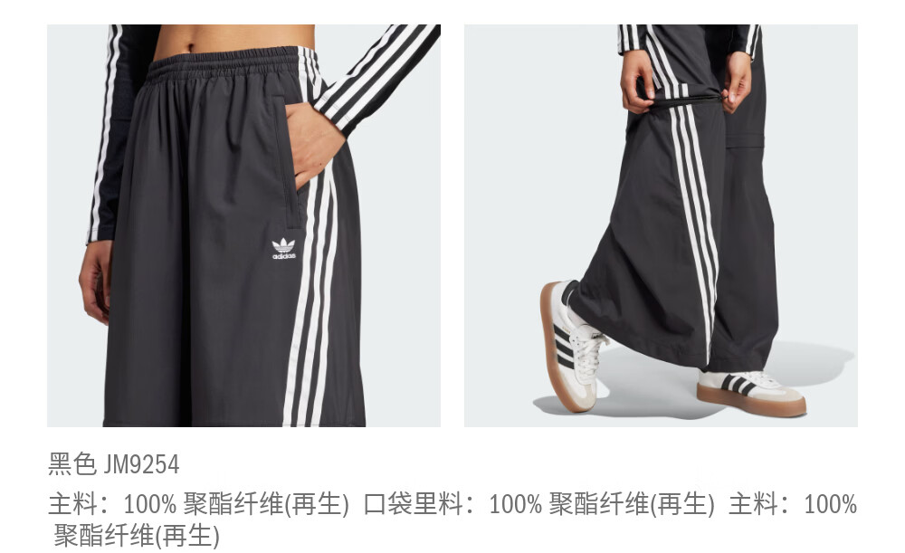 adidas经典宽松可拆卸运动裤扭扭裤女装阿迪达斯官方三叶草 黑色 S