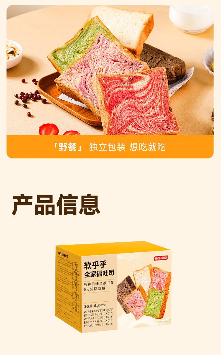 京东京造厚切吐司1kg10片黄油红豆牛乳手撕面包整箱学生早餐代餐零食营养
