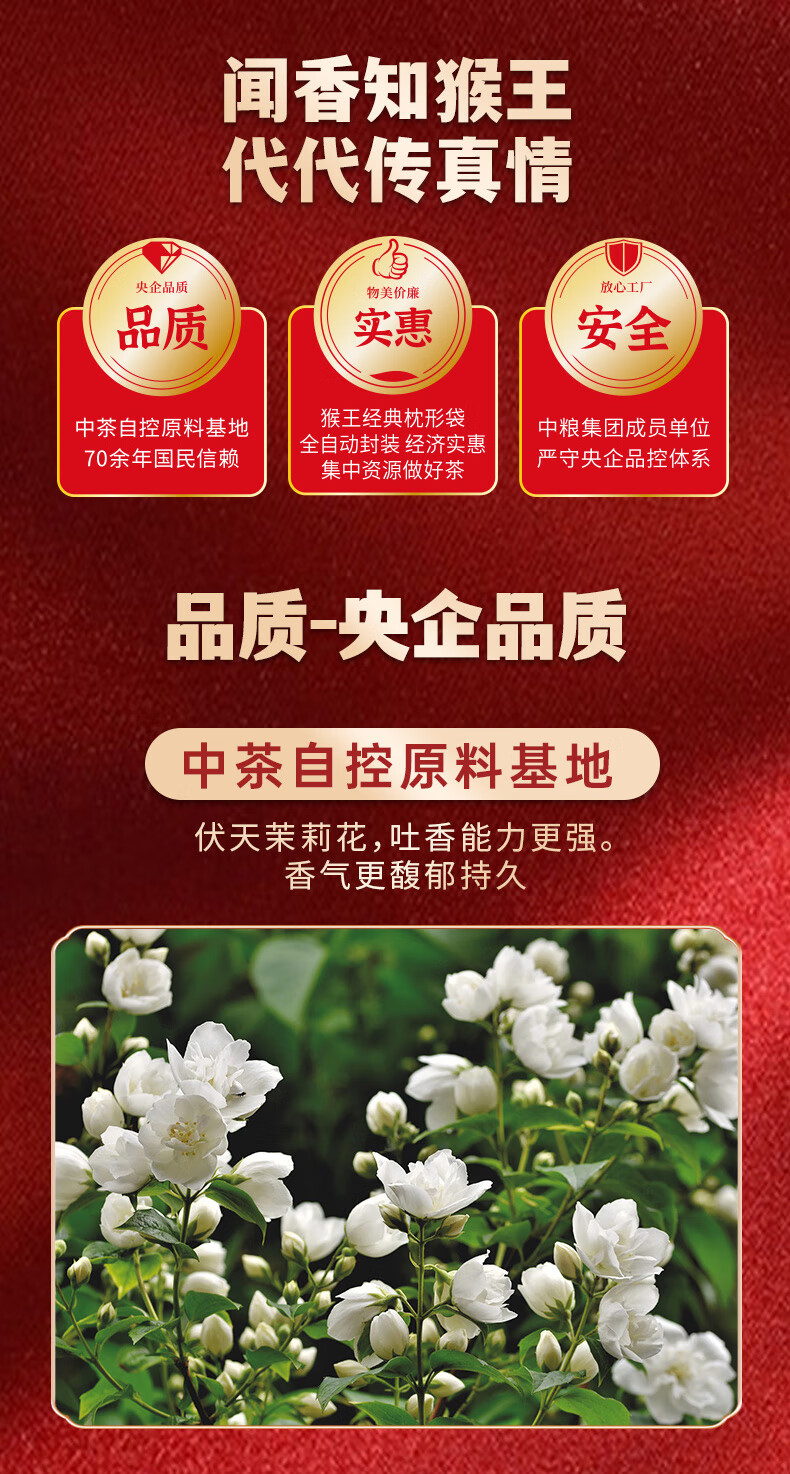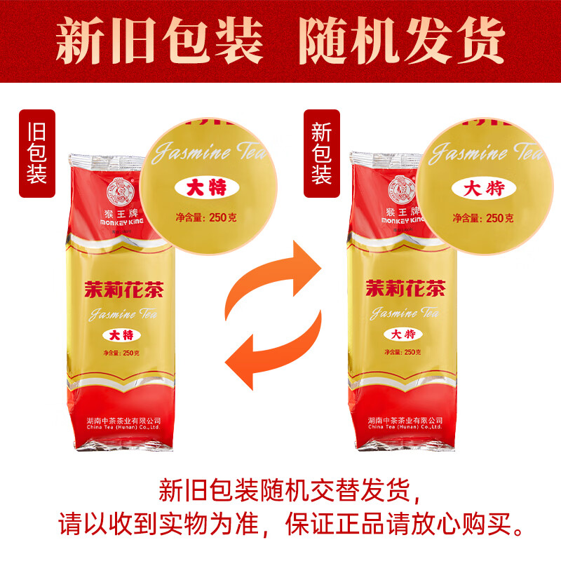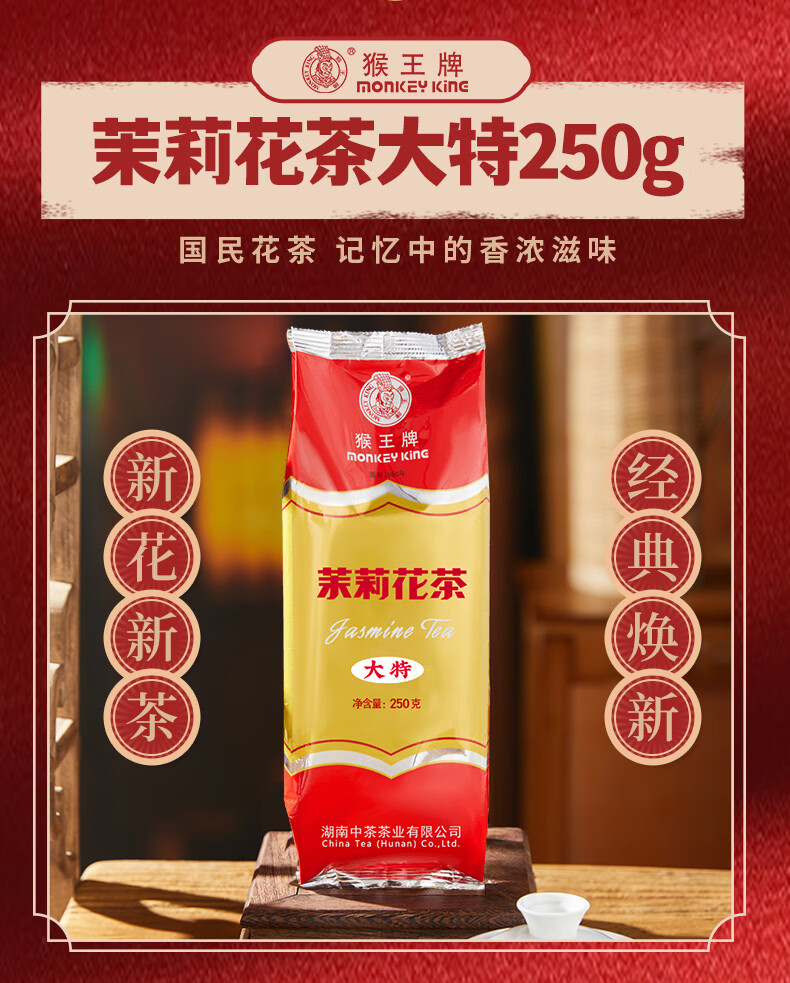 猴王牌茉莉花茶大特半斤装250g 浓香型茶叶袋装 猴王大特250g