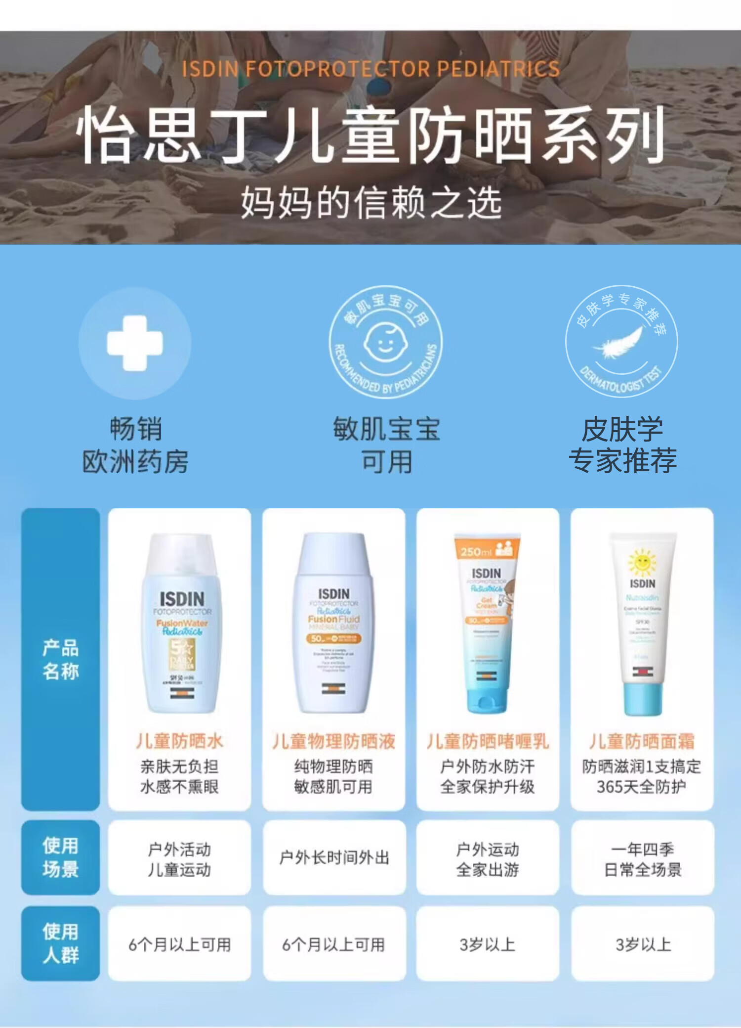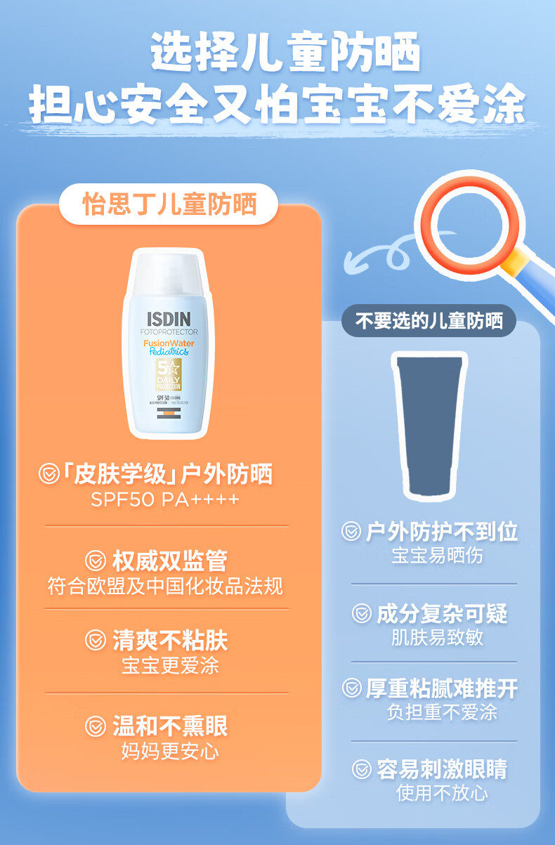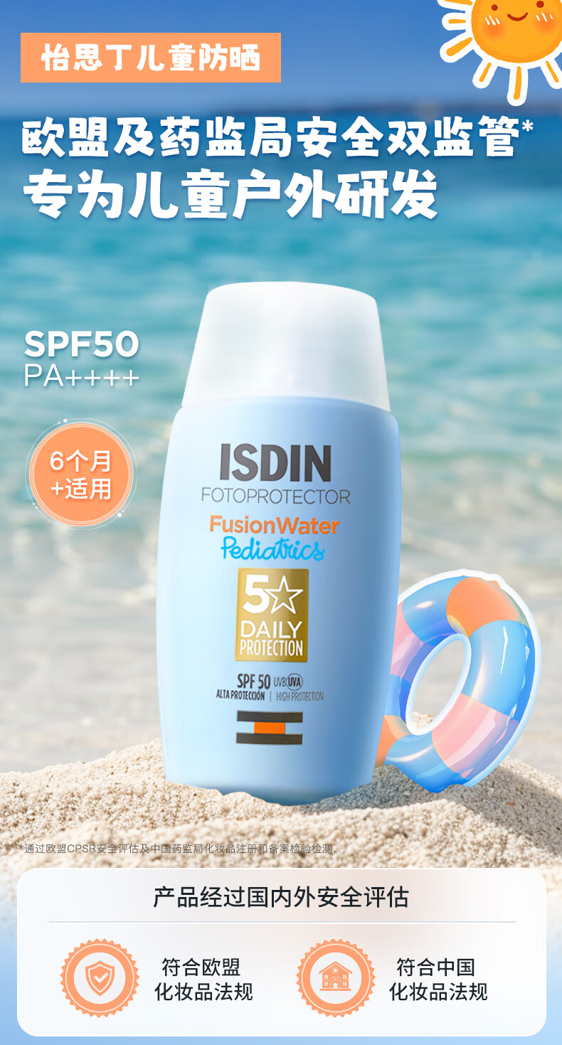 怡思丁(ISDIN)儿童防晒霜隔离50ml SPF50进口宝宝防晒乳高倍户外防水防汗礼物