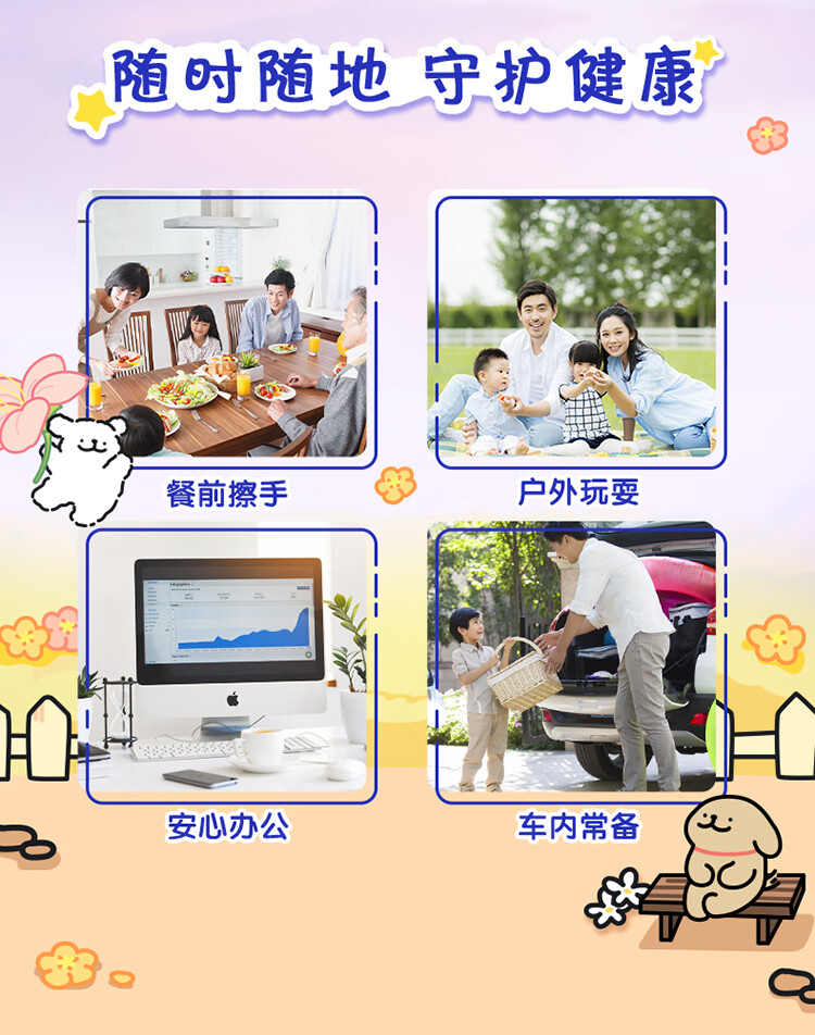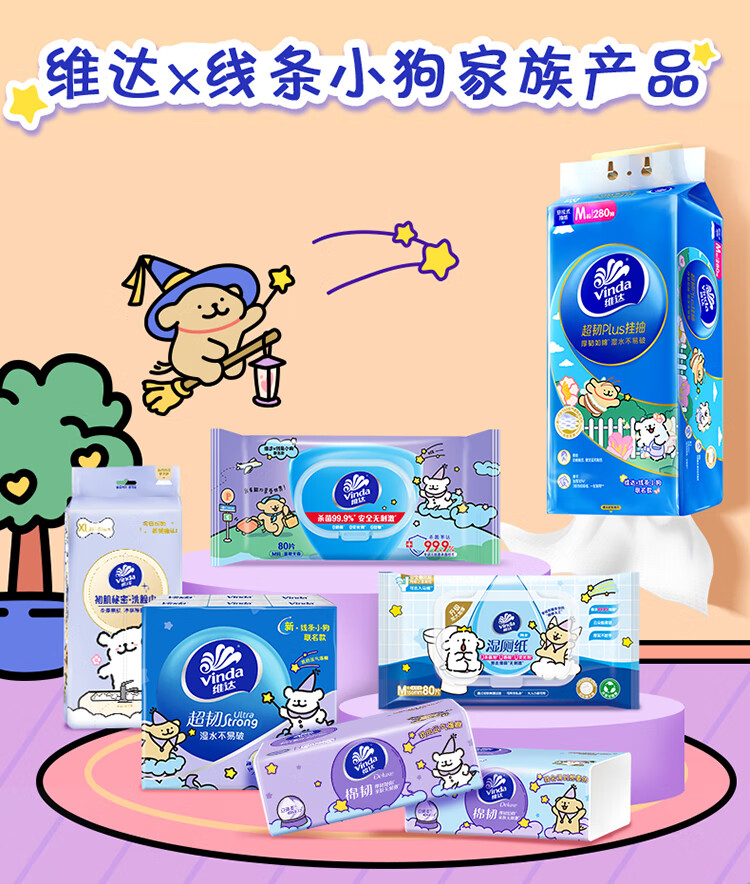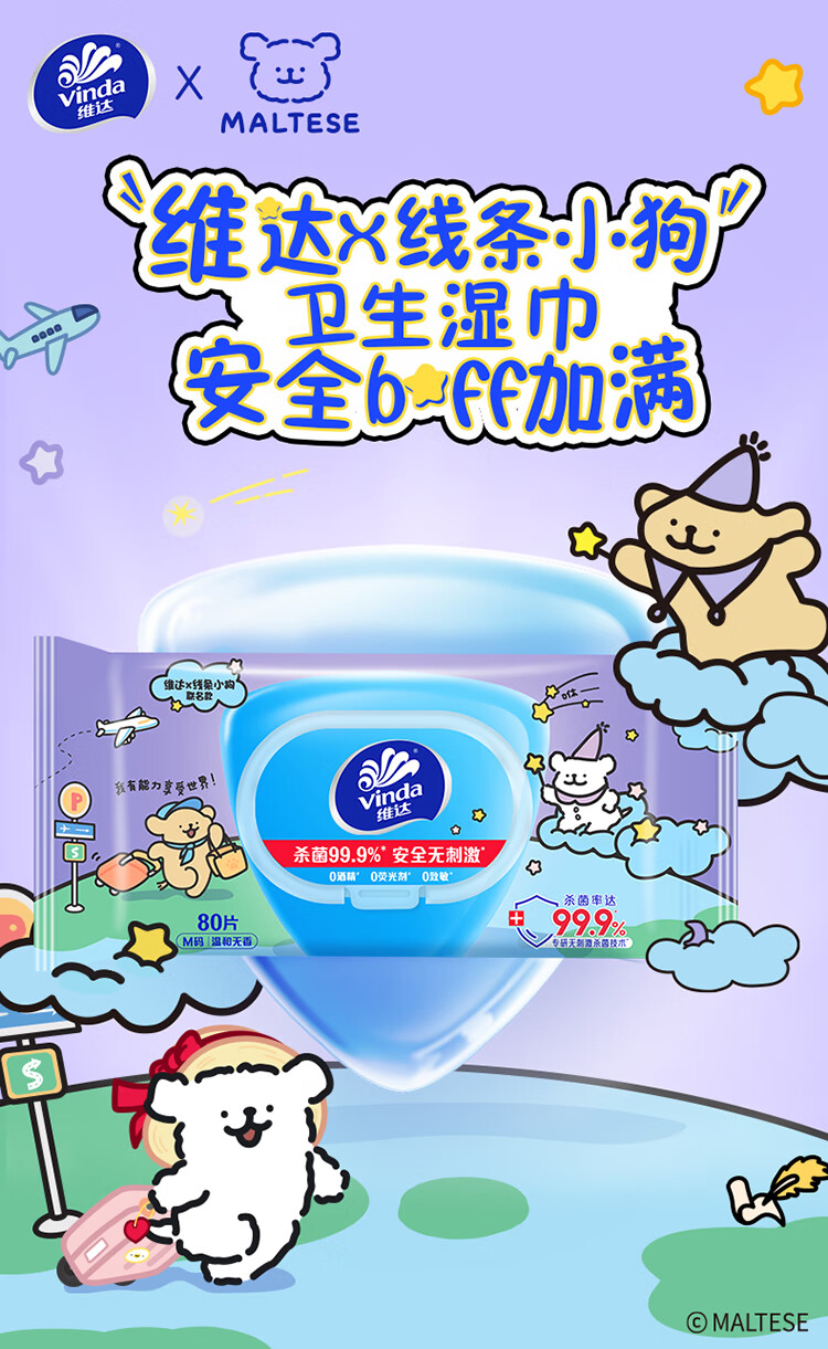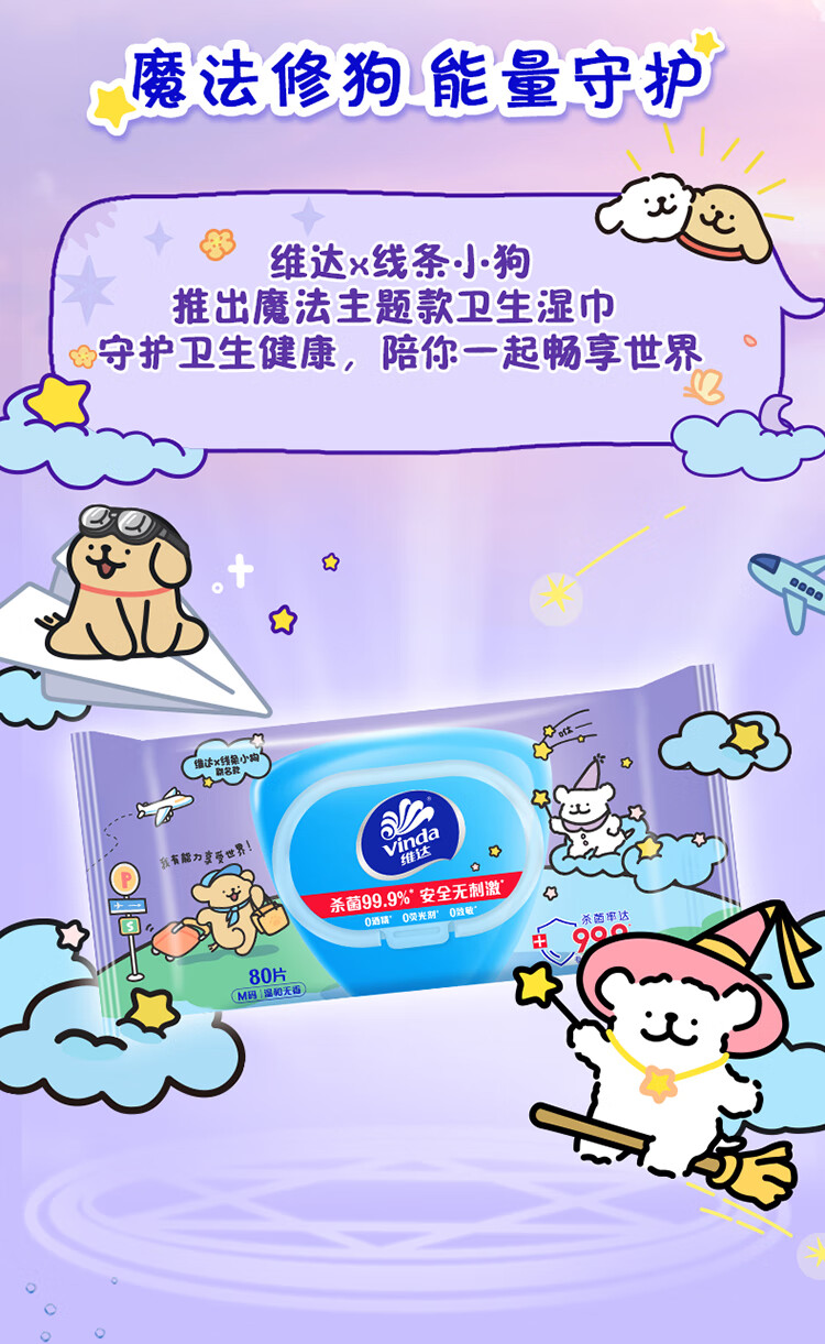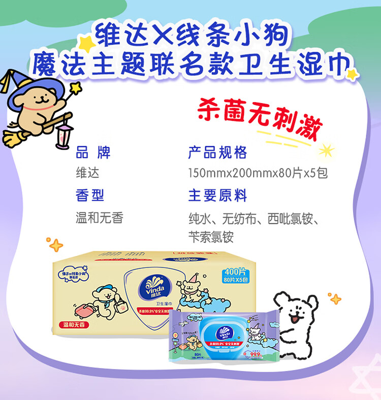 维达(Vinda)杀菌湿巾 80片*5包 线条小狗IP款 杀菌率99.9% 湿巾大包 湿纸巾