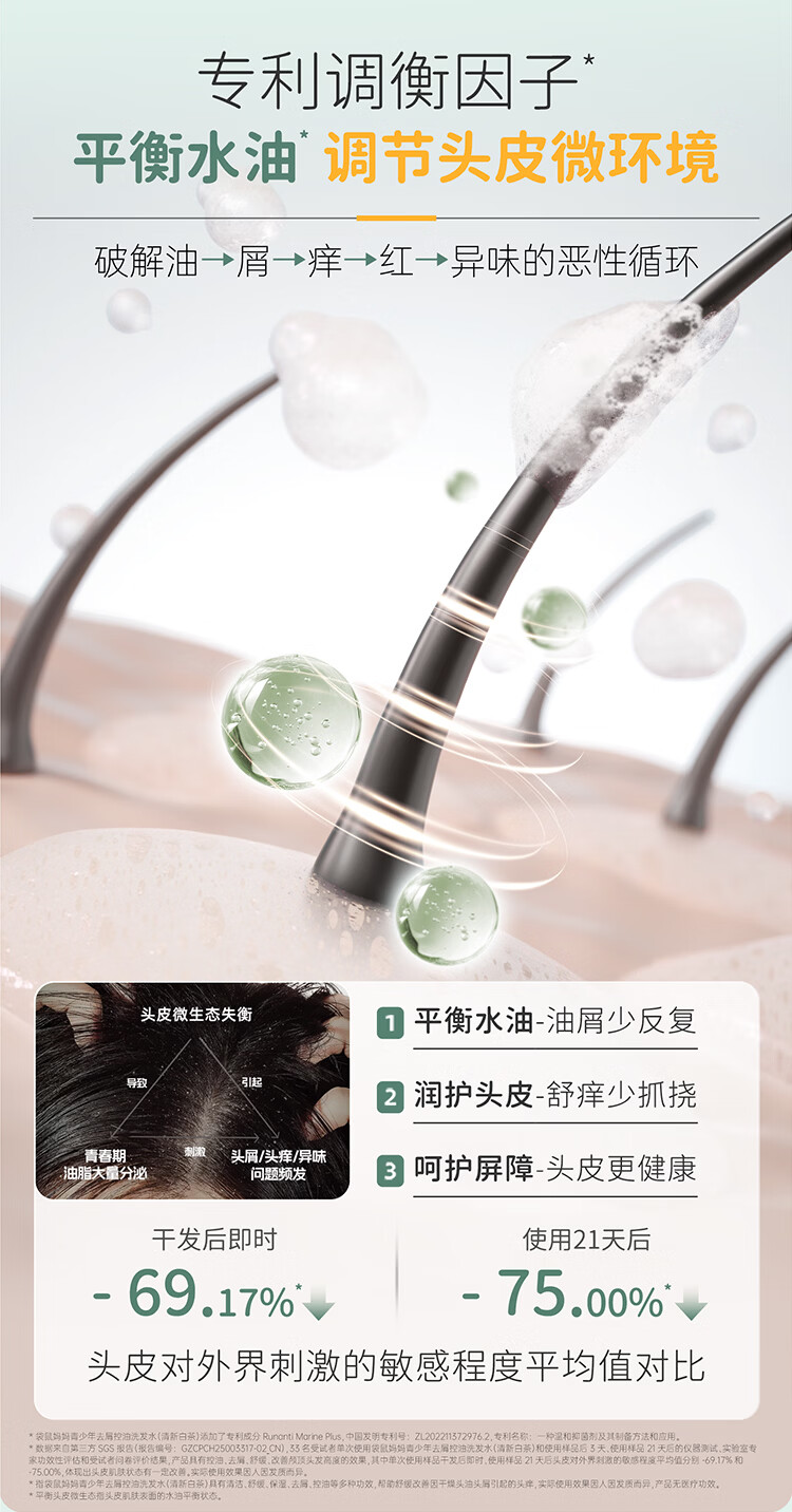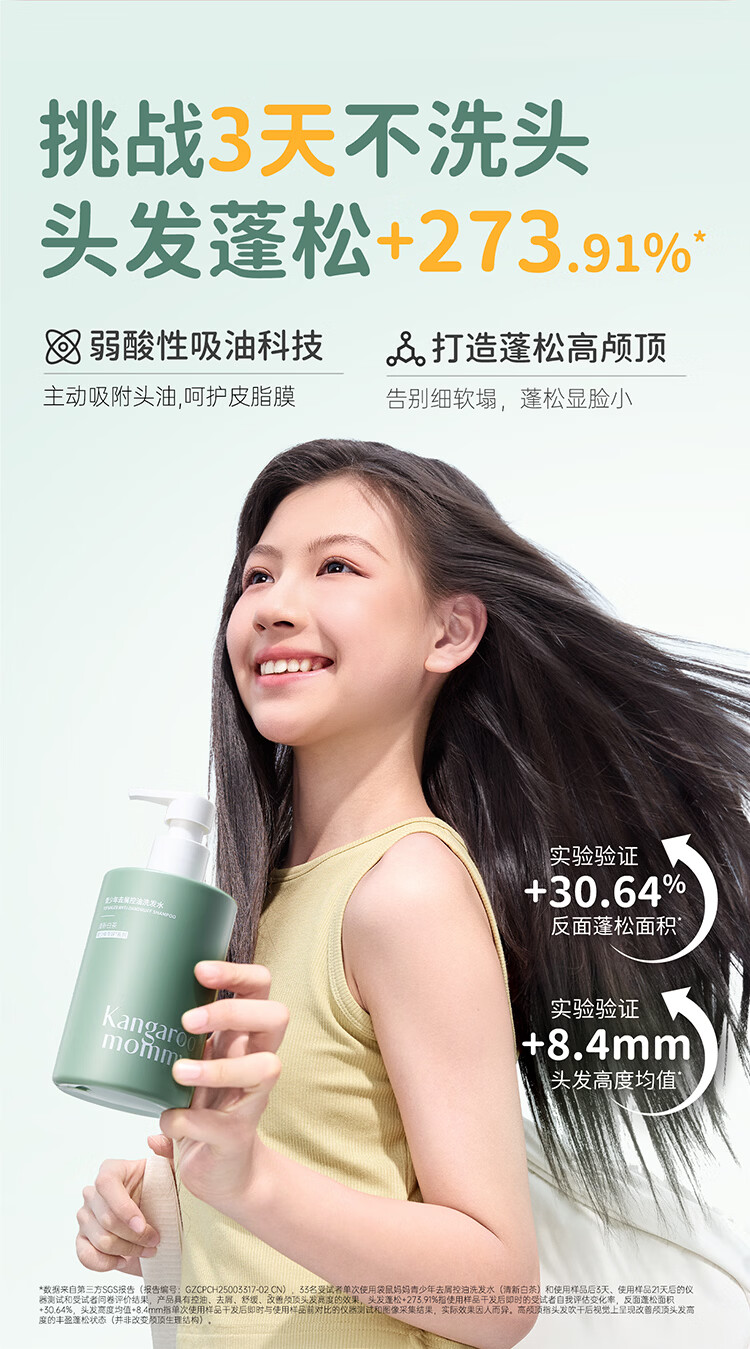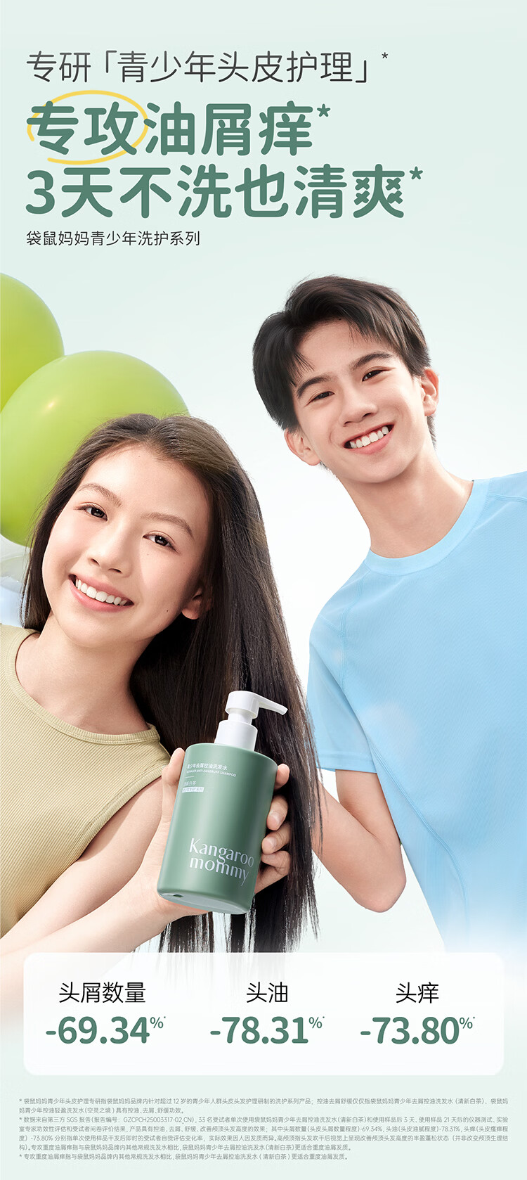 袋鼠妈妈青少年洗发水380ml 控油去屑12-18岁青春期男女孩专用
