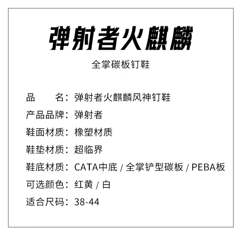 TANSHEZHE弹射者钉鞋火麒麟风神竞速跑鞋全掌碳板+钉鞋鞋套 火麒麟【皓月疾风】+鞋套 44