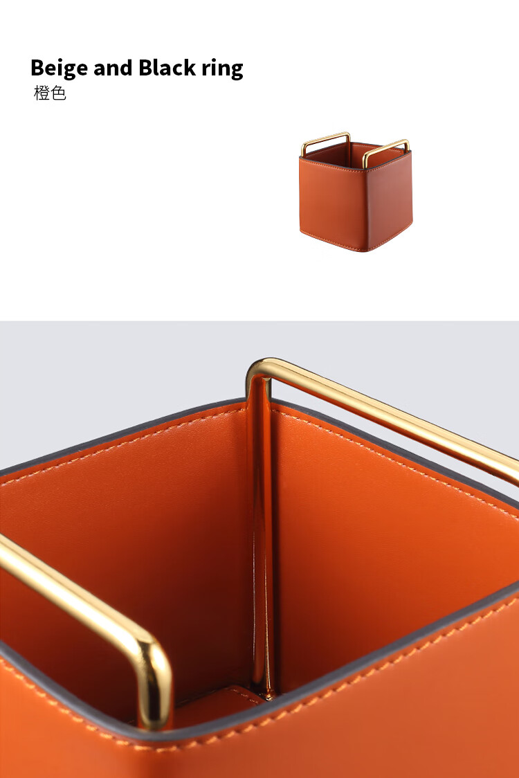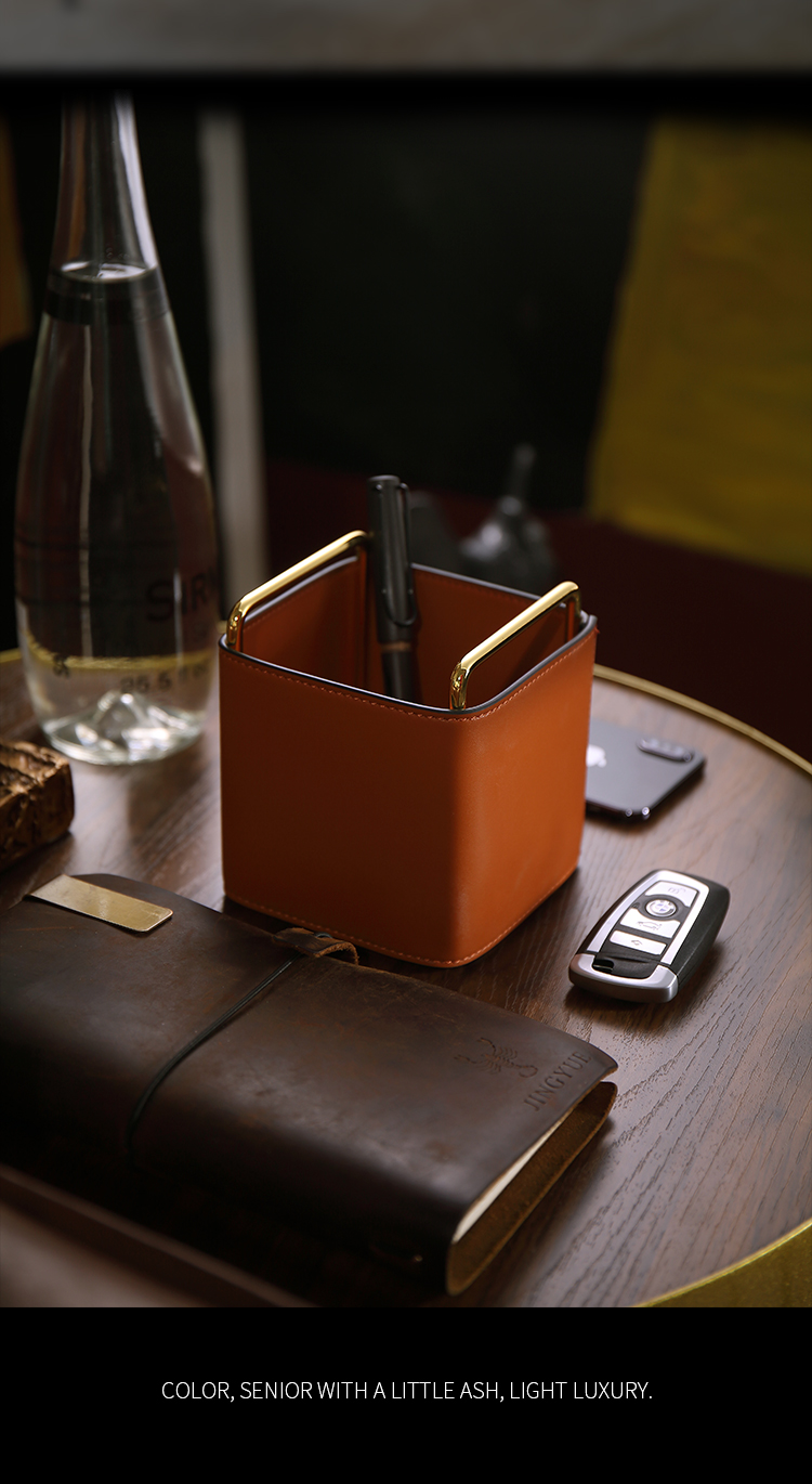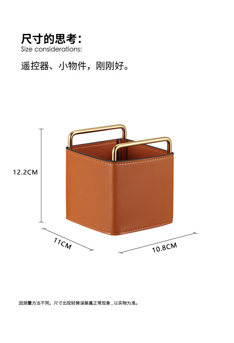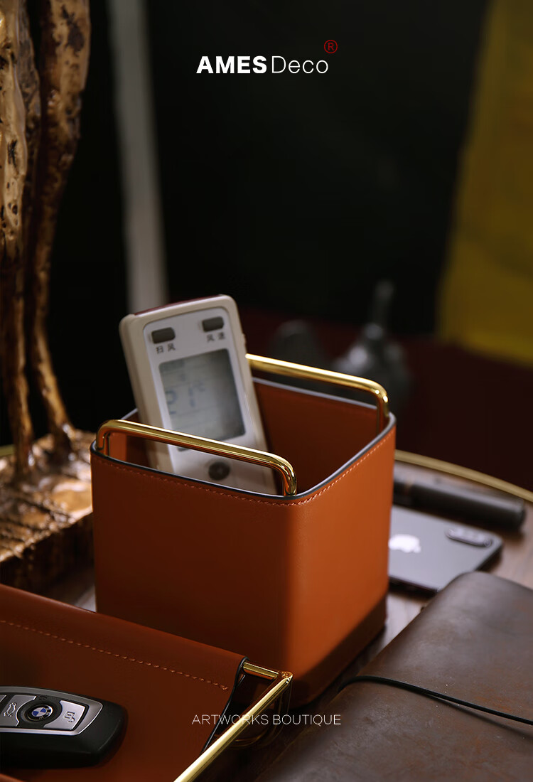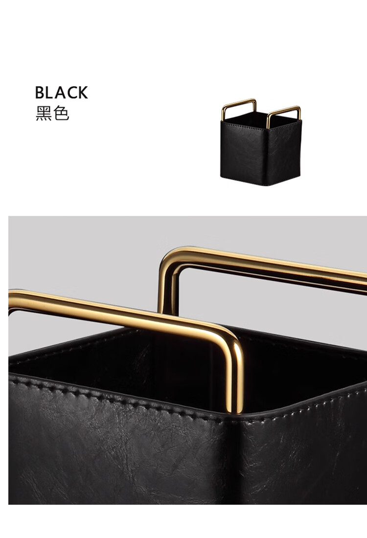 爱美仕家居设计师款环保皮革家用桌面笔筒客厅茶几书房遥控器钥匙收纳盒 黑色 10.8*11*12.2cm