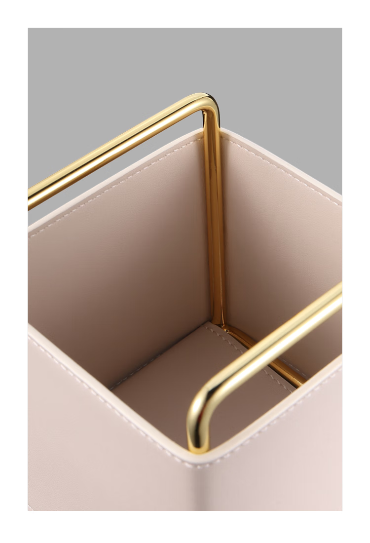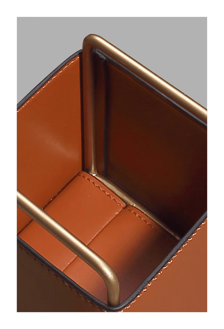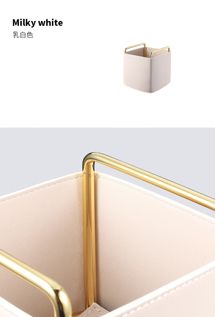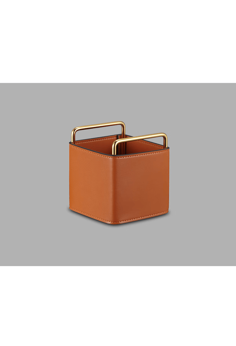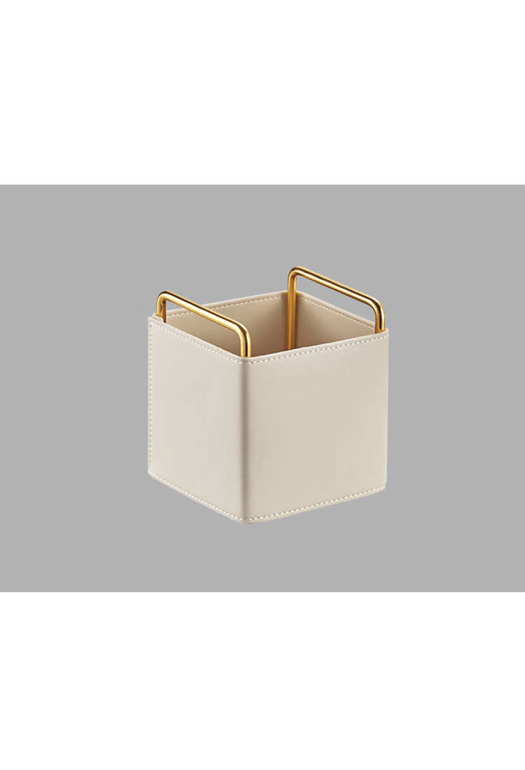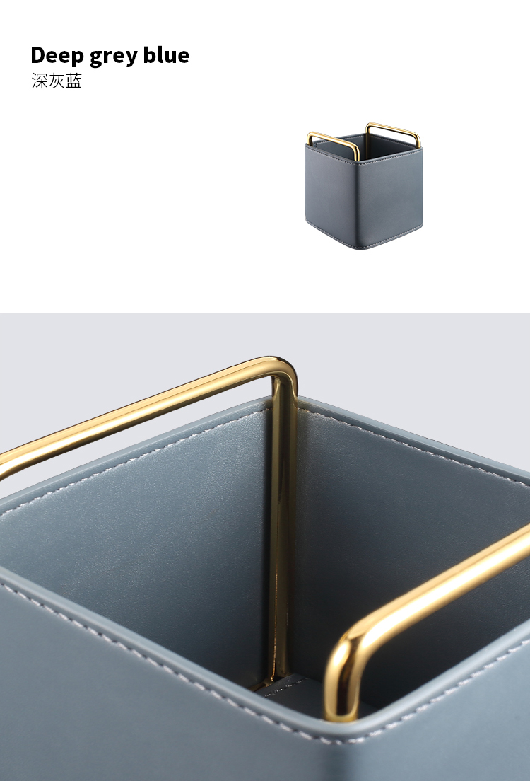 爱美仕家居设计师款环保皮革家用桌面笔筒客厅茶几书房遥控器钥匙收纳盒 黑色 10.8*11*12.2cm