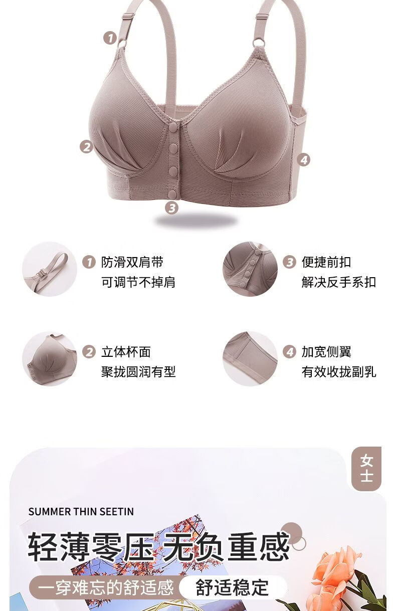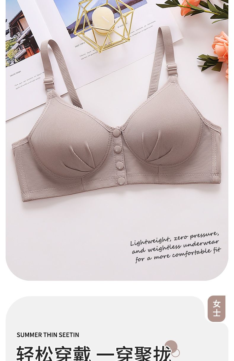 GEEZORO便捷前按扣式内衣聚拢上托无钢圈收副乳胸罩中年妈妈薄款女士胸罩 红色 105A 46/105适合185斤以内