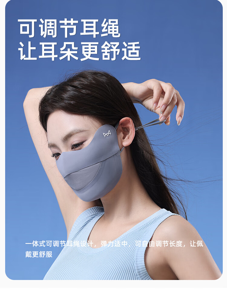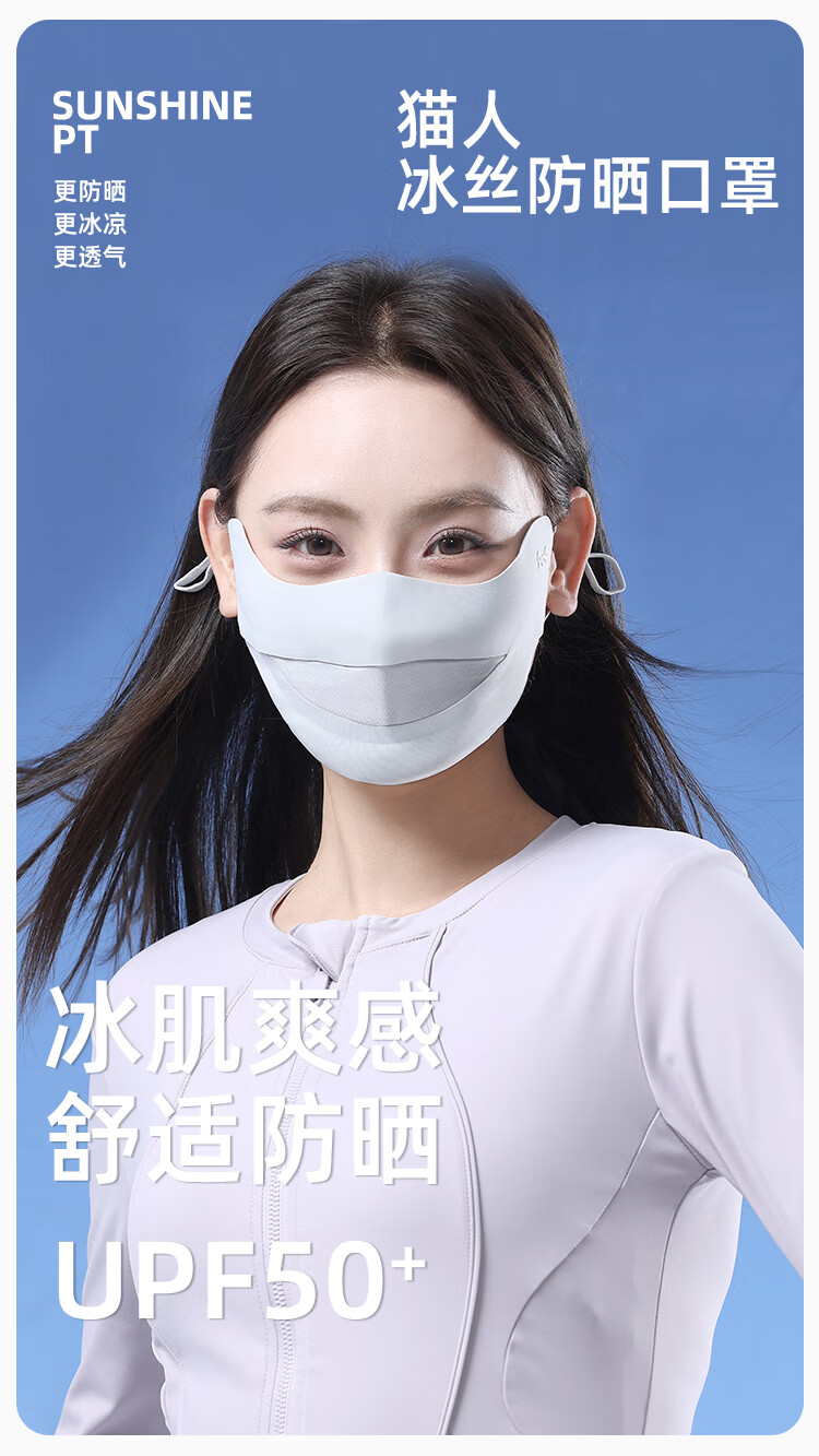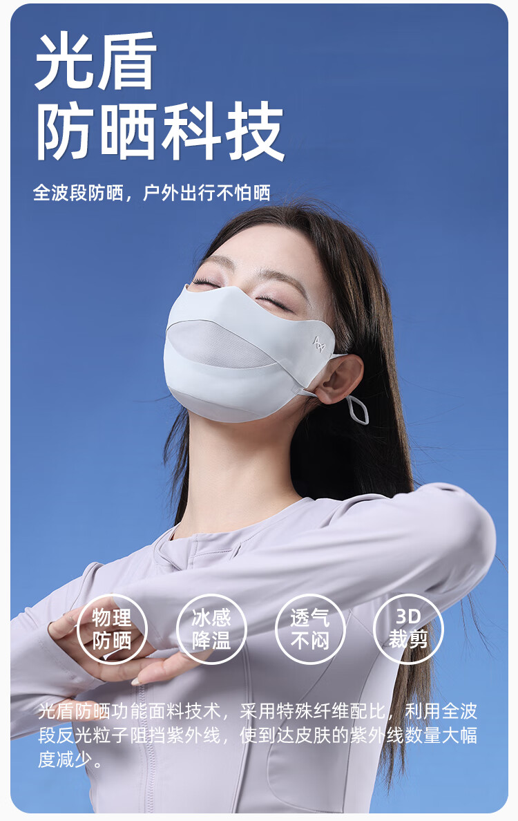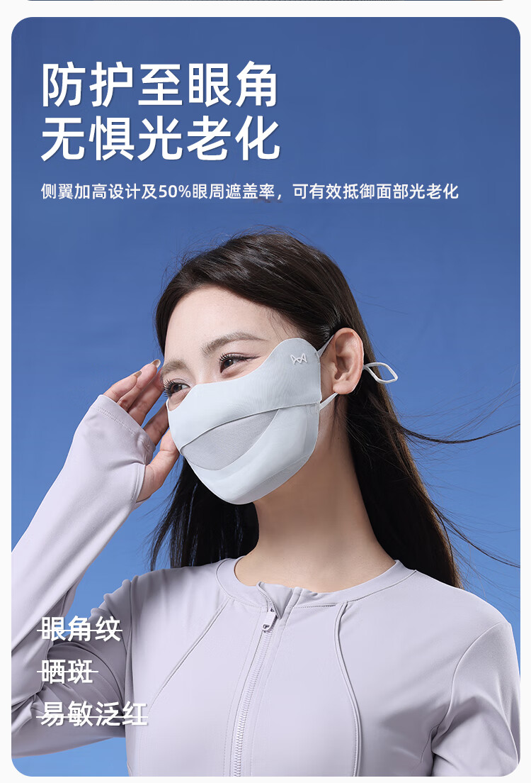 猫人防晒口罩女无痕夏季透气防紫外线夏天高颜值遮阳冰丝面罩2025新款 浅灰色 1个