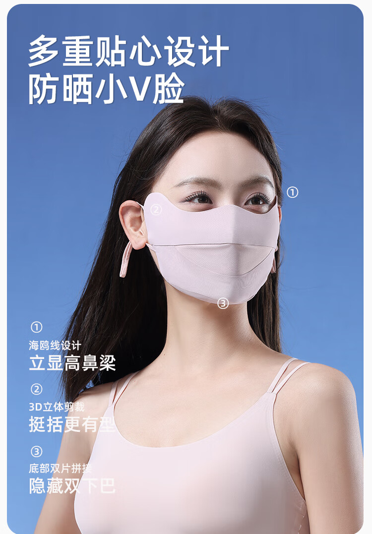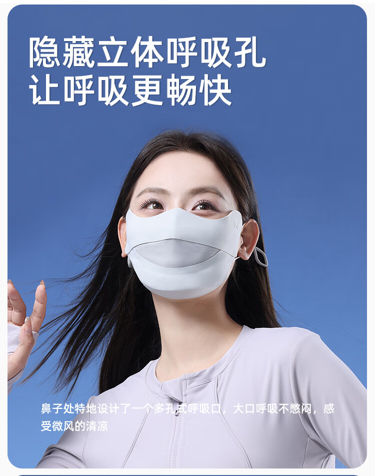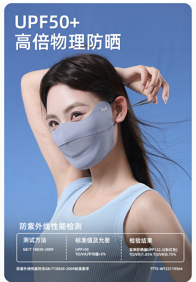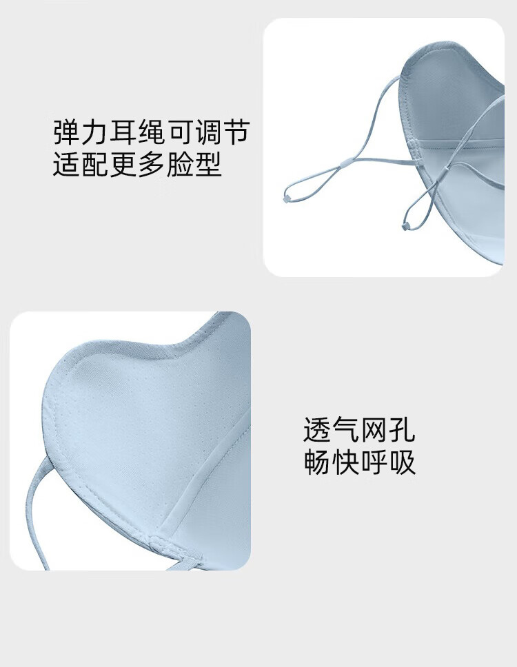猫人防晒口罩女无痕夏季透气防紫外线夏天高颜值遮阳冰丝面罩2025新款 浅灰色 1个