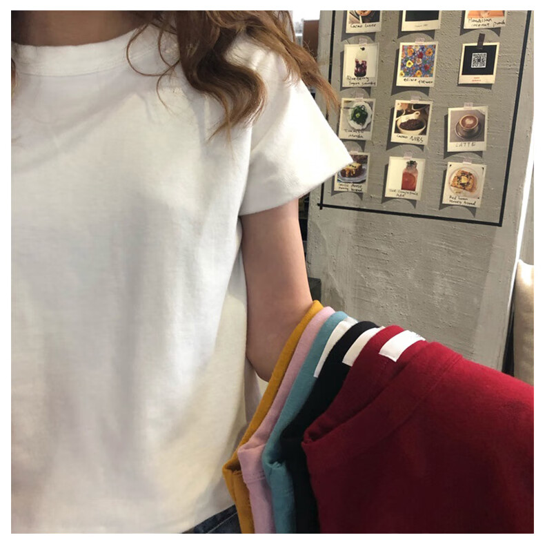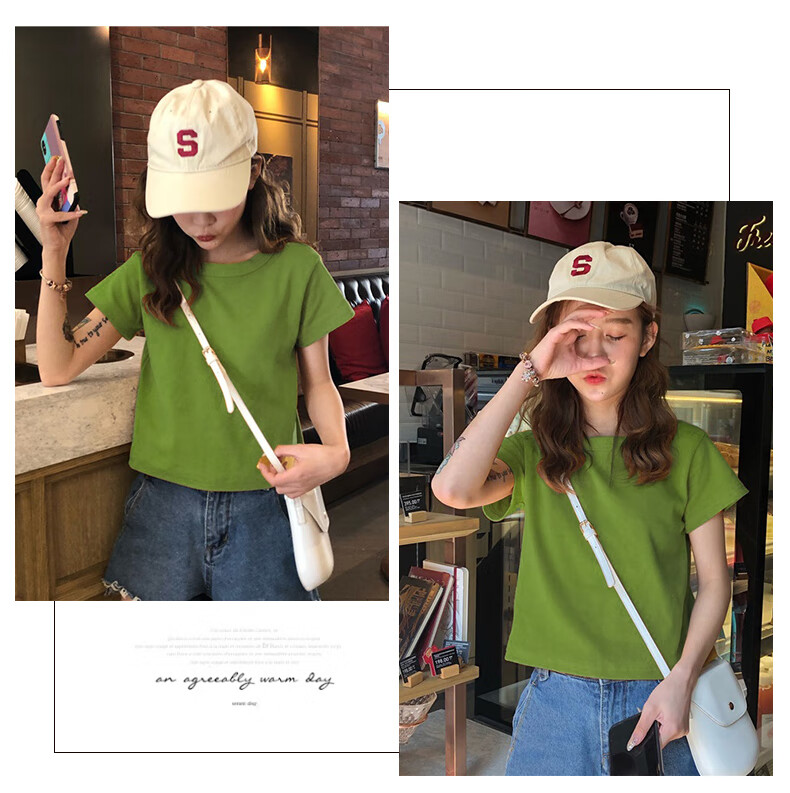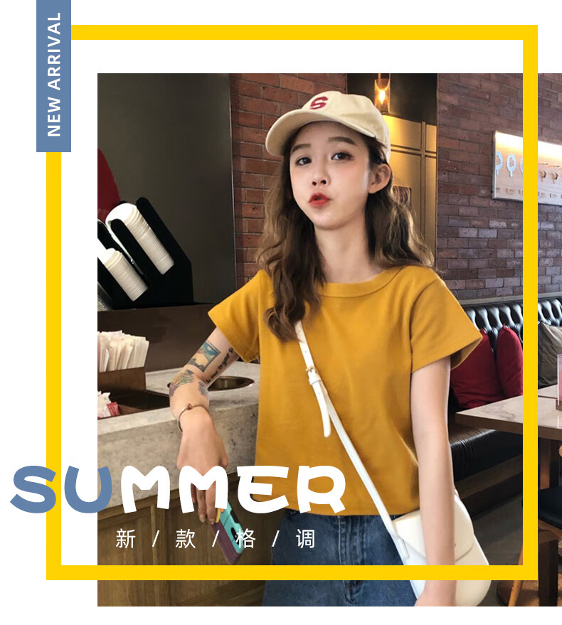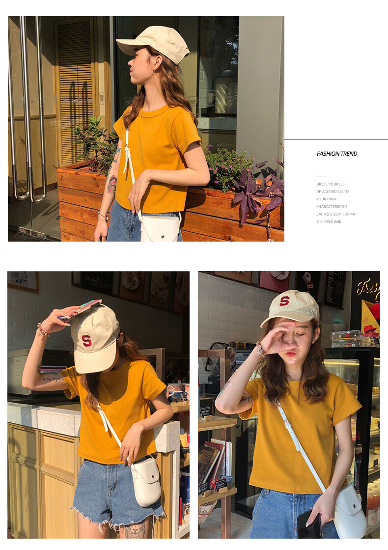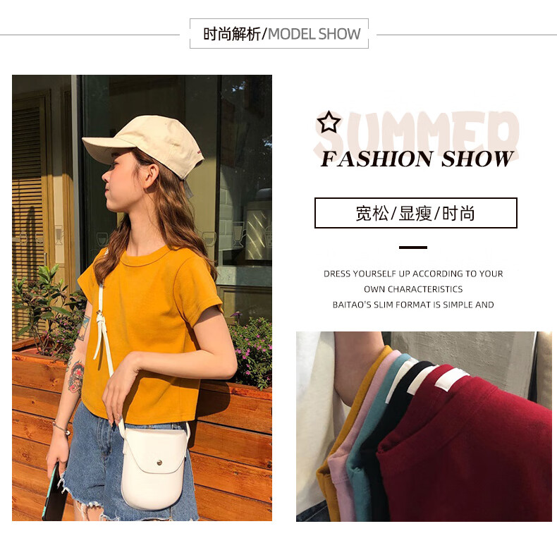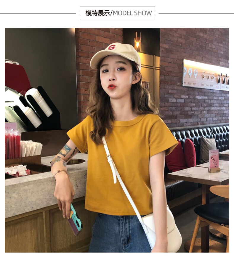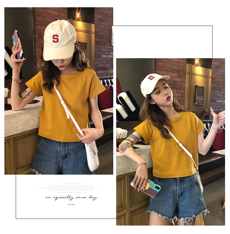纯棉短款短袖t恤女夏季女装新款内搭常规外穿ins超火正肩上衣002 003黄色 S 参考90斤以内