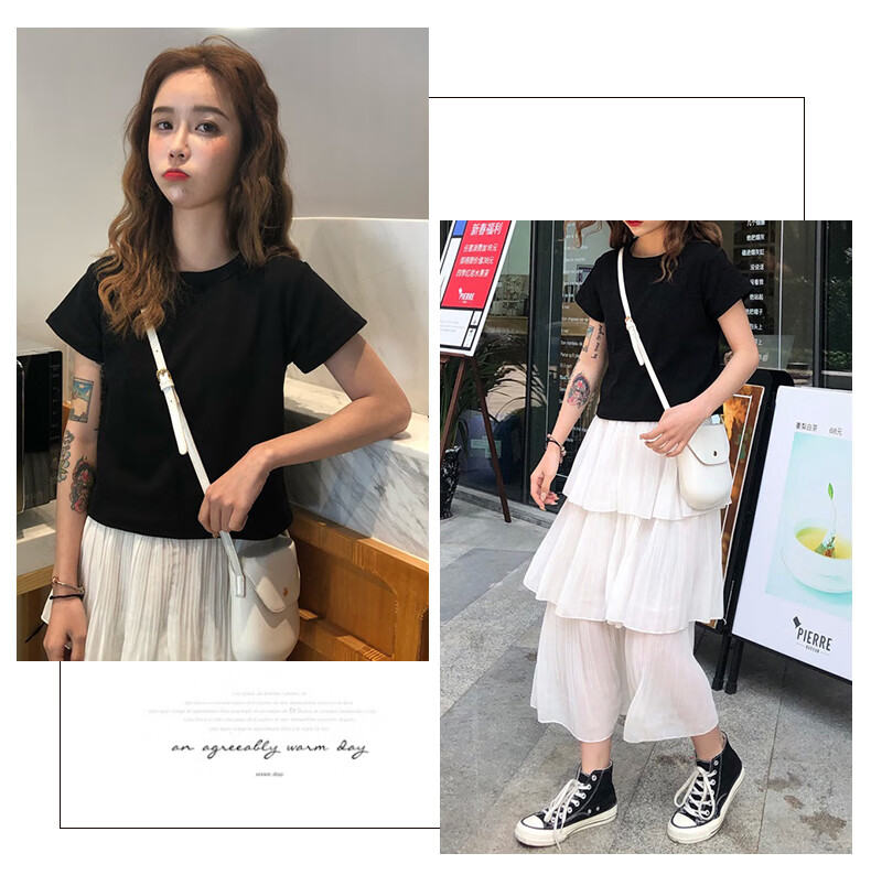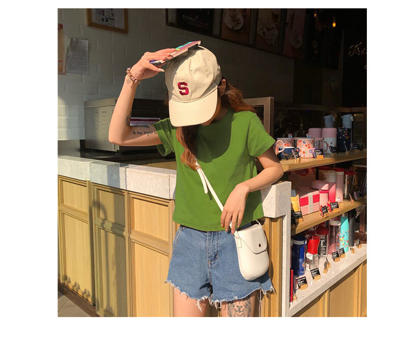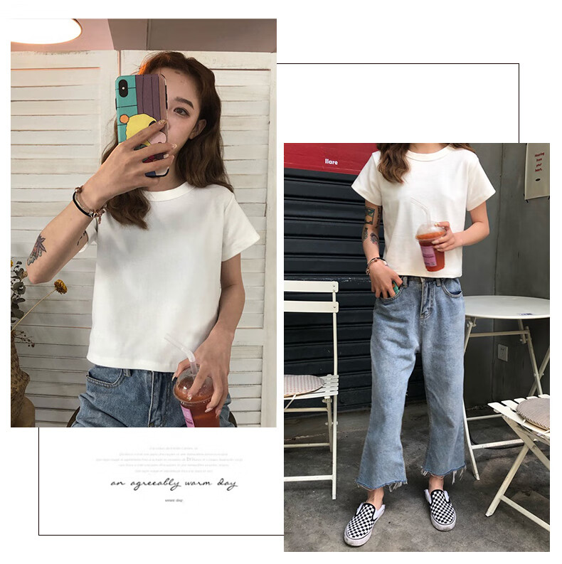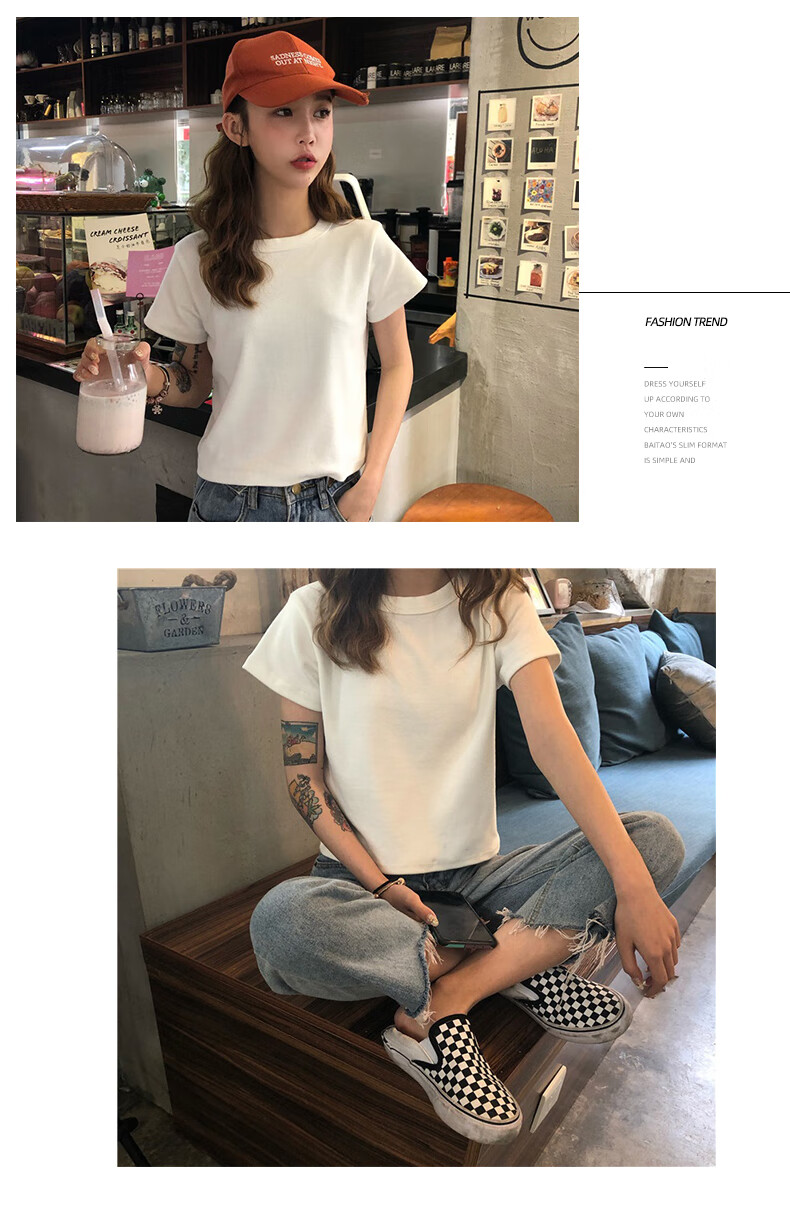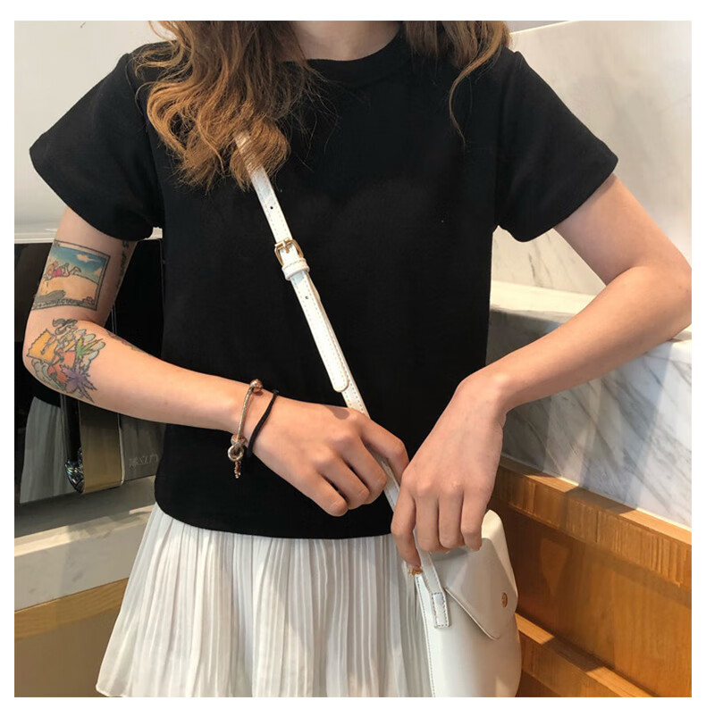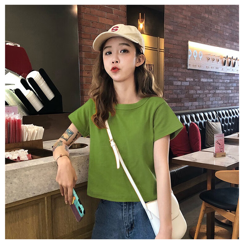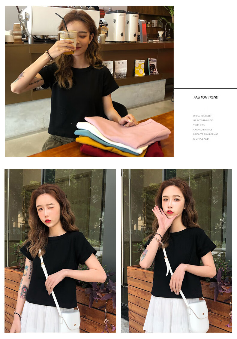 纯棉短款短袖t恤女夏季女装新款内搭常规外穿ins超火正肩上衣002 003黄色 S 参考90斤以内