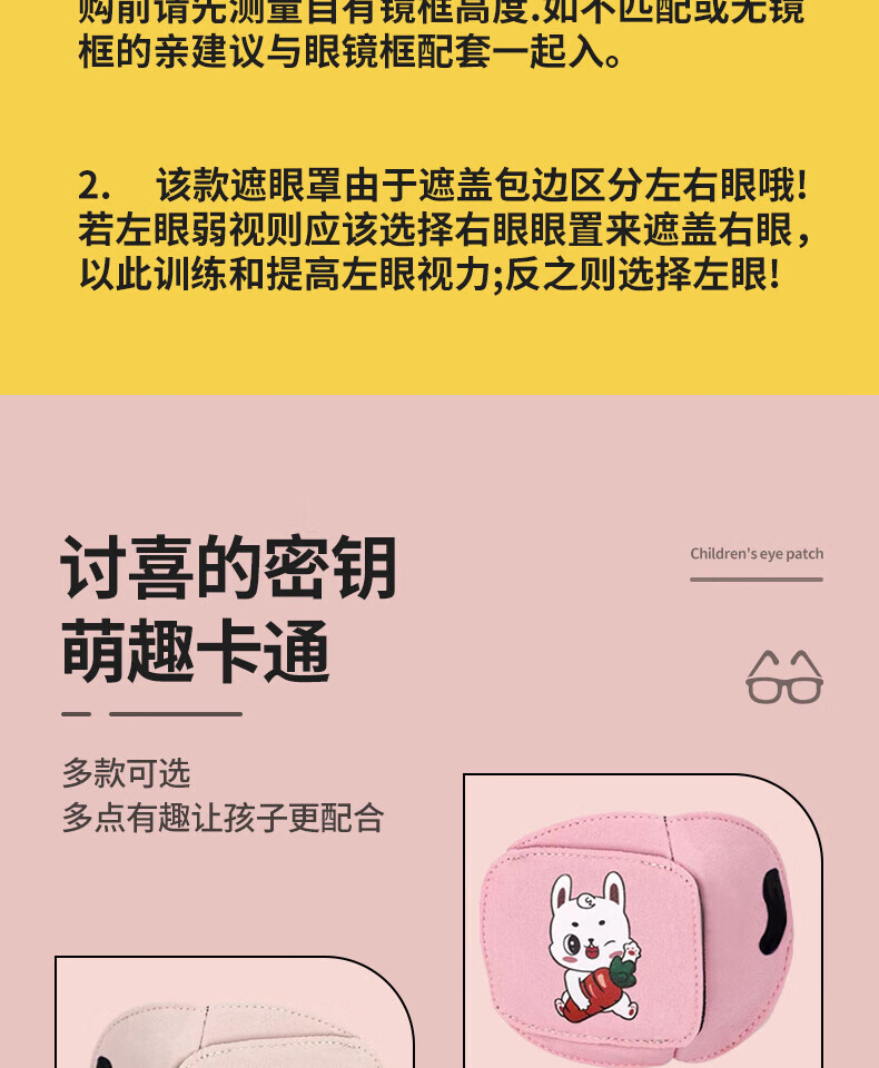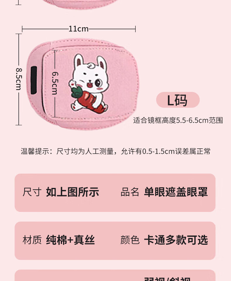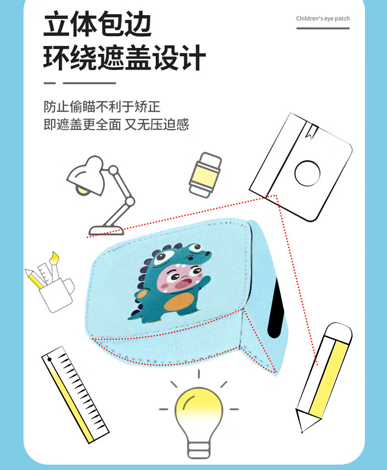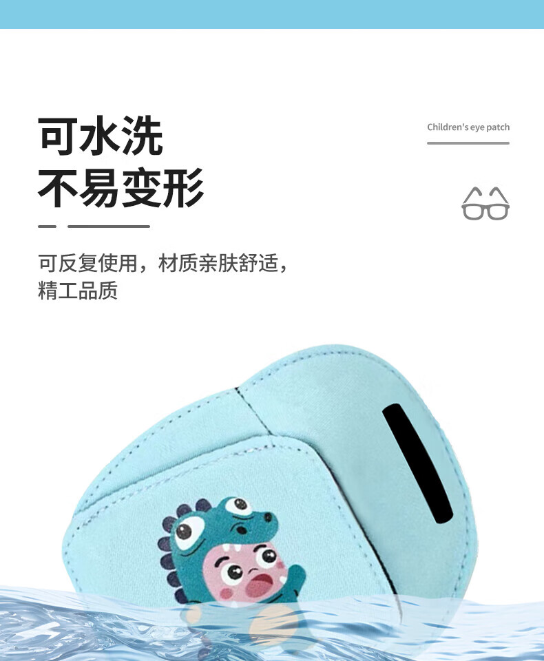 通用弱视眼镜遮盖眼罩 儿童视力弱视遮光眼罩单眼眼镜遮挡罩遮 浅蓝怪兽-右眼【M码】