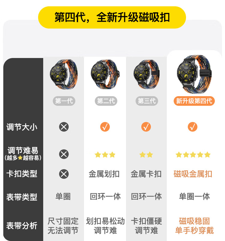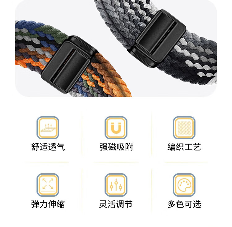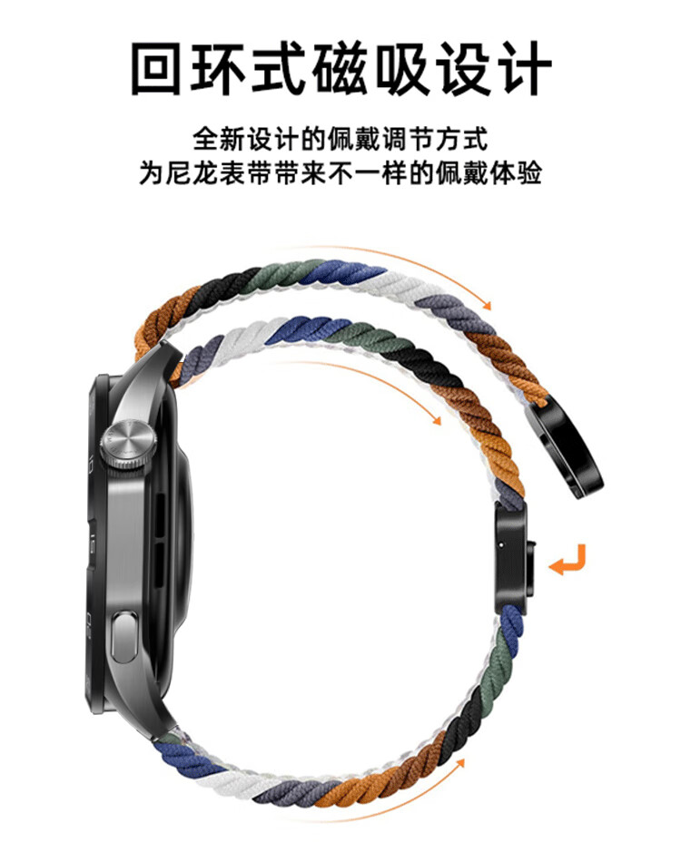 亿图斯适用华为GT 6/5/4/3/2手表表带磁吸回环watch编织watch 3 Pro尼龙buds智能手表46/48表盘透气腕带 迷彩七色【磁吸扣】22MM接口