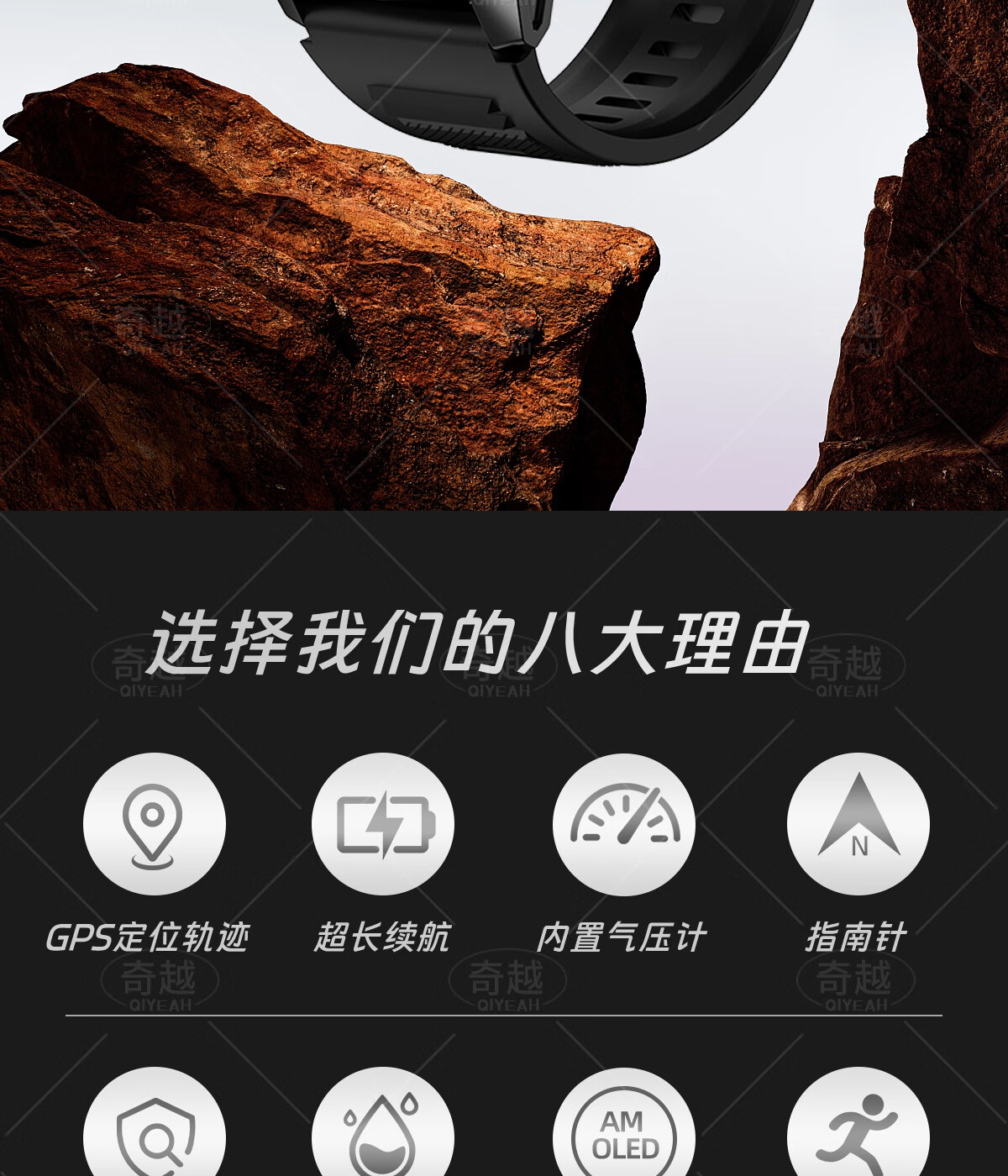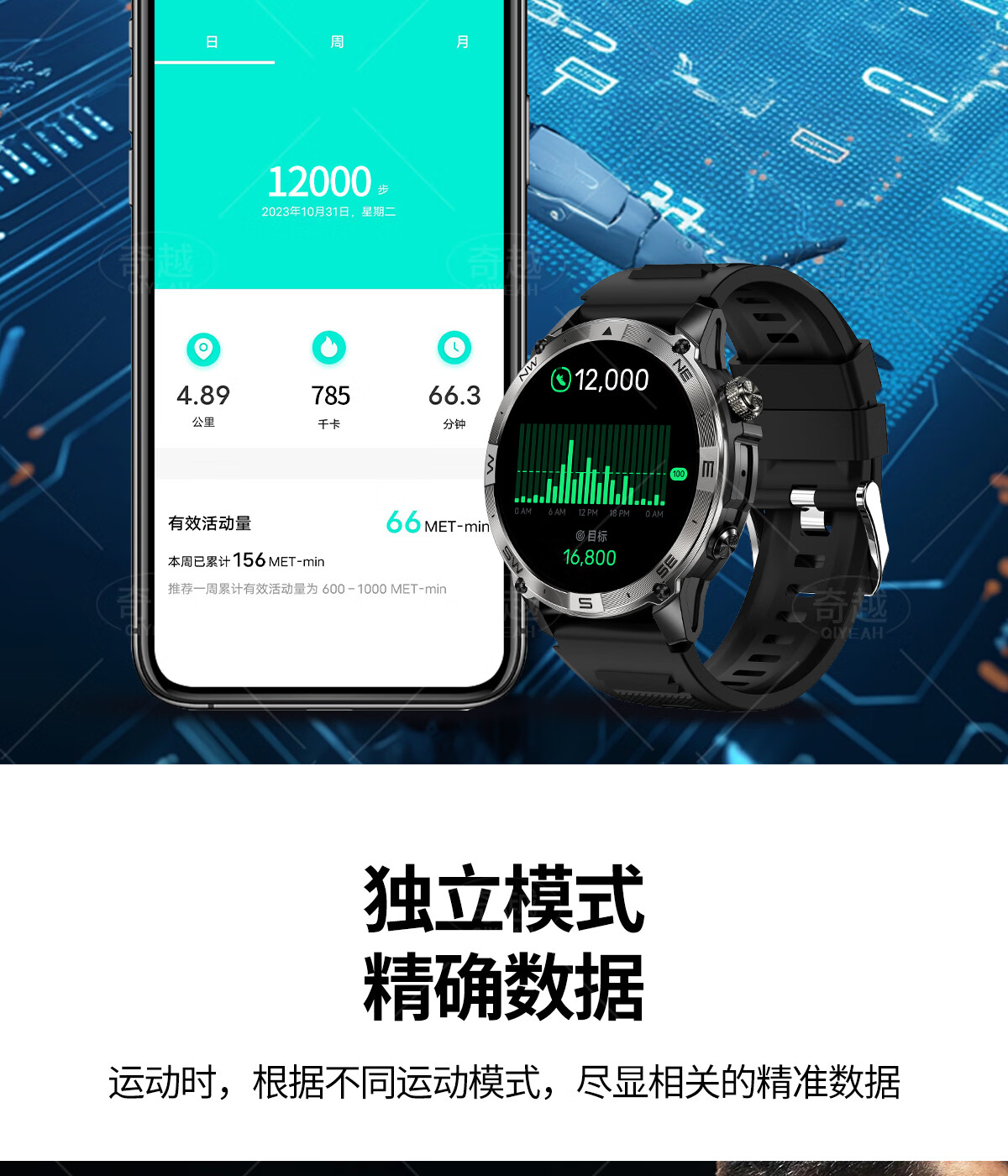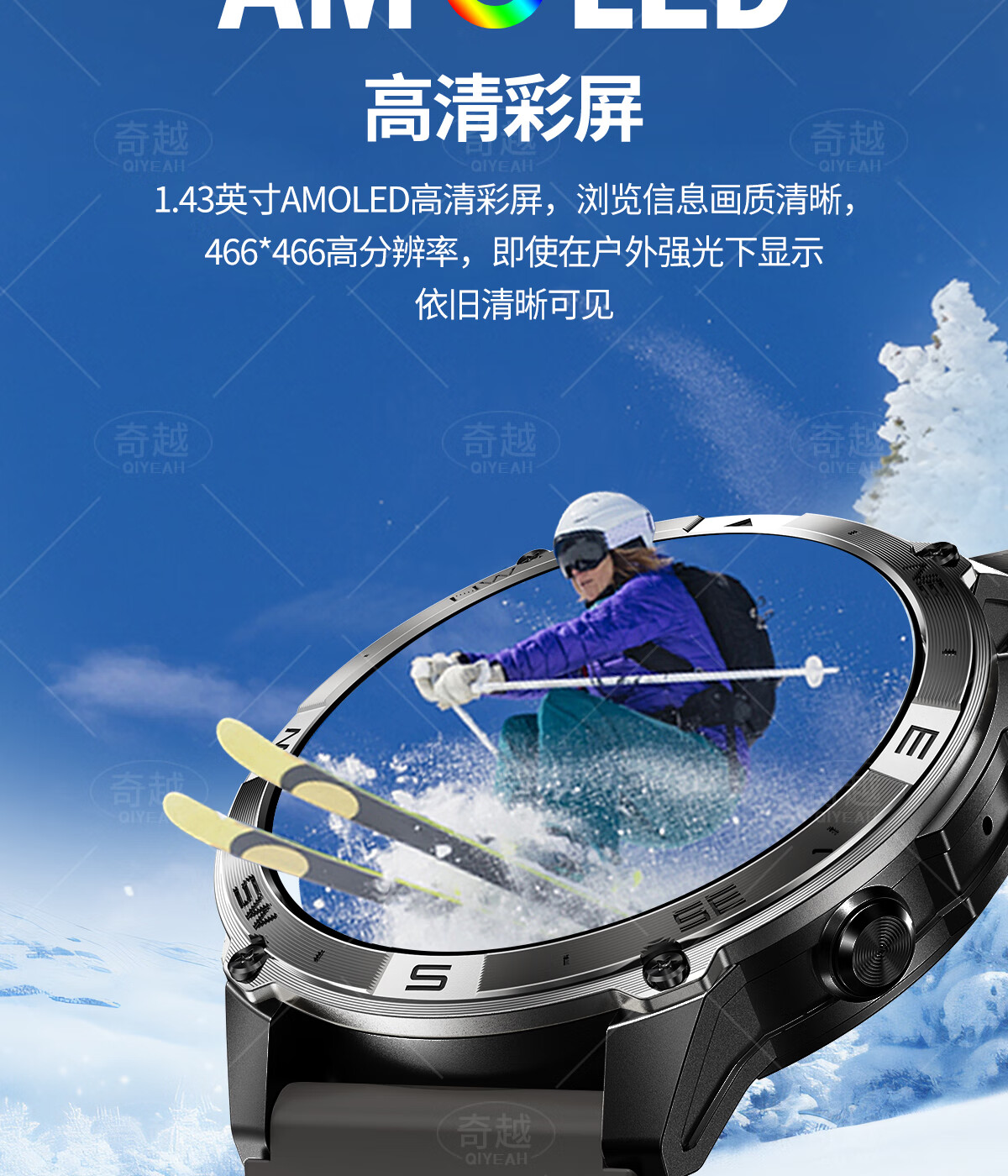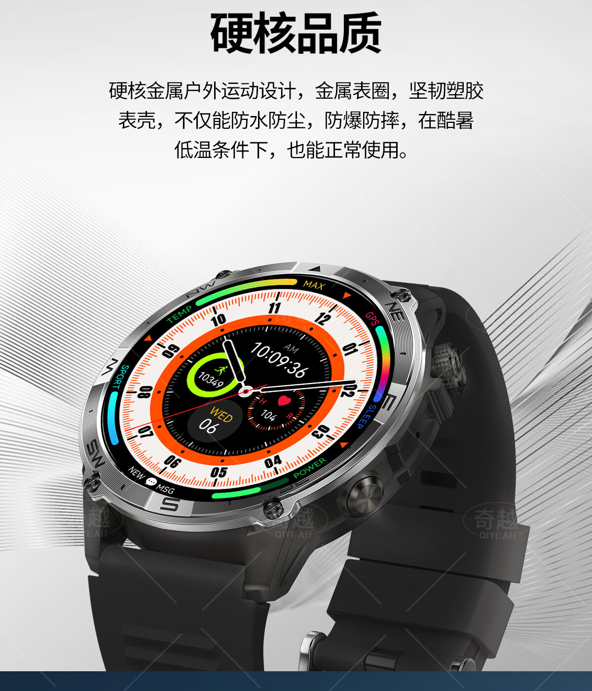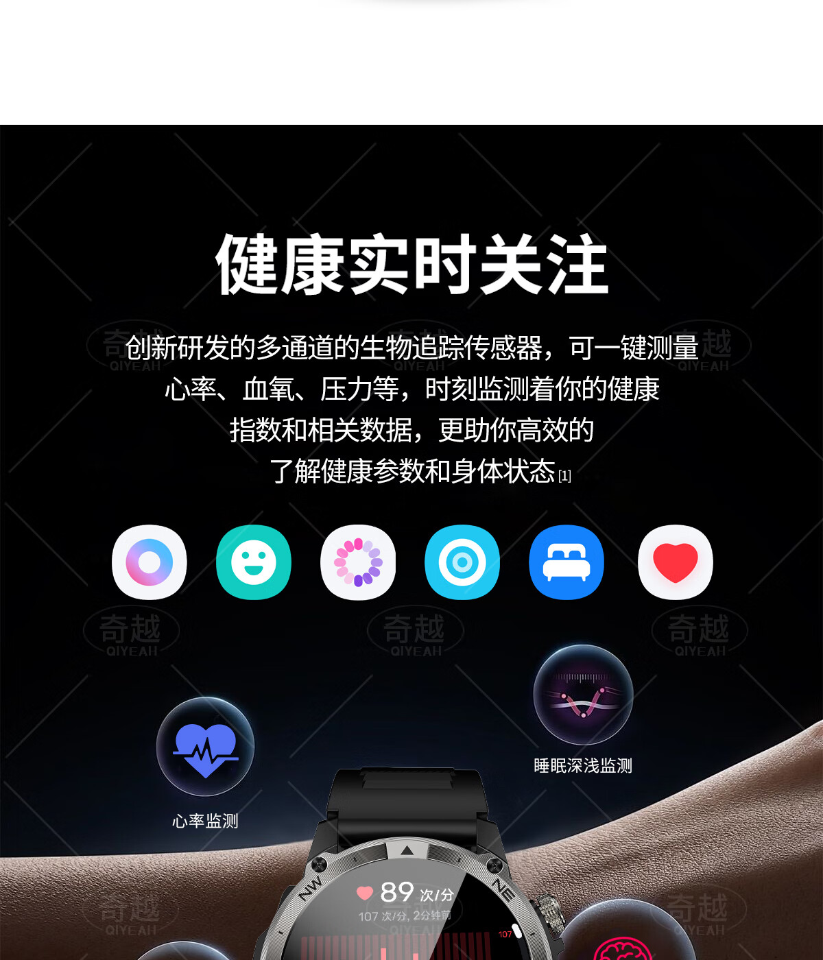 QIYEAH奇越运动手表智能跑步心率监测血氧睡眠GPS定位轨迹蓝牙接打电话离线支付防水消息提醒穿戴手环 运动款 GPS定位运动轨迹