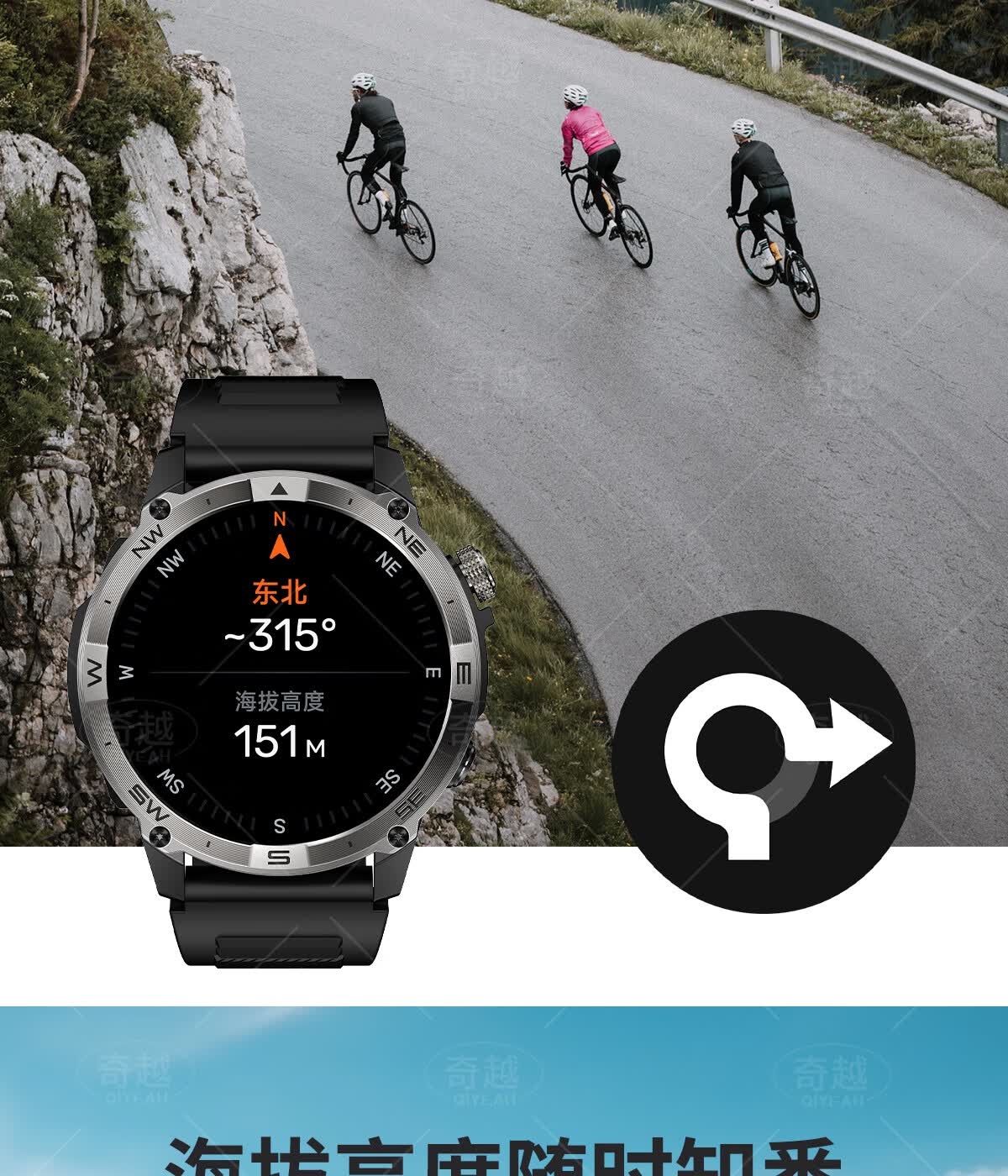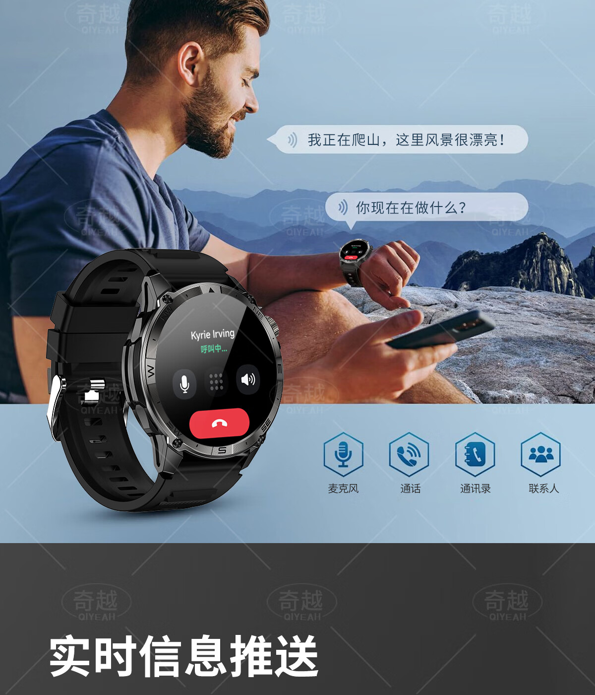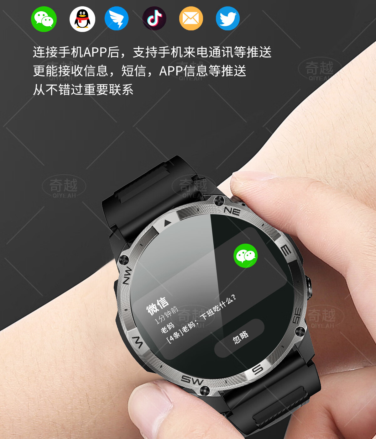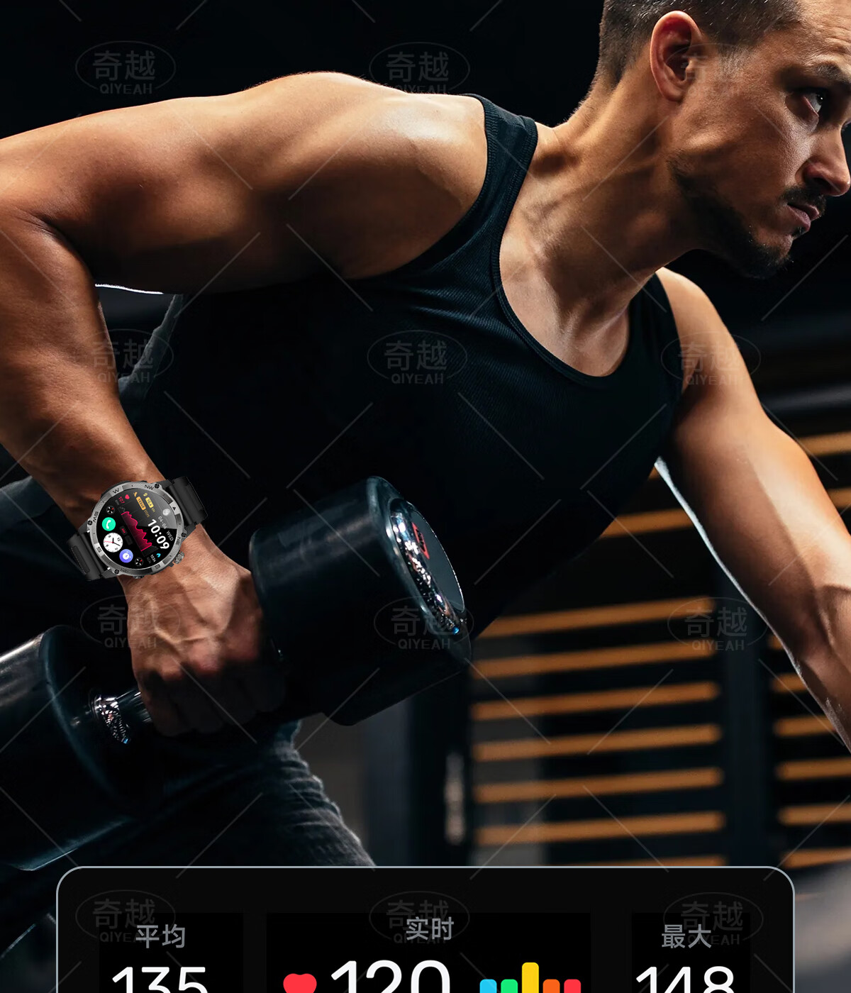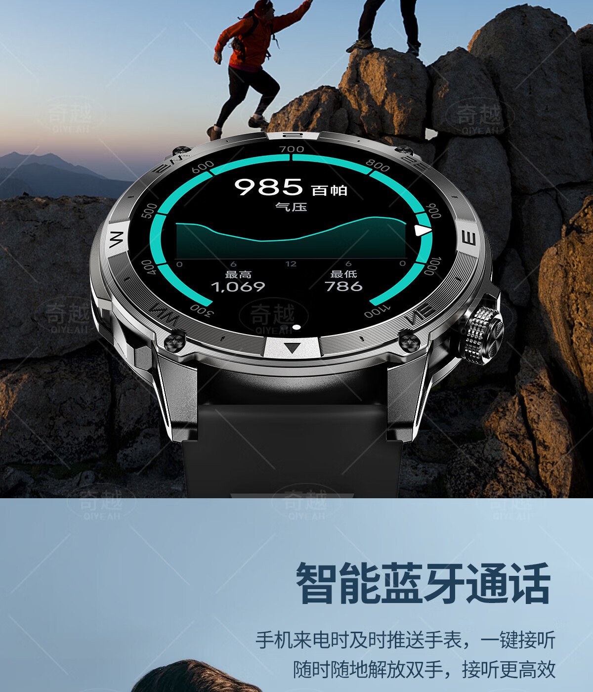QIYEAH奇越运动手表智能跑步心率监测血氧睡眠GPS定位轨迹蓝牙接打电话离线支付防水消息提醒穿戴手环 运动款 GPS定位运动轨迹
