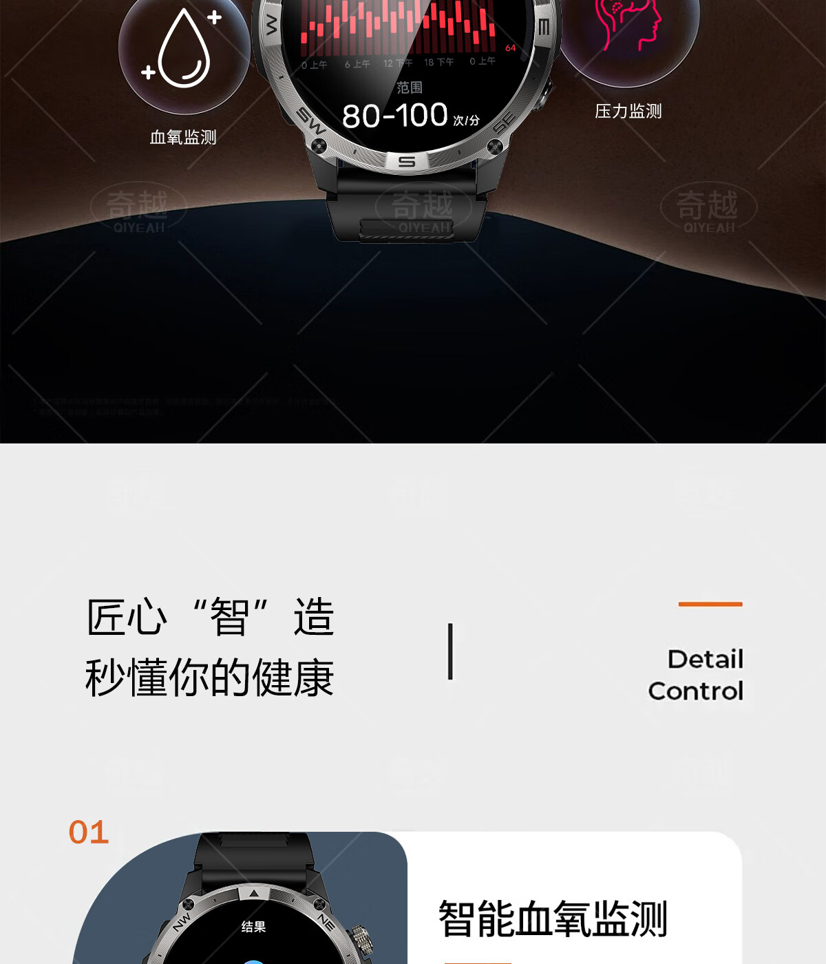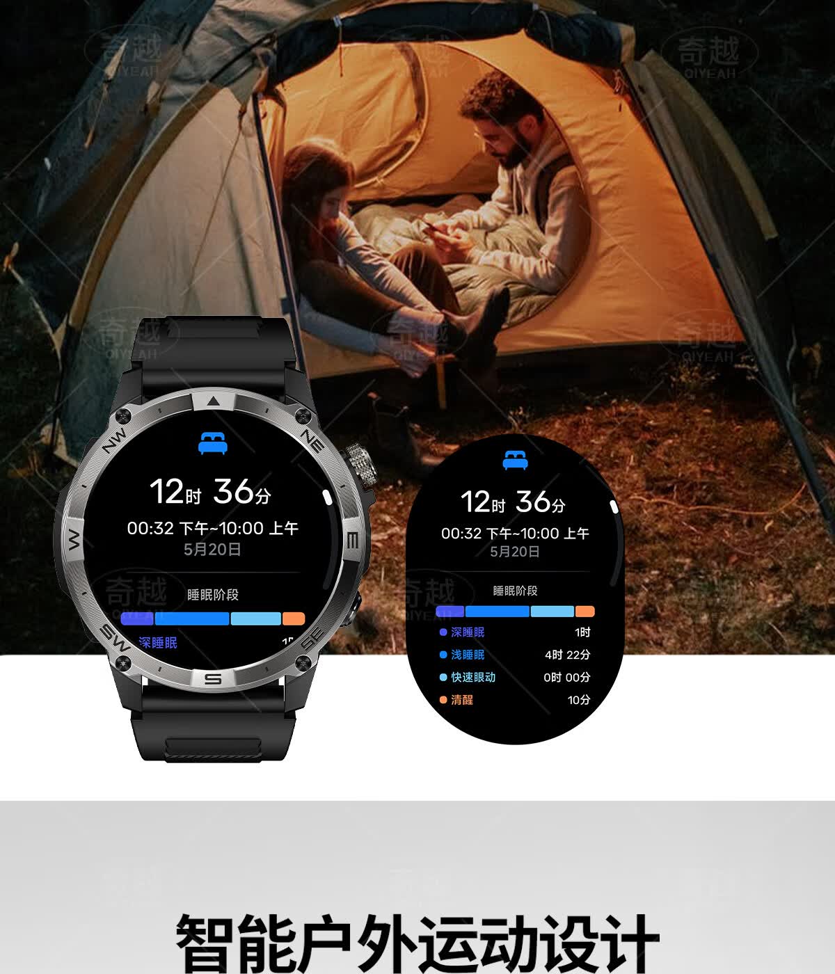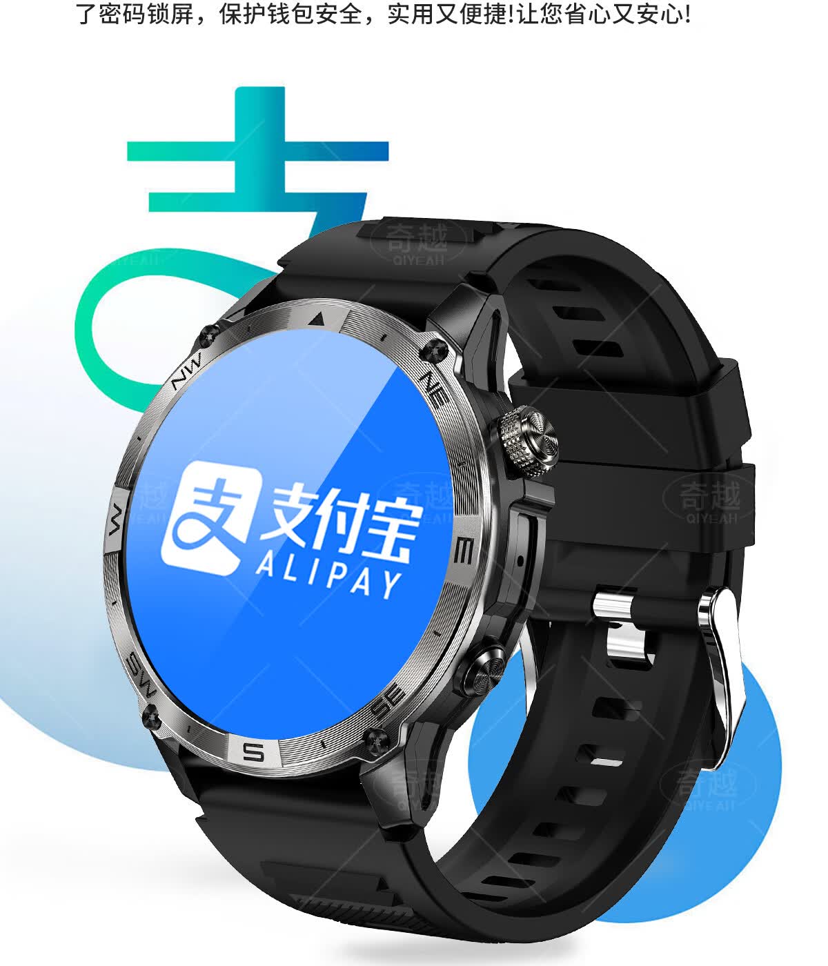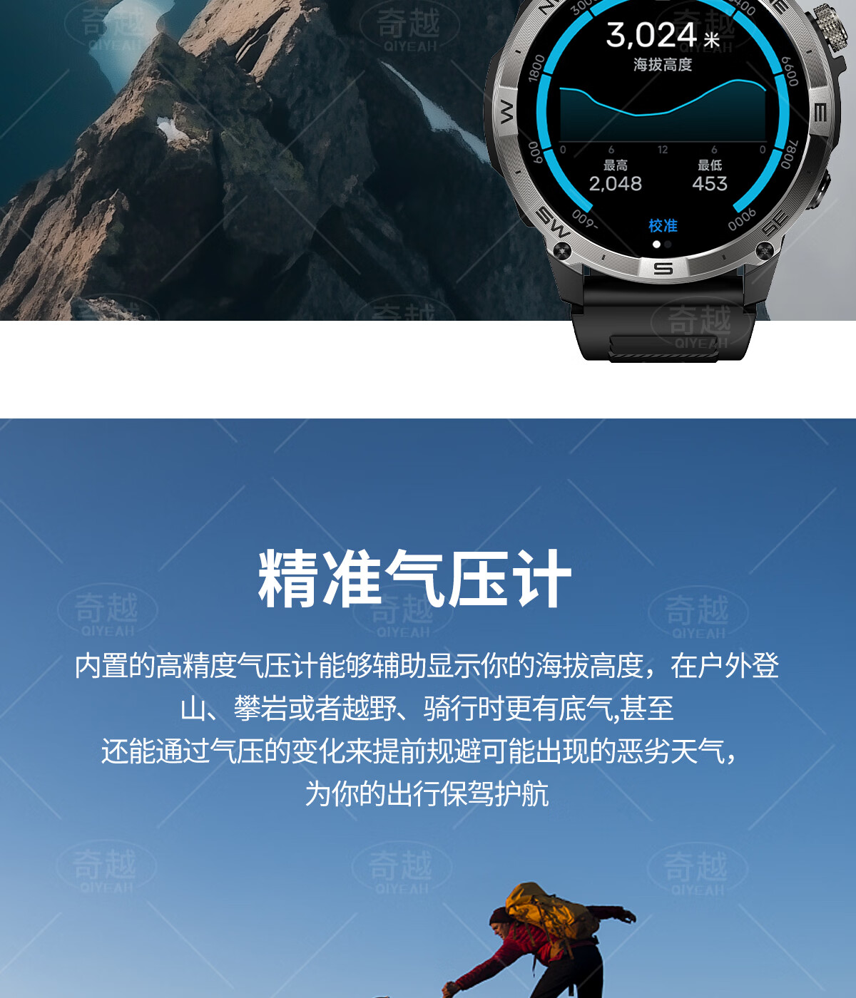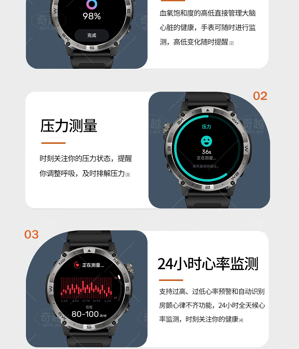 QIYEAH奇越运动手表智能跑步心率监测血氧睡眠GPS定位轨迹蓝牙接打电话离线支付防水消息提醒穿戴手环 运动款 GPS定位运动轨迹