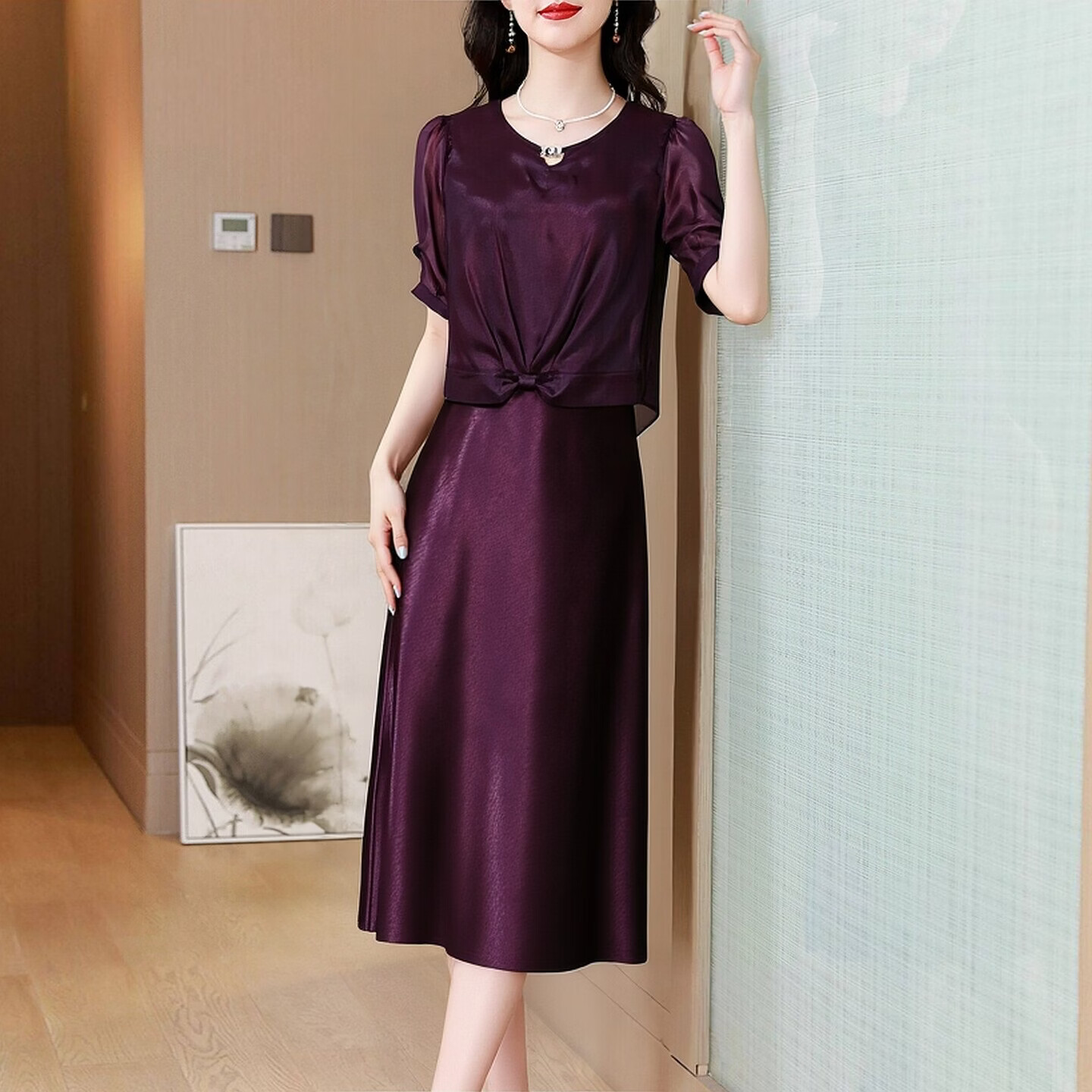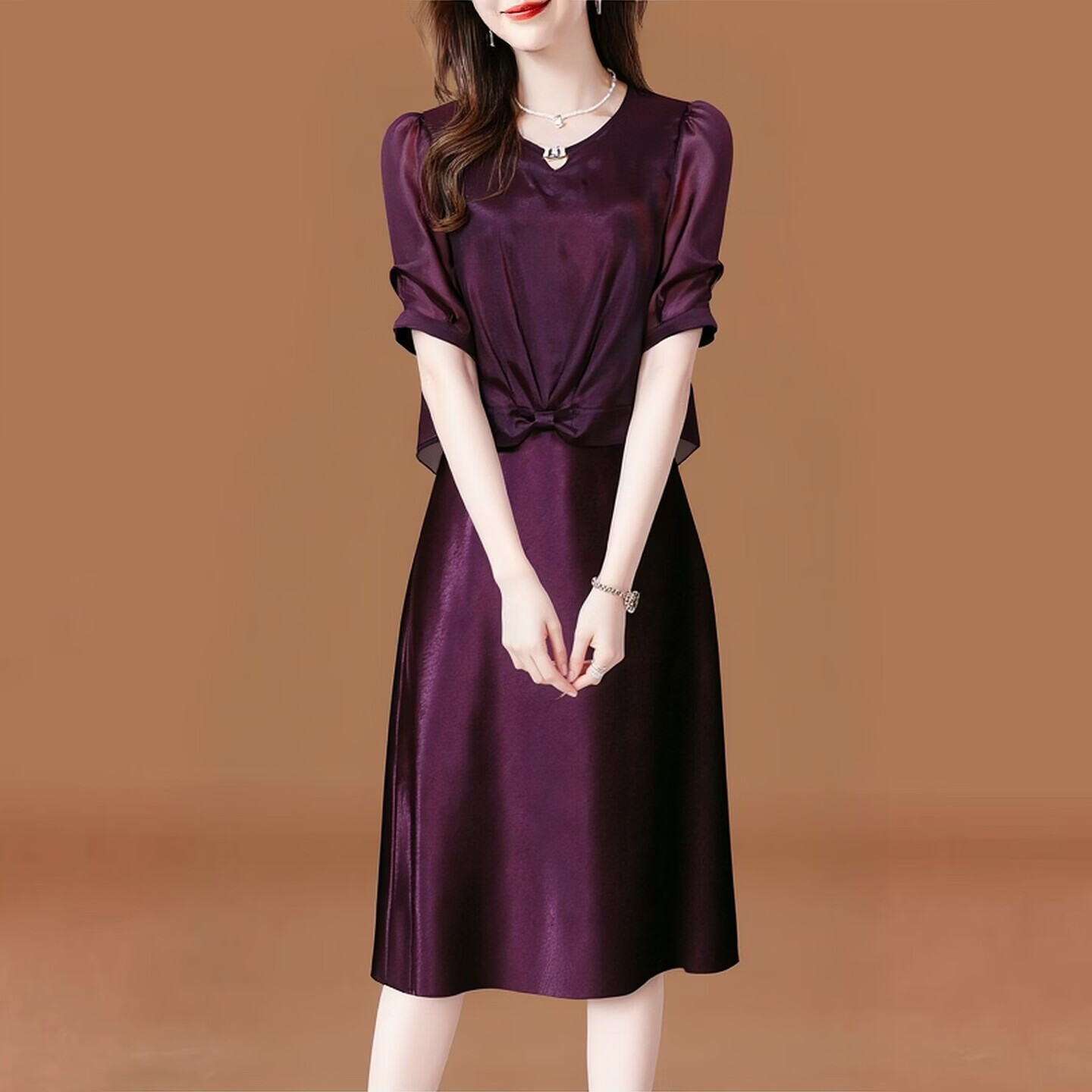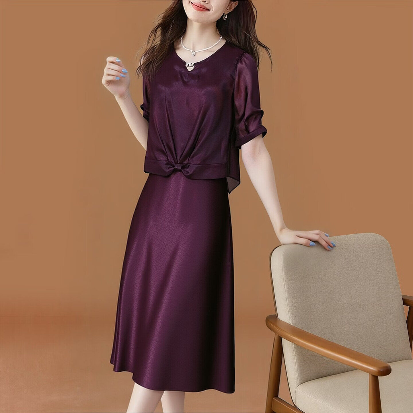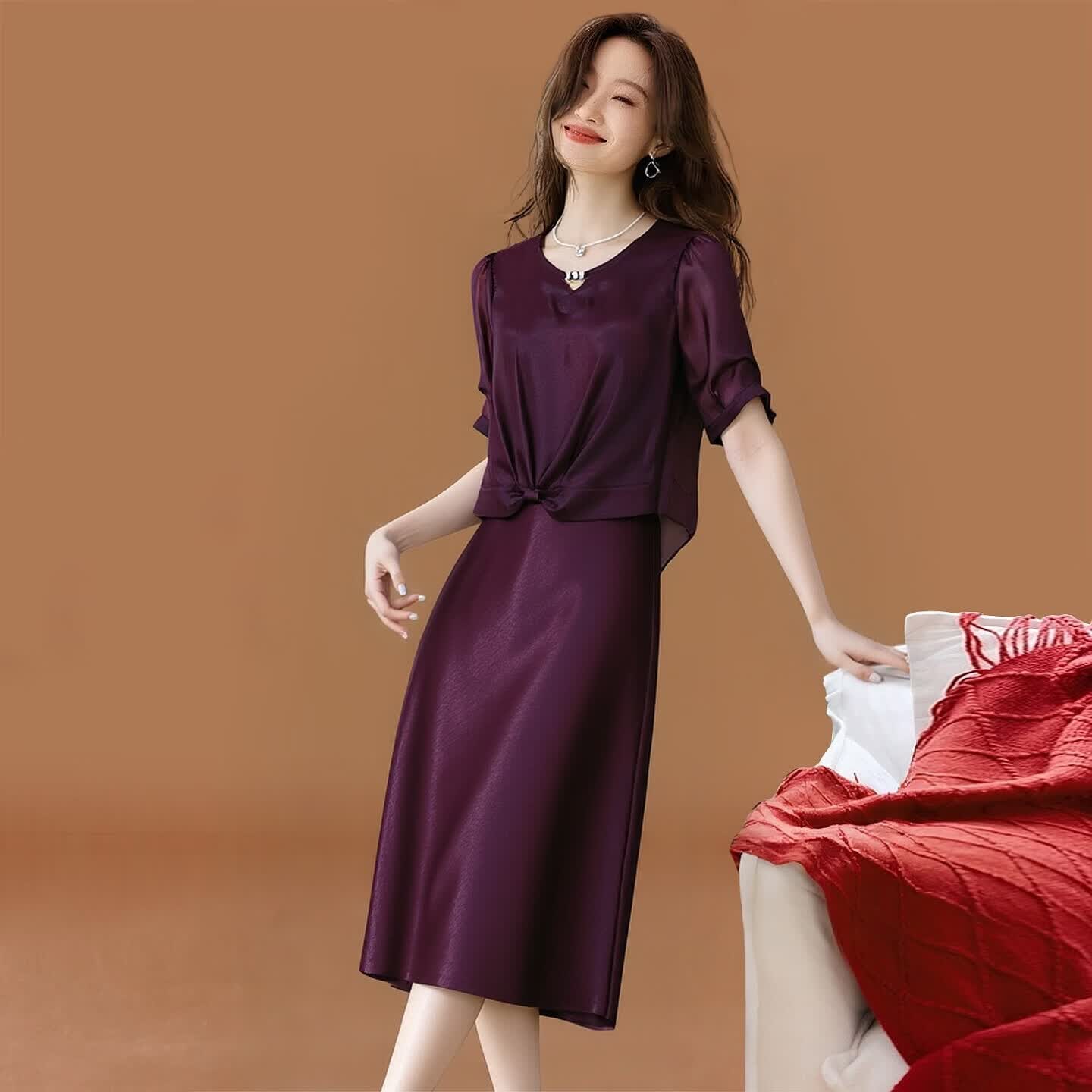 香影纯中式高端时尚轻奢复古纯色套装2026夏季新款修身显瘦连衣裙两件套 图片色 XL 建议105-115斤)