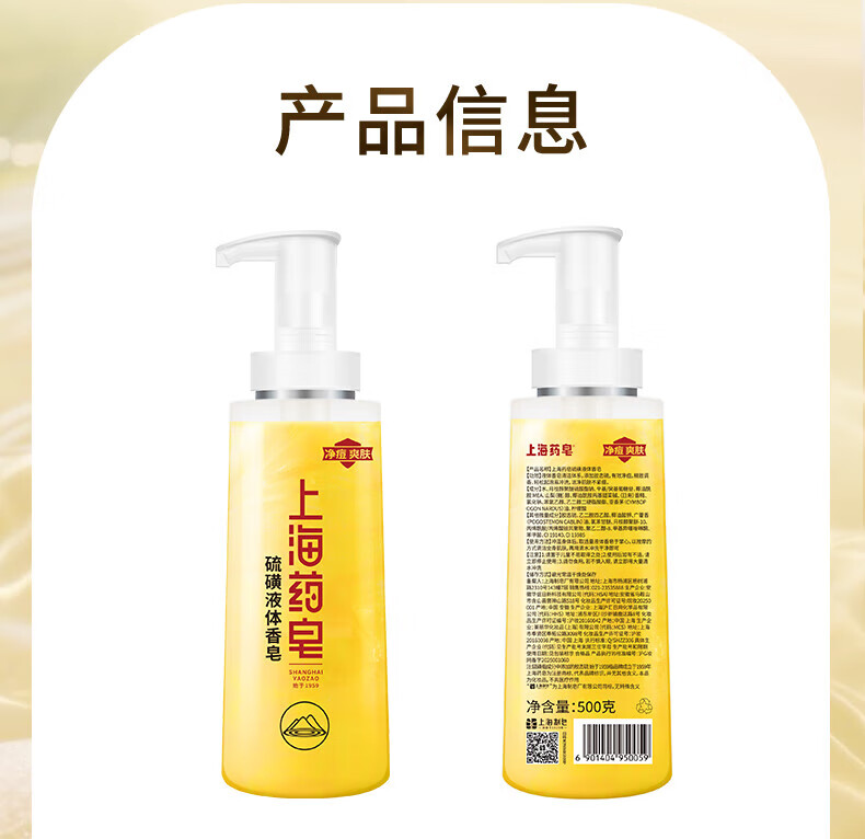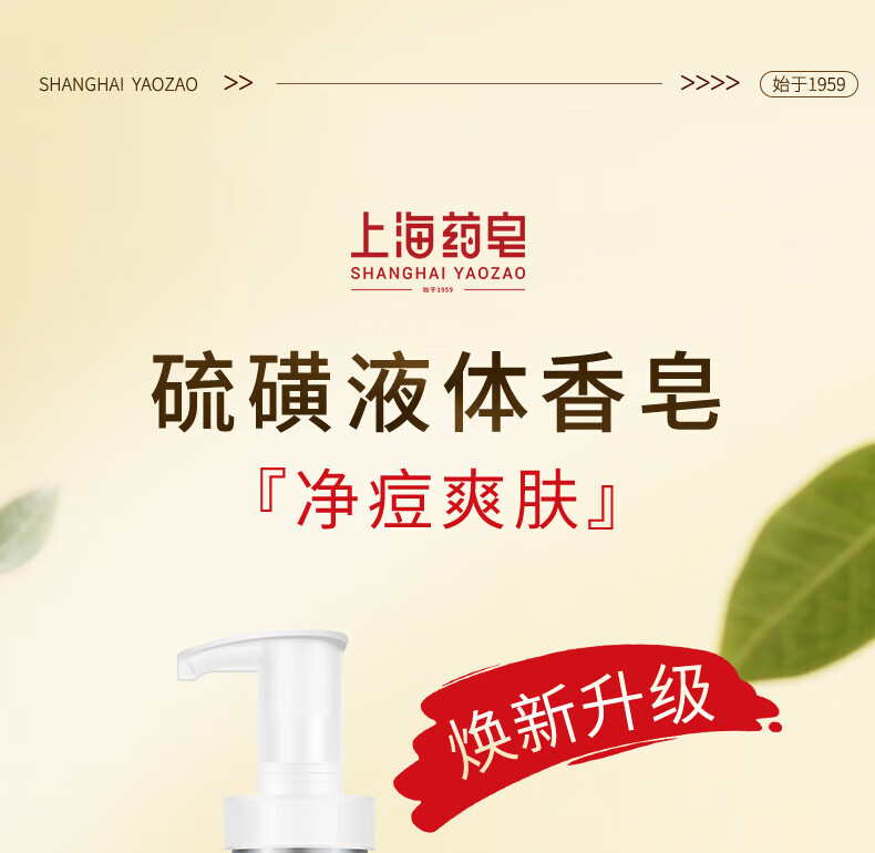 上海药皂硫磺沐浴露硫磺皂洗头洗脸洗澡三合一除螨香皂 【爆品热卖】硫磺除螨液体皂320g