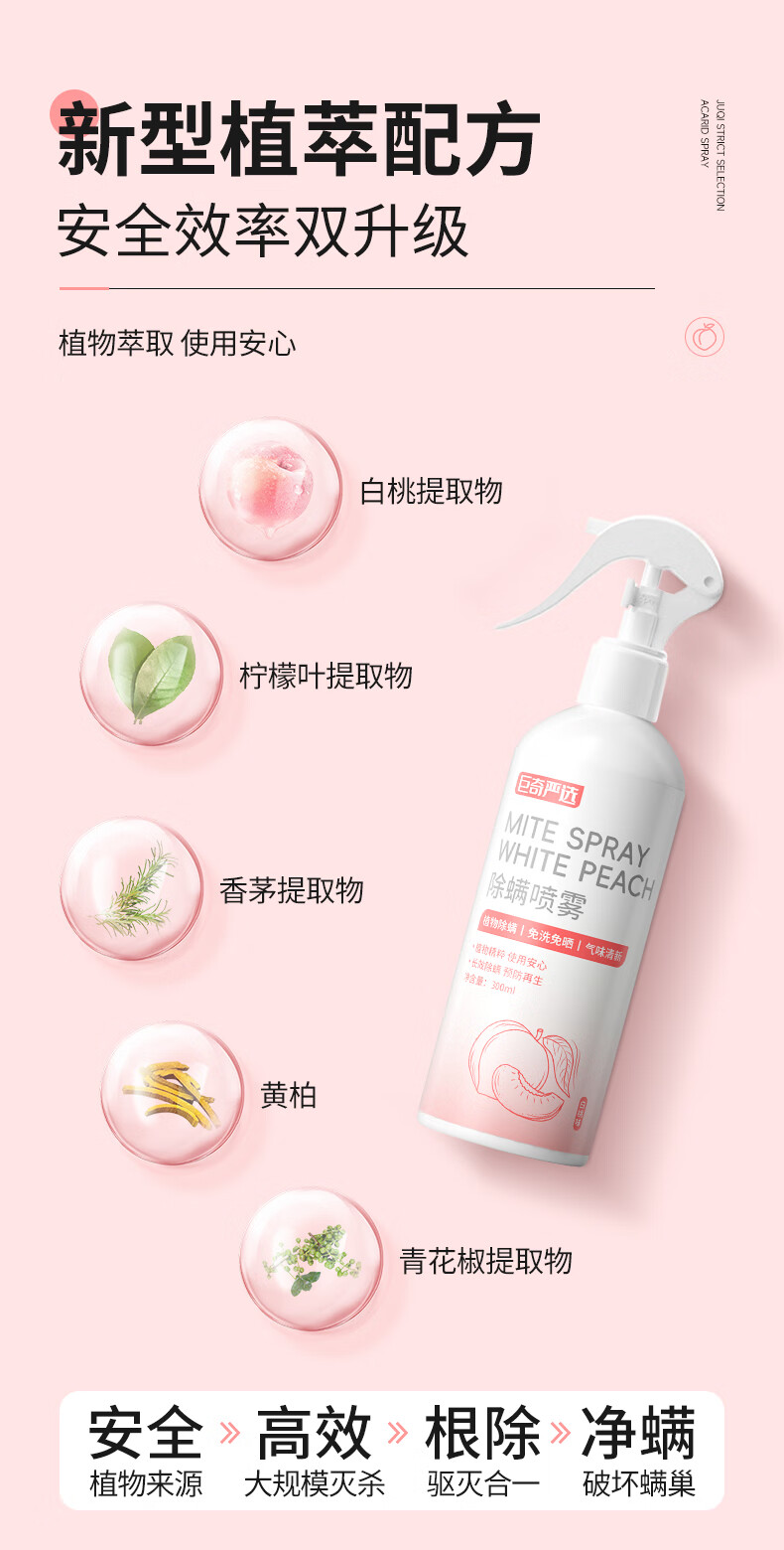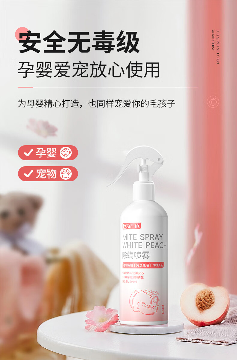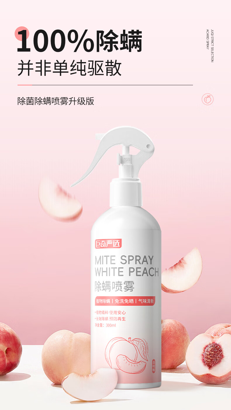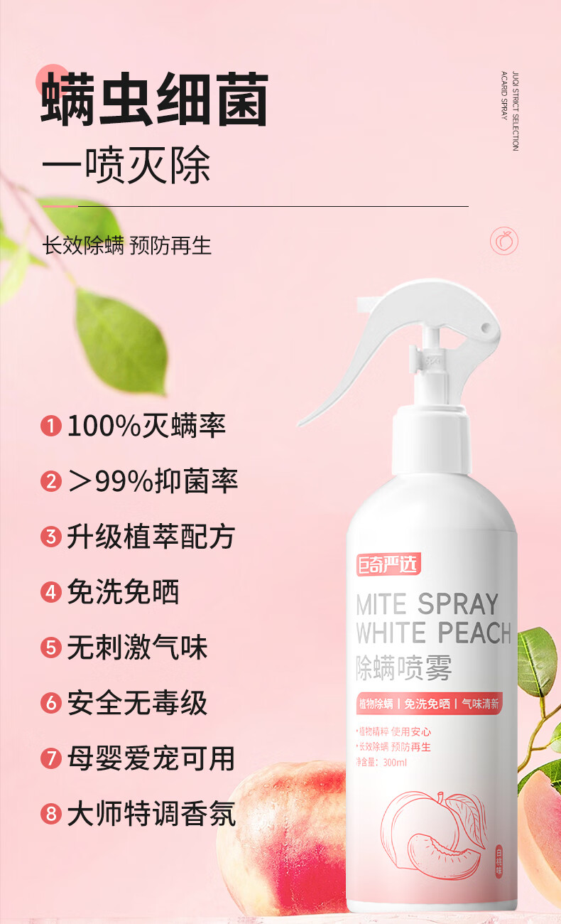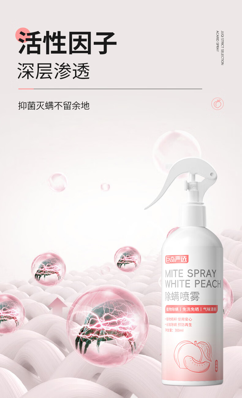 巨奇除螨喷雾床上祛螨虫床垫免洗免晒杀菌抑菌空气清新剂白桃味300ml