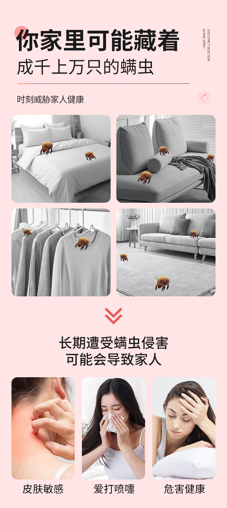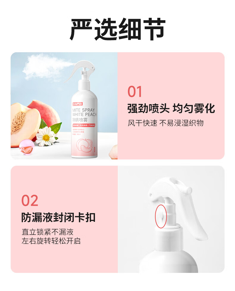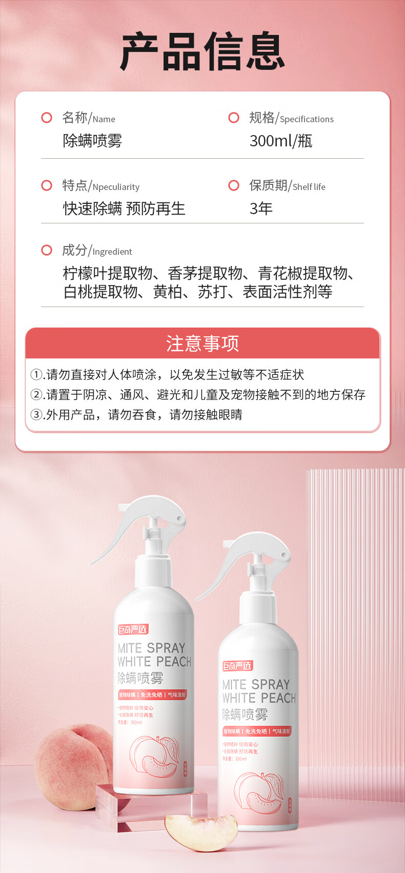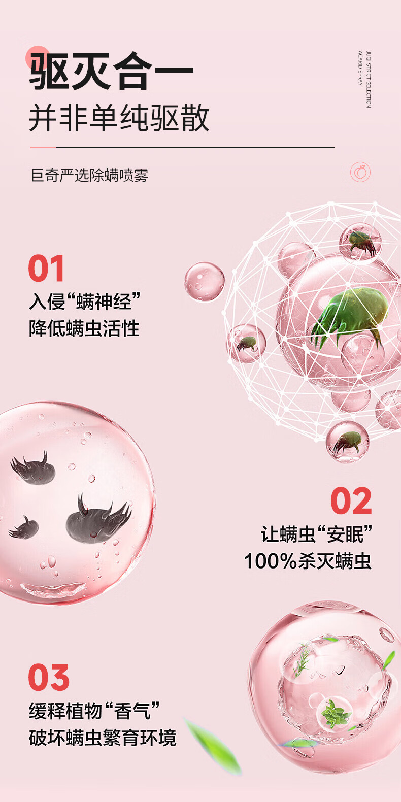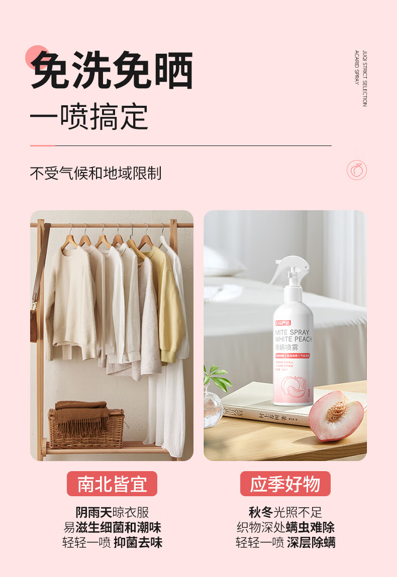 巨奇除螨喷雾床上祛螨虫床垫免洗免晒杀菌抑菌空气清新剂白桃味300ml
