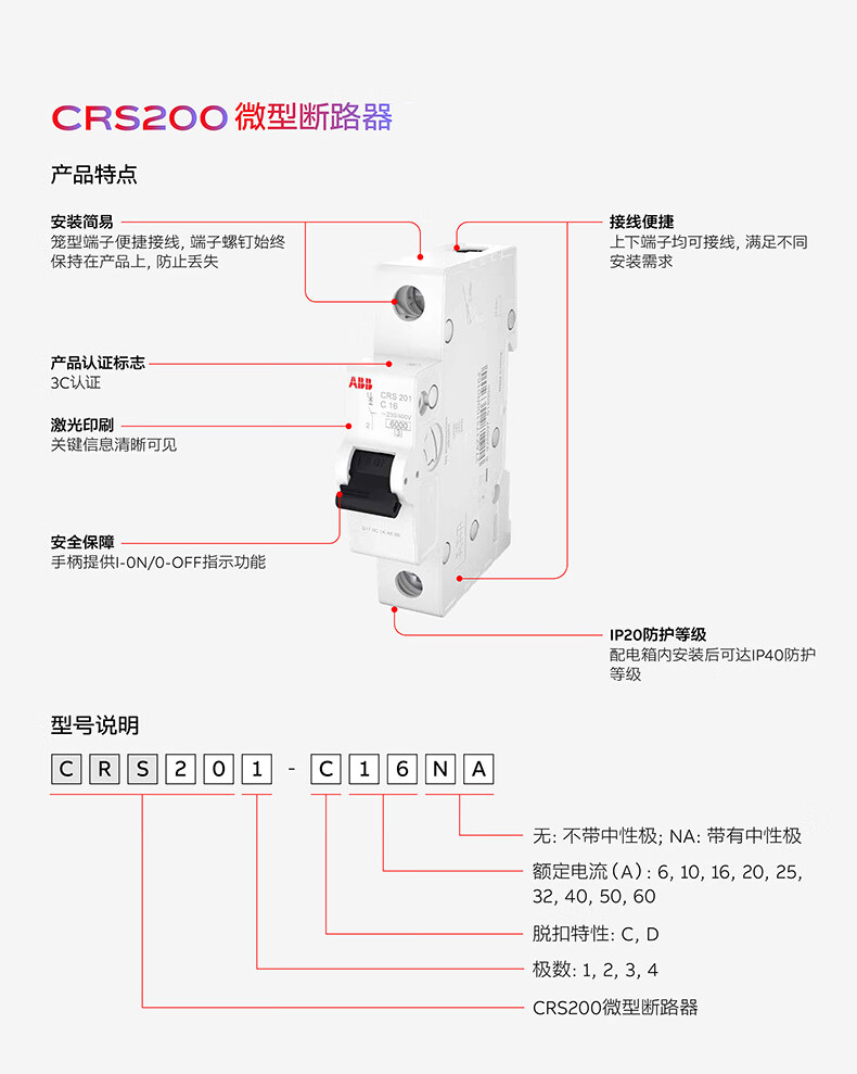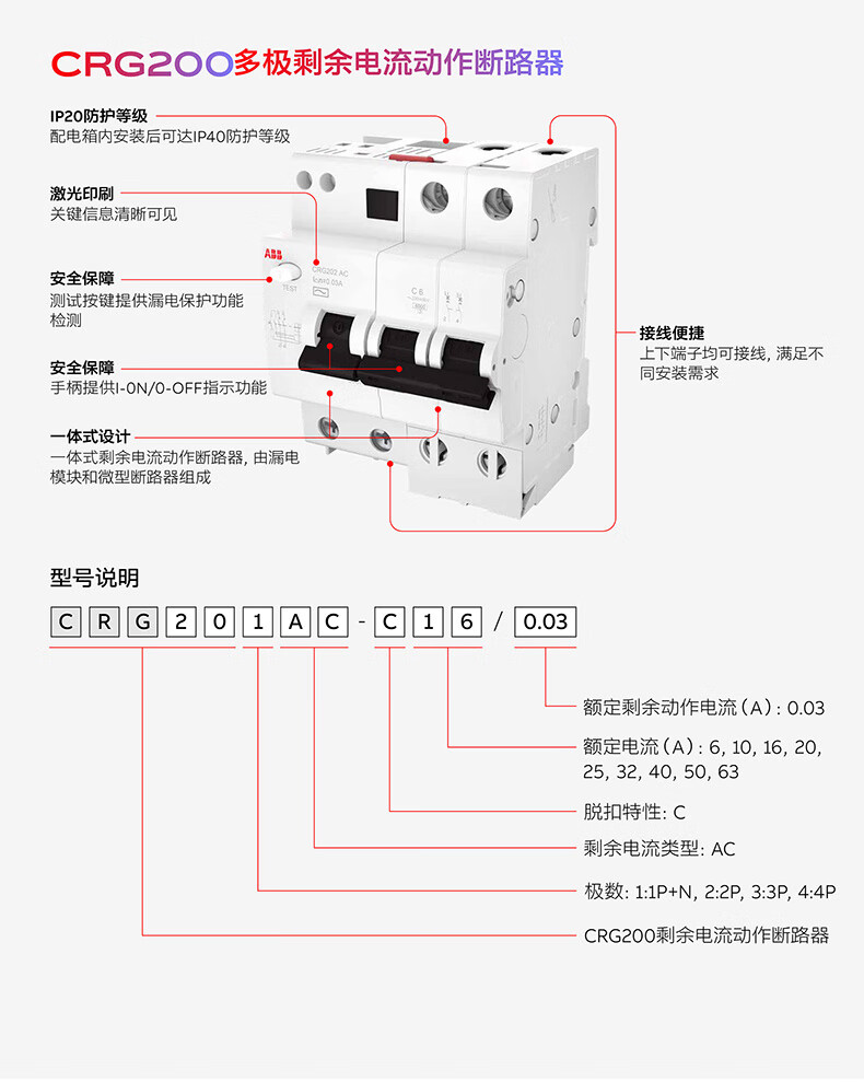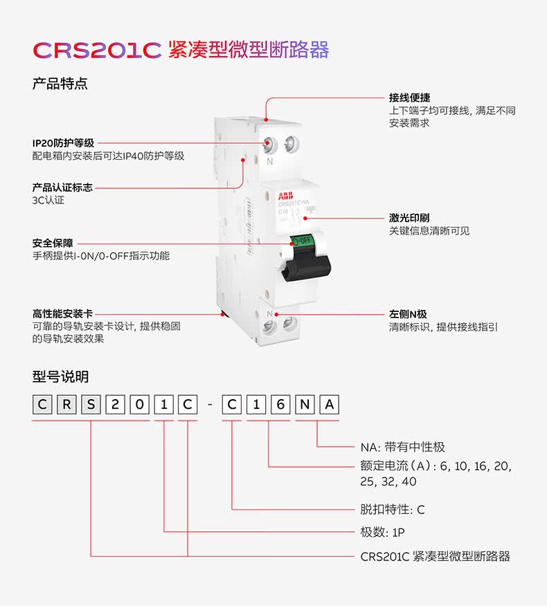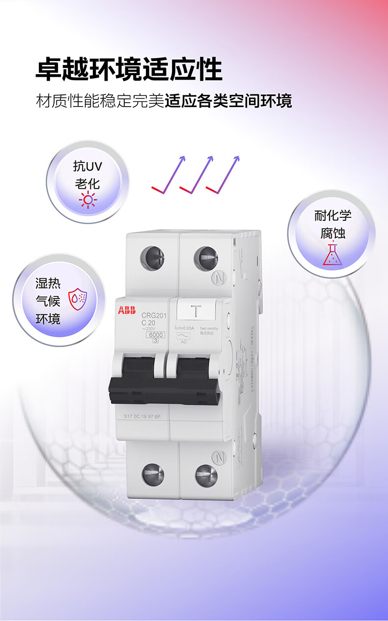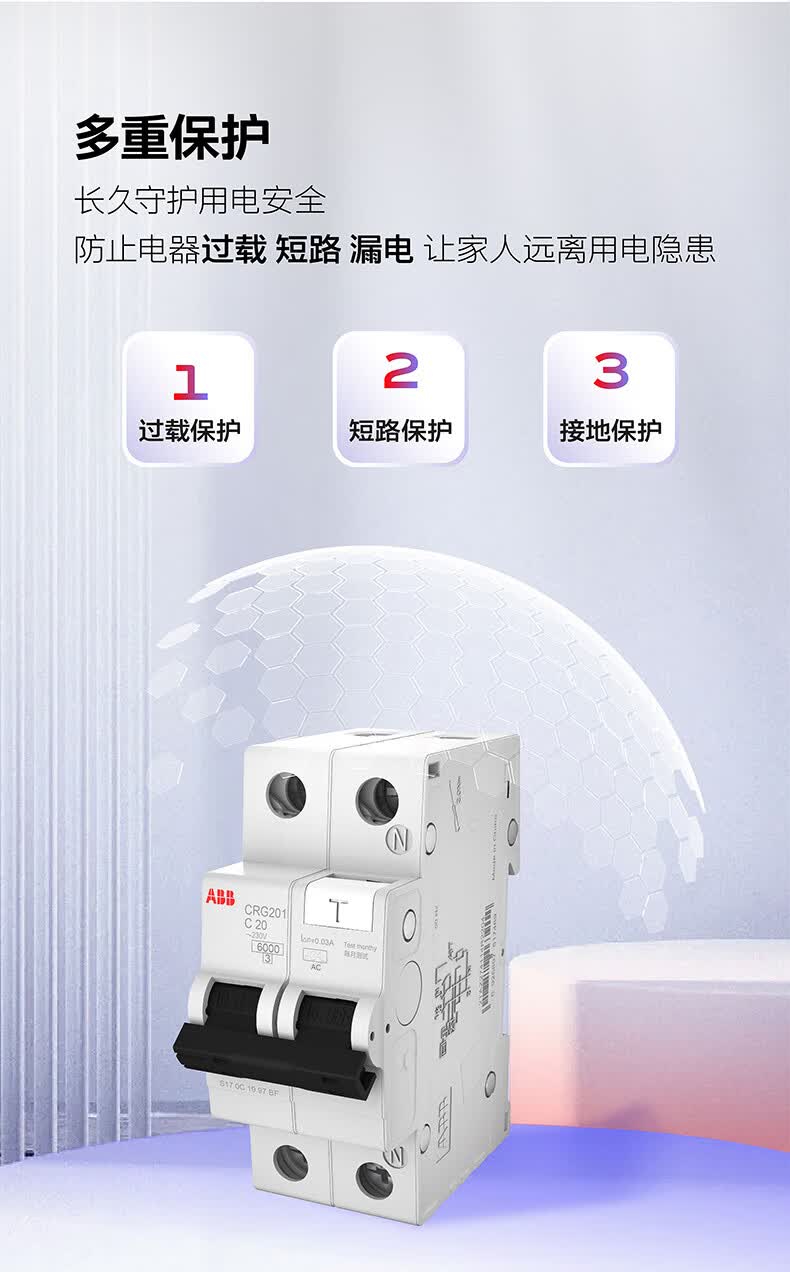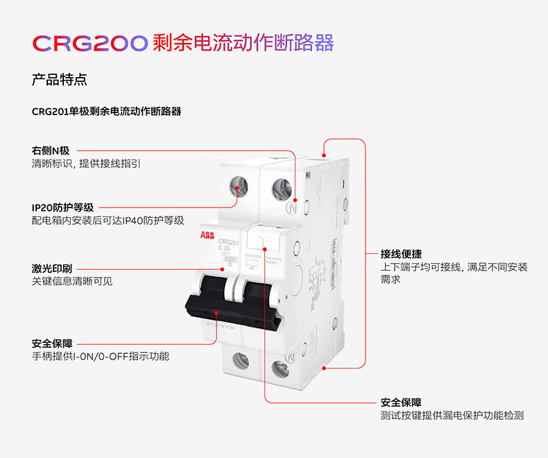 ABB断路器 升级安全款CR 1P+N20A空开带漏电保护器6kA CRG201 AC-C20