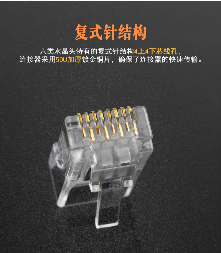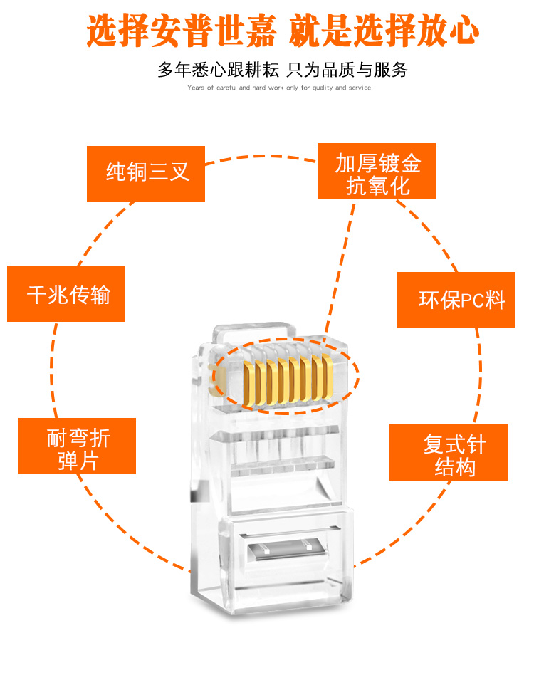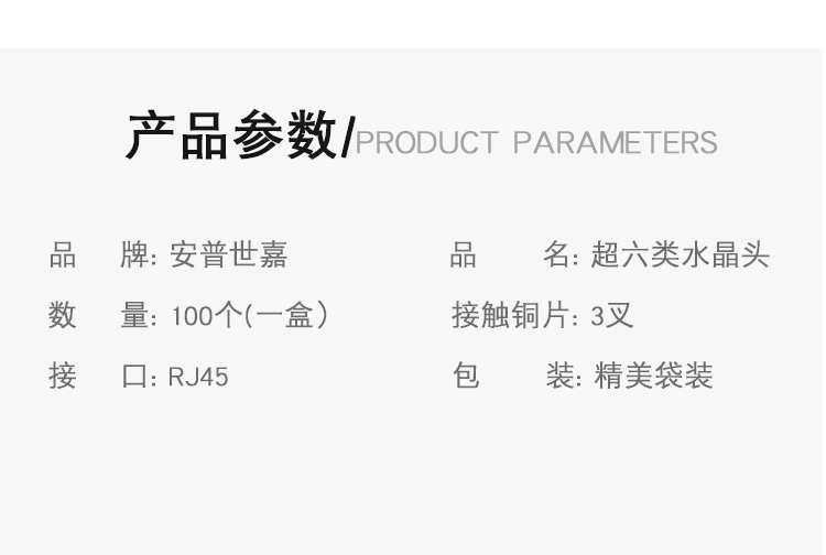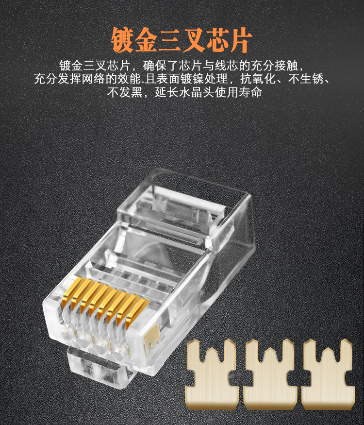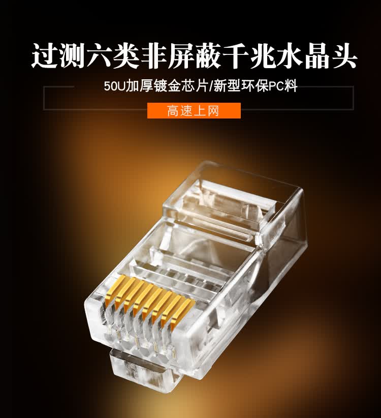 普世嘉(APUSHIJIA) 高性能高镀金超六类水晶头网络千兆6类网线水晶头安普世嘉100个8P8C 100个