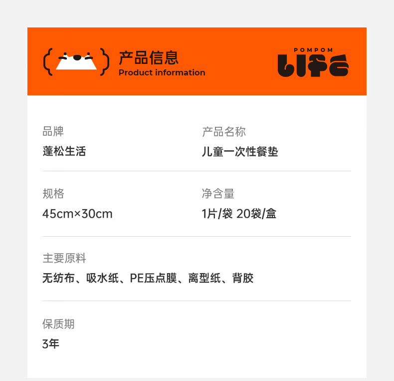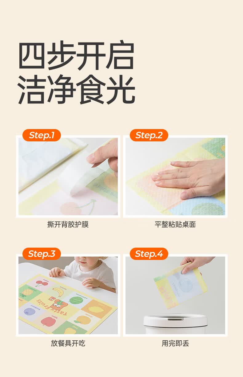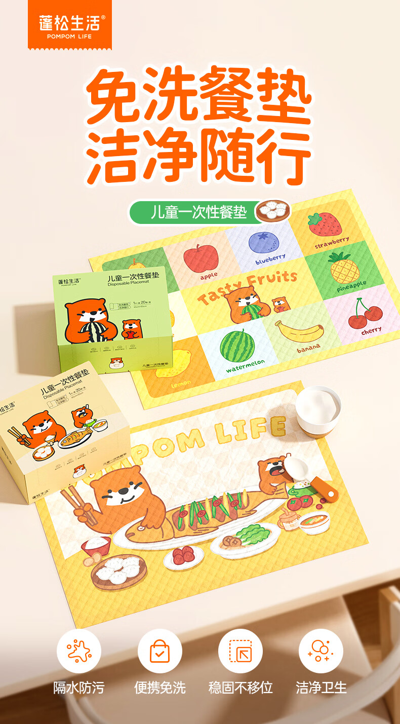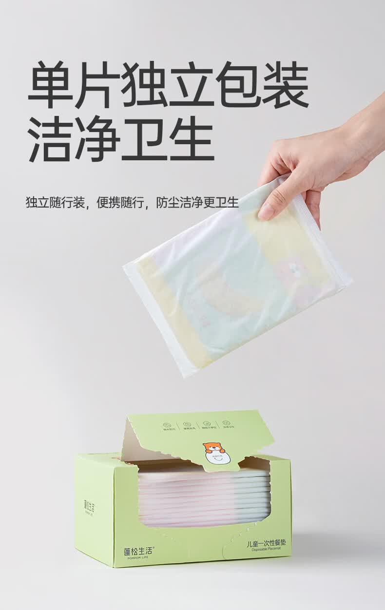 蓬松生活一次性餐垫 食品级餐具 吸油防水儿童外出吃饭野餐 隔污桌布便携 1盒(共20片)【独立包装】