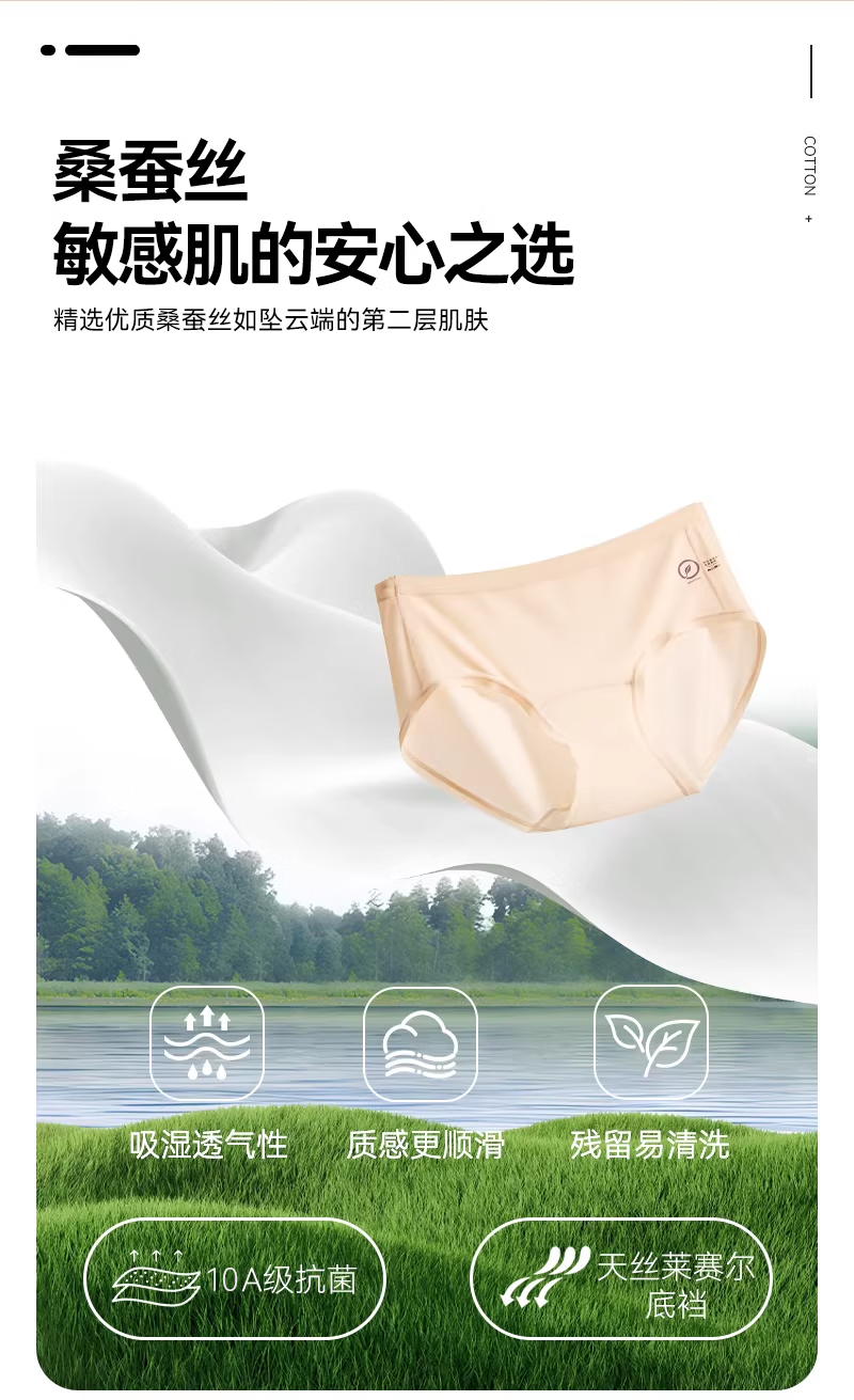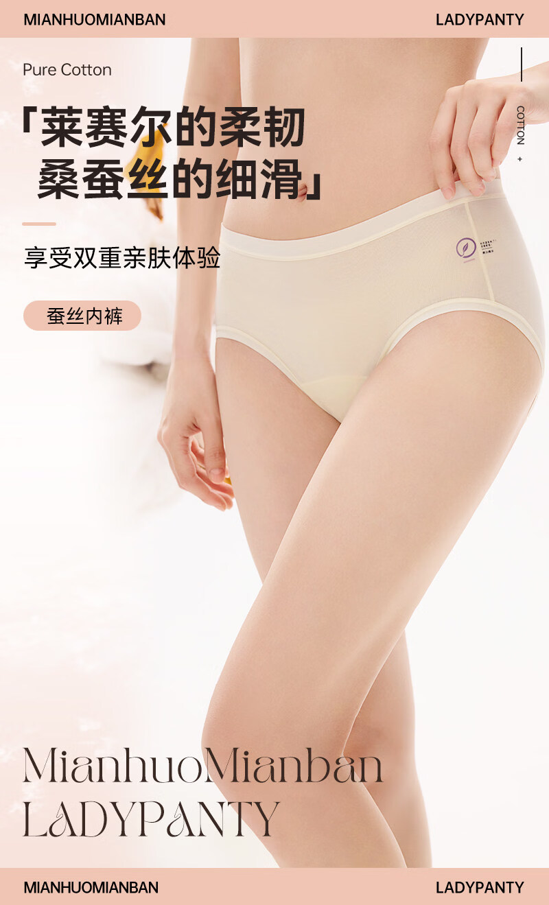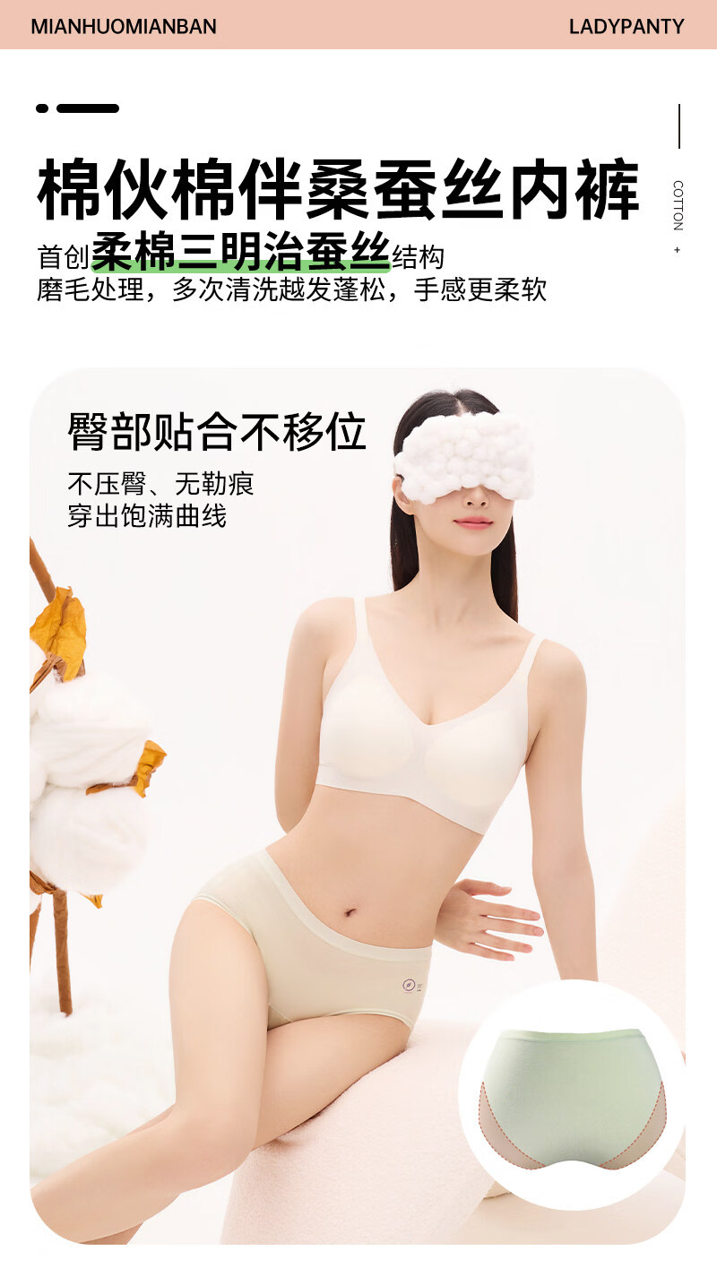 棉伙棉伴母亲节礼物 莱赛尔桑蚕丝10A抗菌内裤女士三角裤收腹内裤纯棉底裆 【3条装】紫色+绿色+蓝色 L