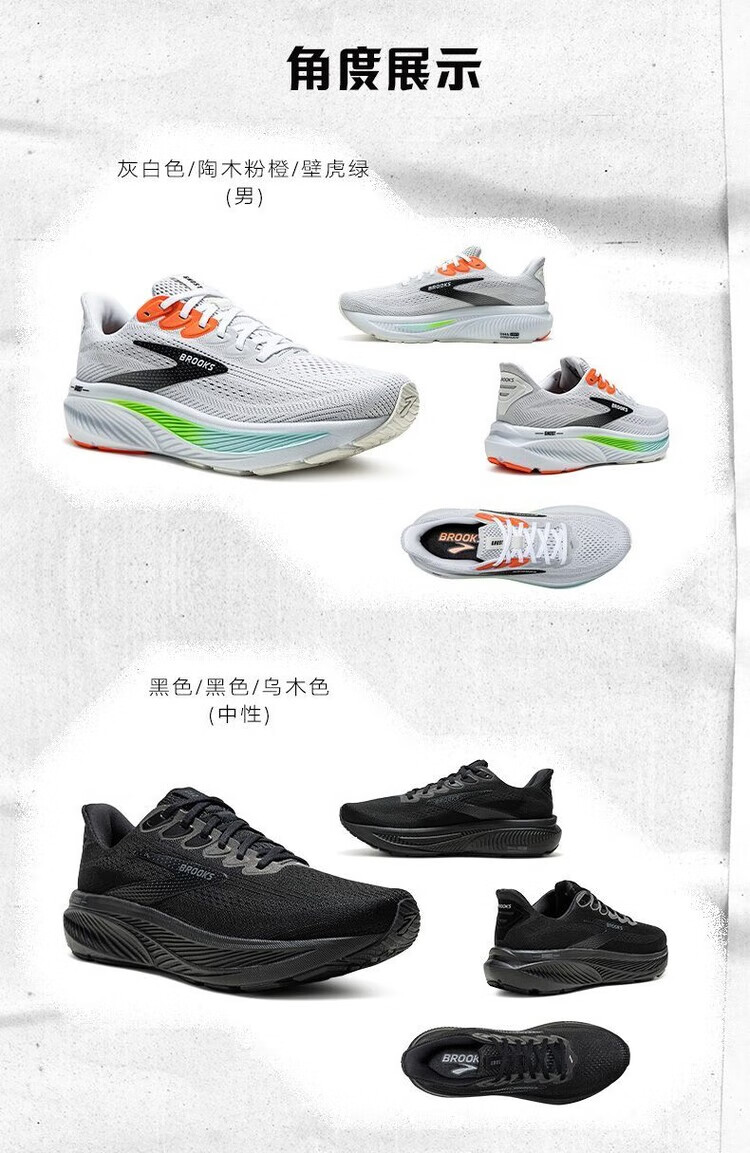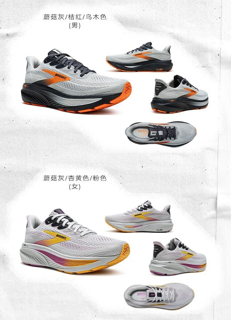 布鲁克斯Ghost 17缓震运动跑步鞋幽灵男女新款夏季透气跑鞋 蘑菇灰桔红乌木色 45
