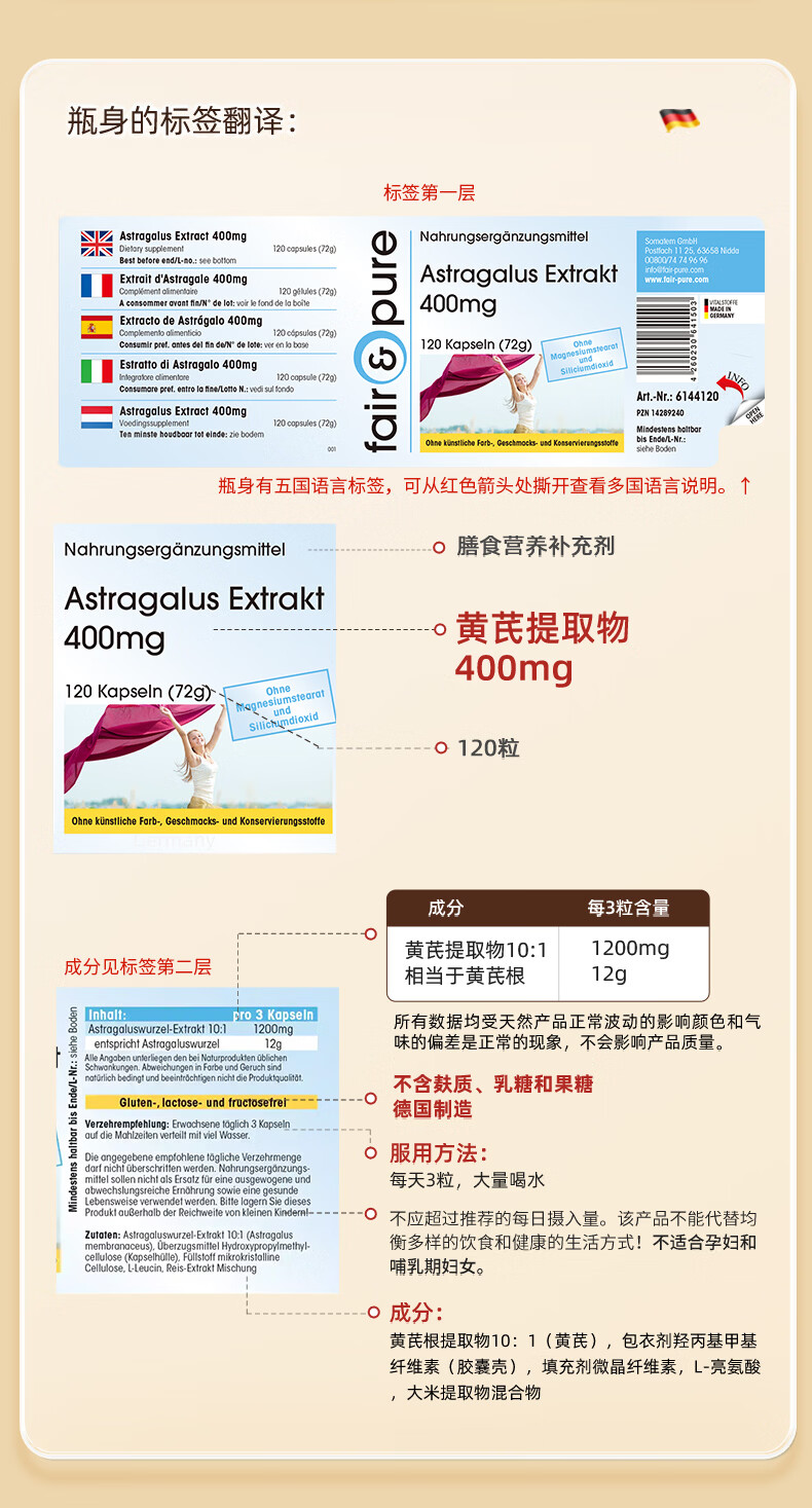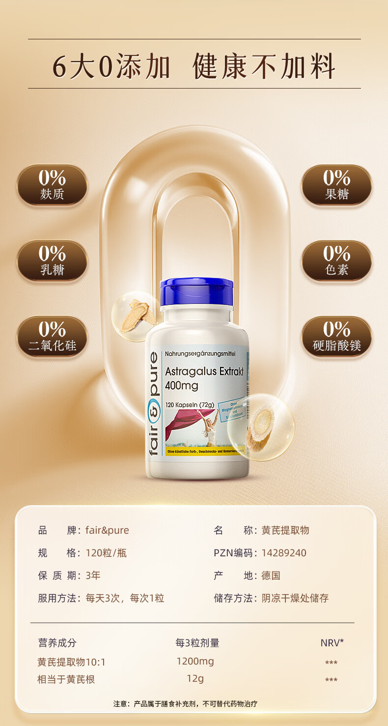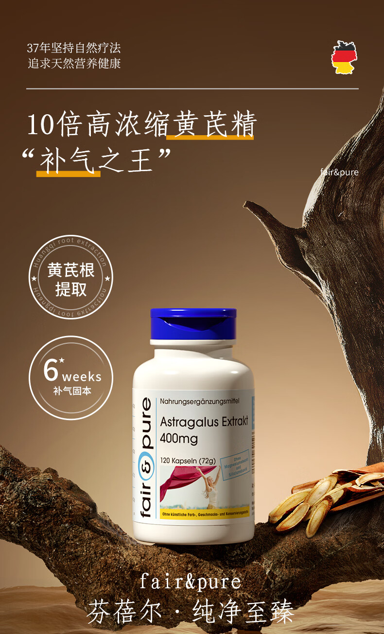 fair&pure芬蓓尔黄芪浓缩精华提取物辅助补气血女补气养血手脚冰凉四肢乏力 浓缩黄芪 120粒*1瓶 【补气血调体虚】