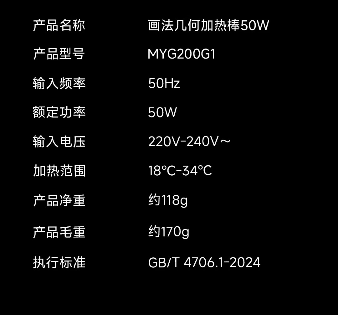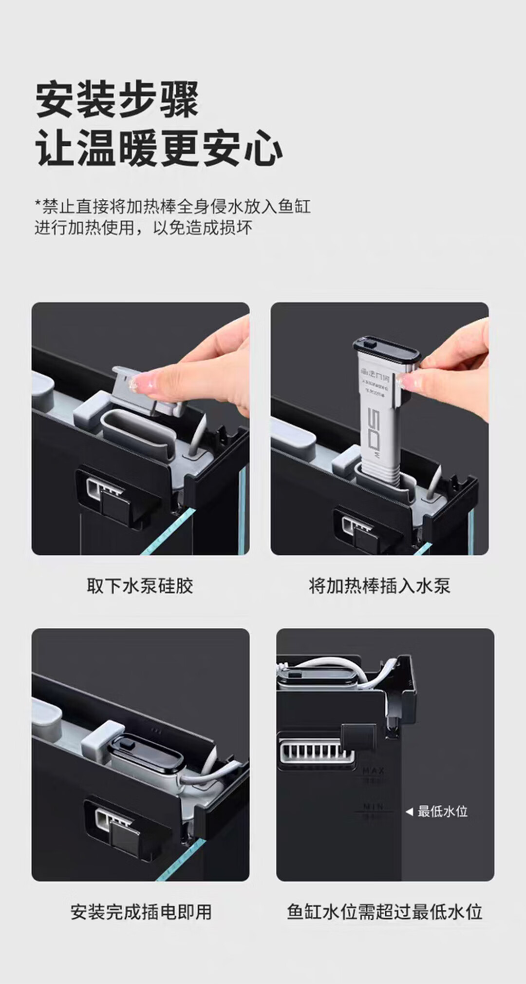 画法几何适用小鱼米缸二代加热棒智能鱼缸加热棒小型自动恒温鱼缸加温棒 【顺丰速运】内置款加热棒-50W可调温