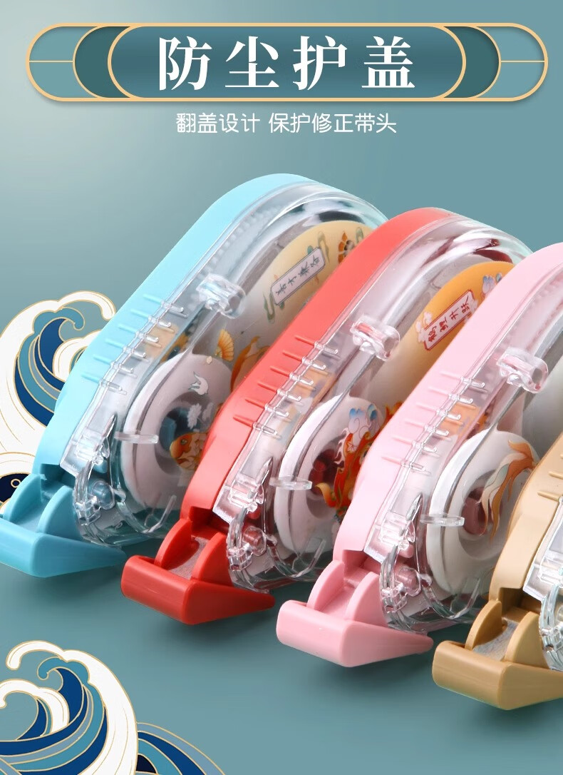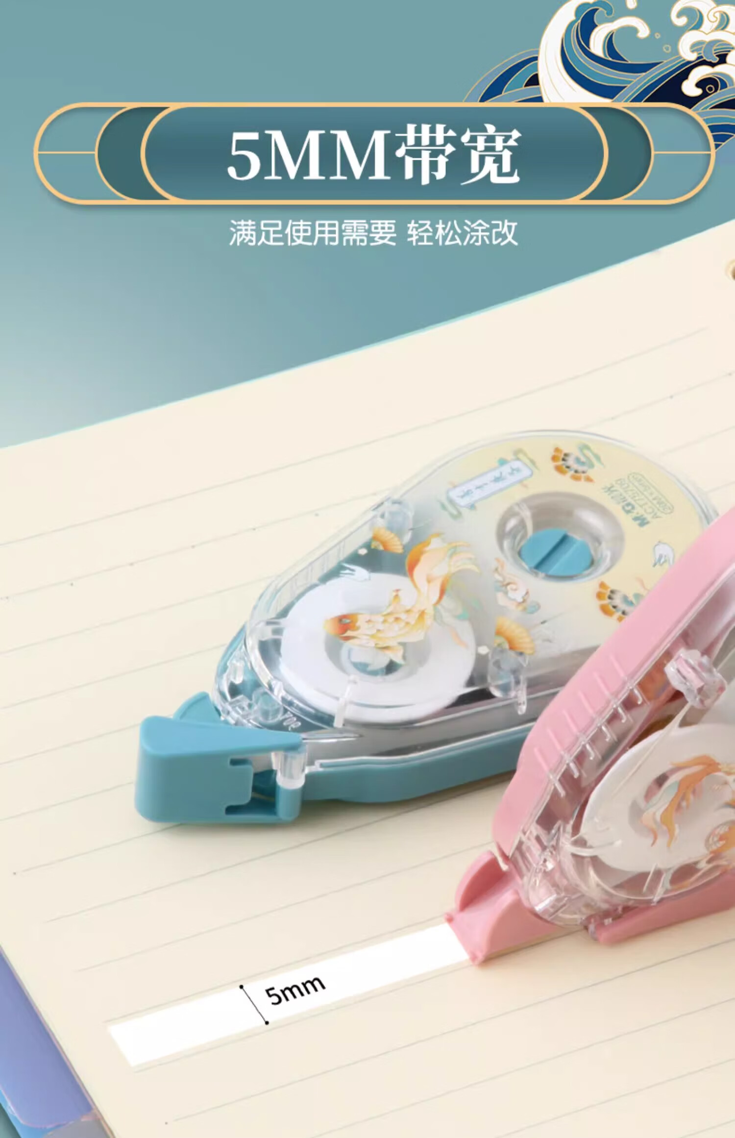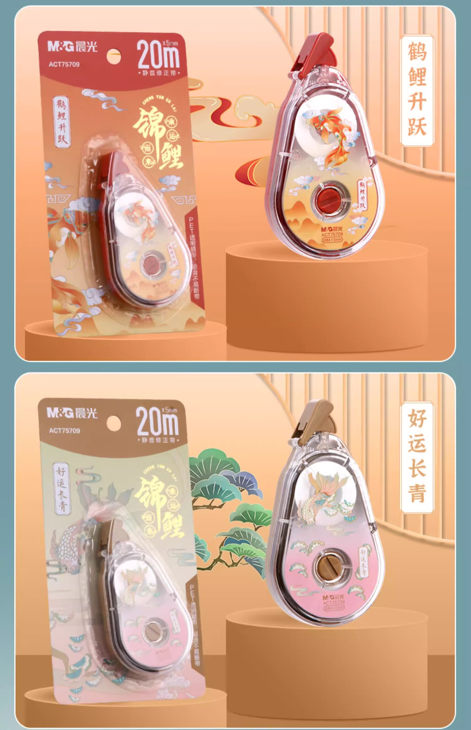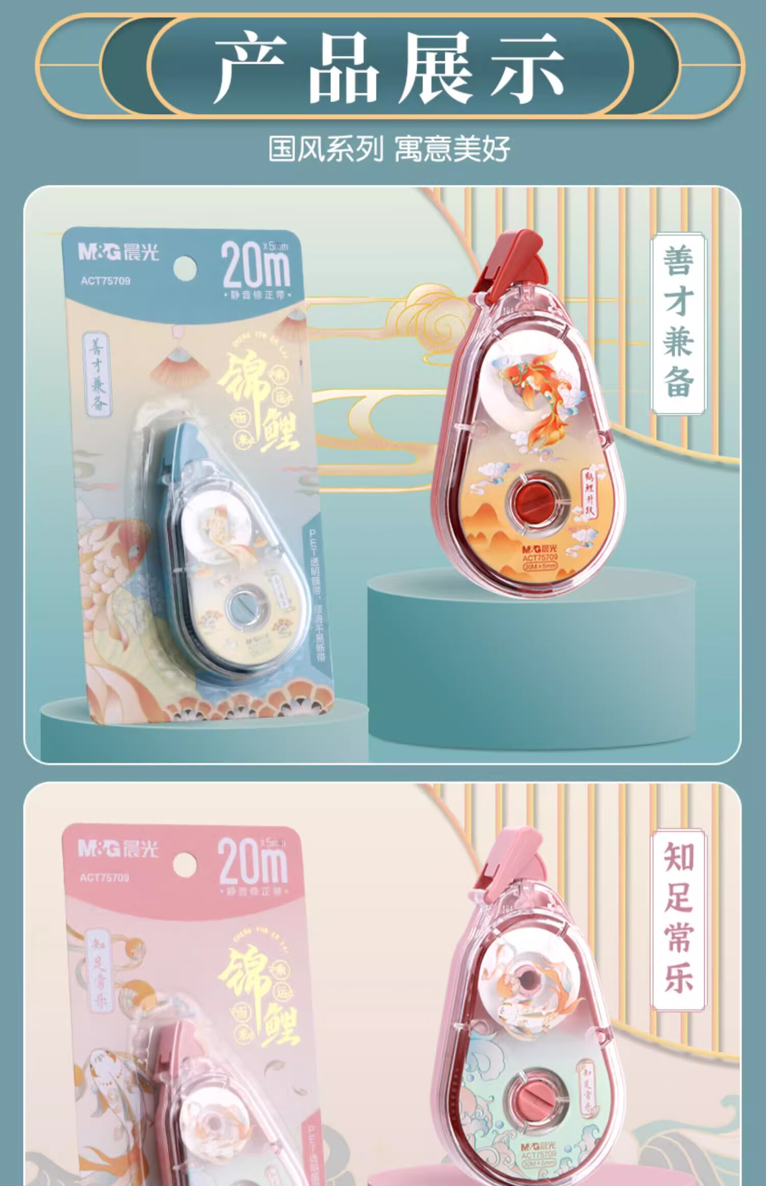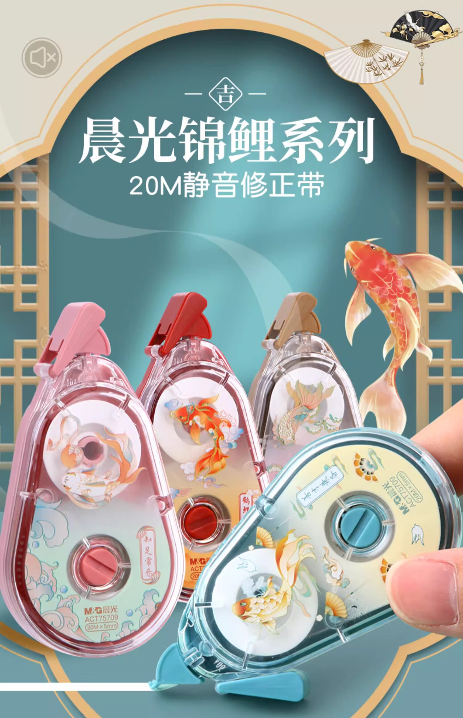 晨光(M&G)锦鲤乘运而来修正带大容量静音实惠装小学生多功能涂改带初中生用改正带顺滑ins可爱少女 【彩色*静音款150m】5个装