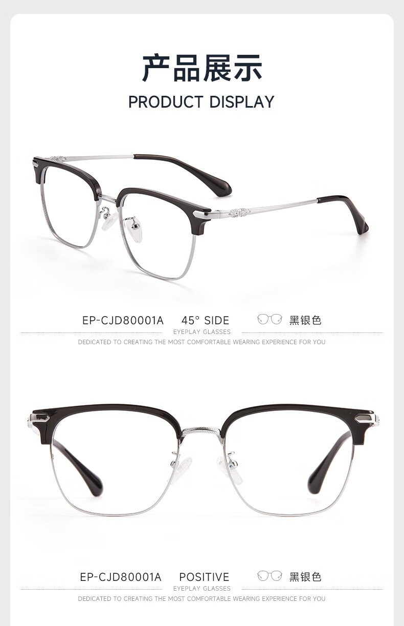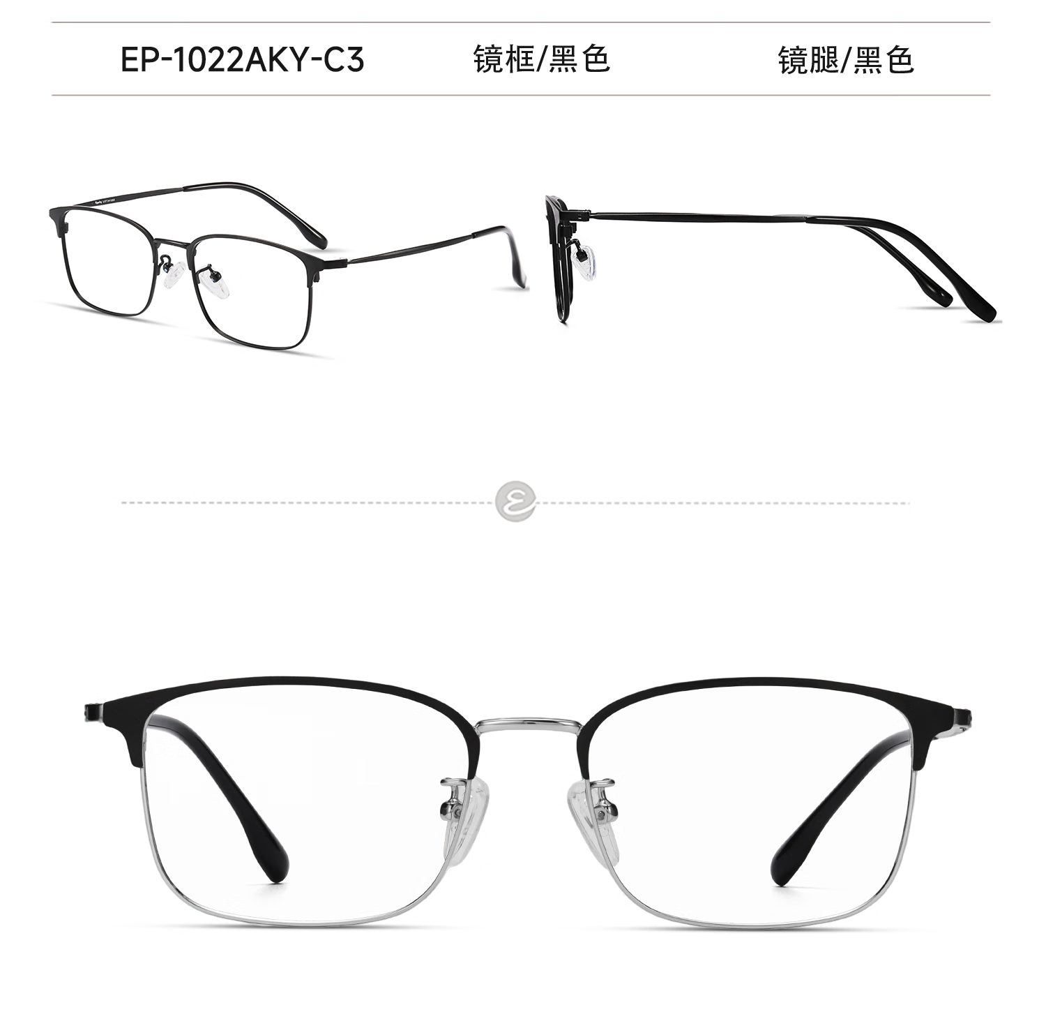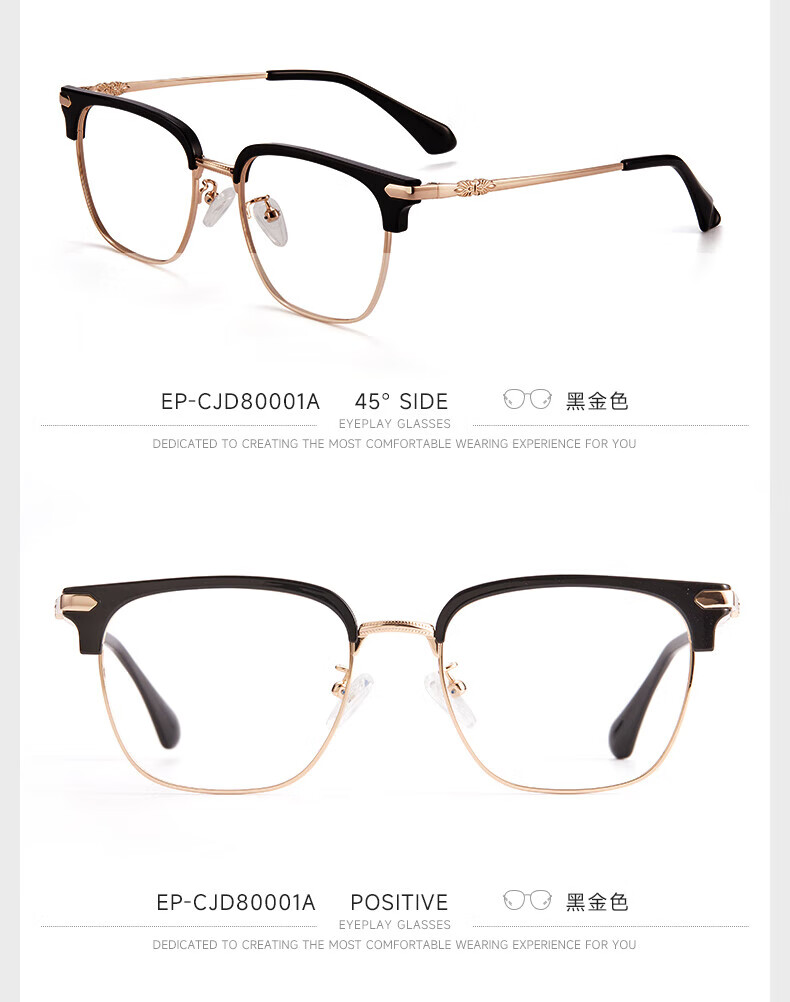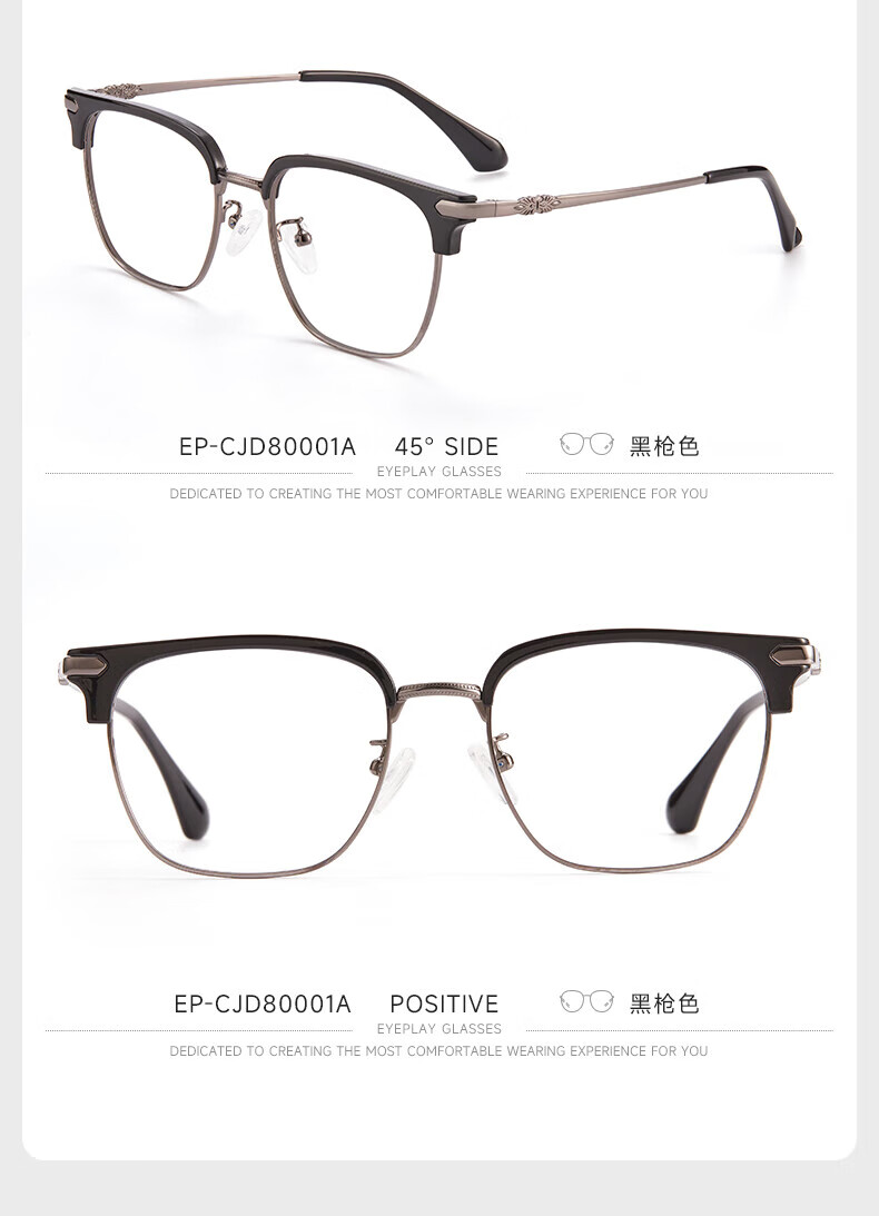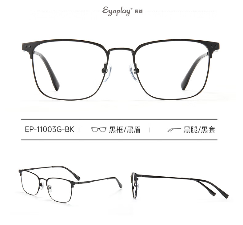 目戲(EYEPLAY)近视眼镜架可配凯米镜片蔡司钻立方防蓝光片眼镜男轻盈眼镜 1022BKY-C3黑色 【仅镜框-宝岛精选/品质保障】