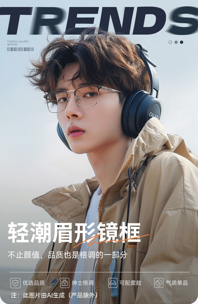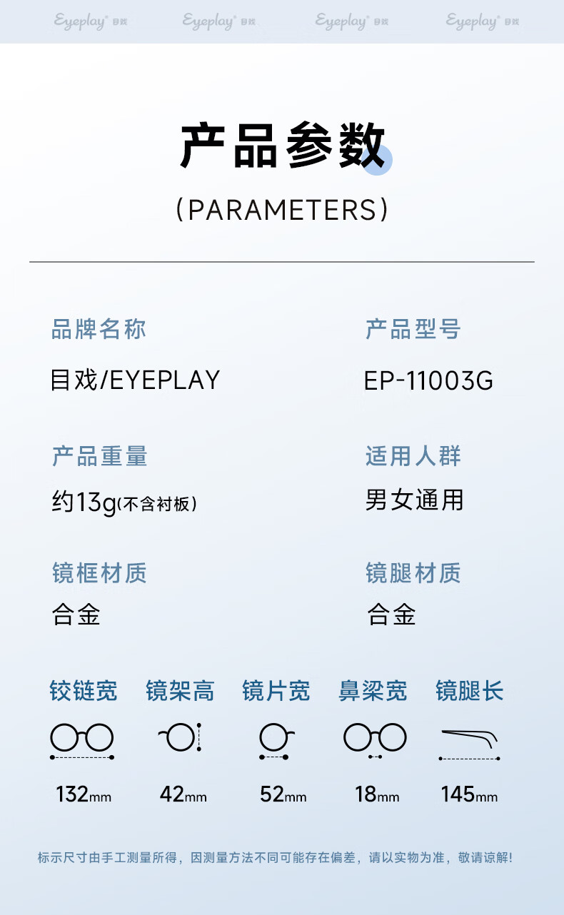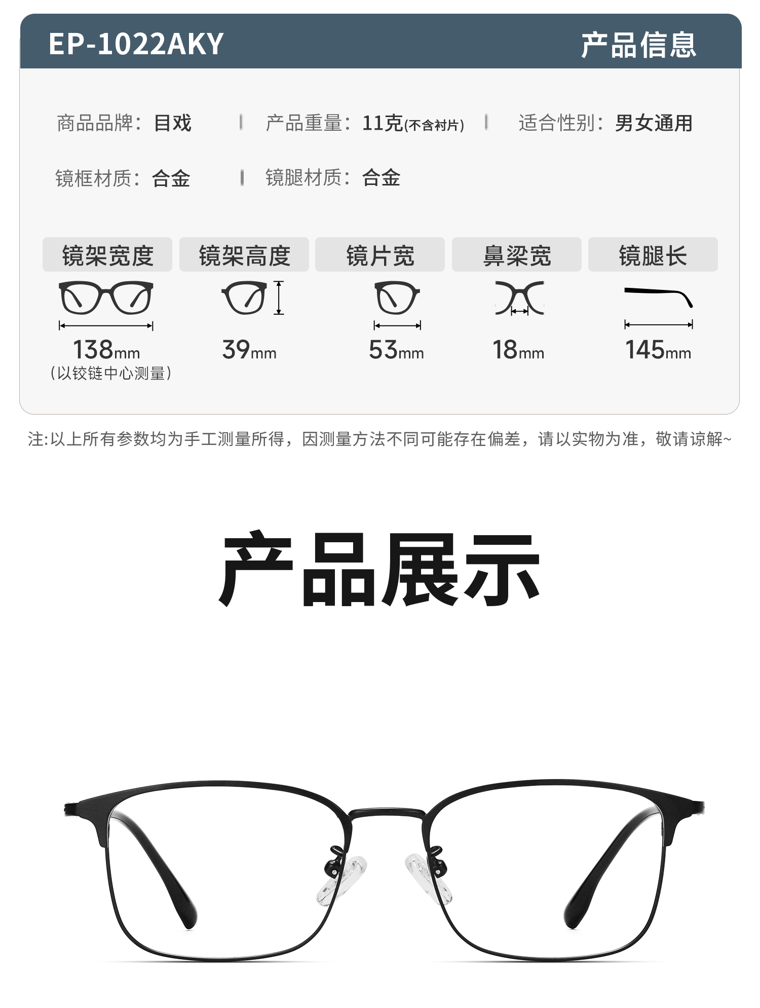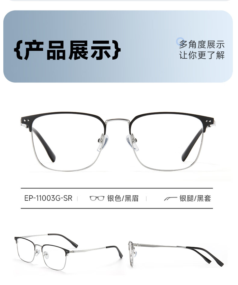 目戲(EYEPLAY)近视眼镜架可配凯米镜片蔡司钻立方防蓝光片眼镜男轻盈眼镜 1022BKY-C3黑色 【仅镜框-宝岛精选/品质保障】