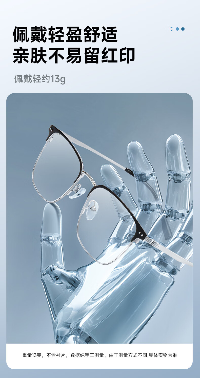 普莱斯(pulais)近视眼镜框可配度数纯钛金属高端商务半框超轻8g男士眼镜架19897A